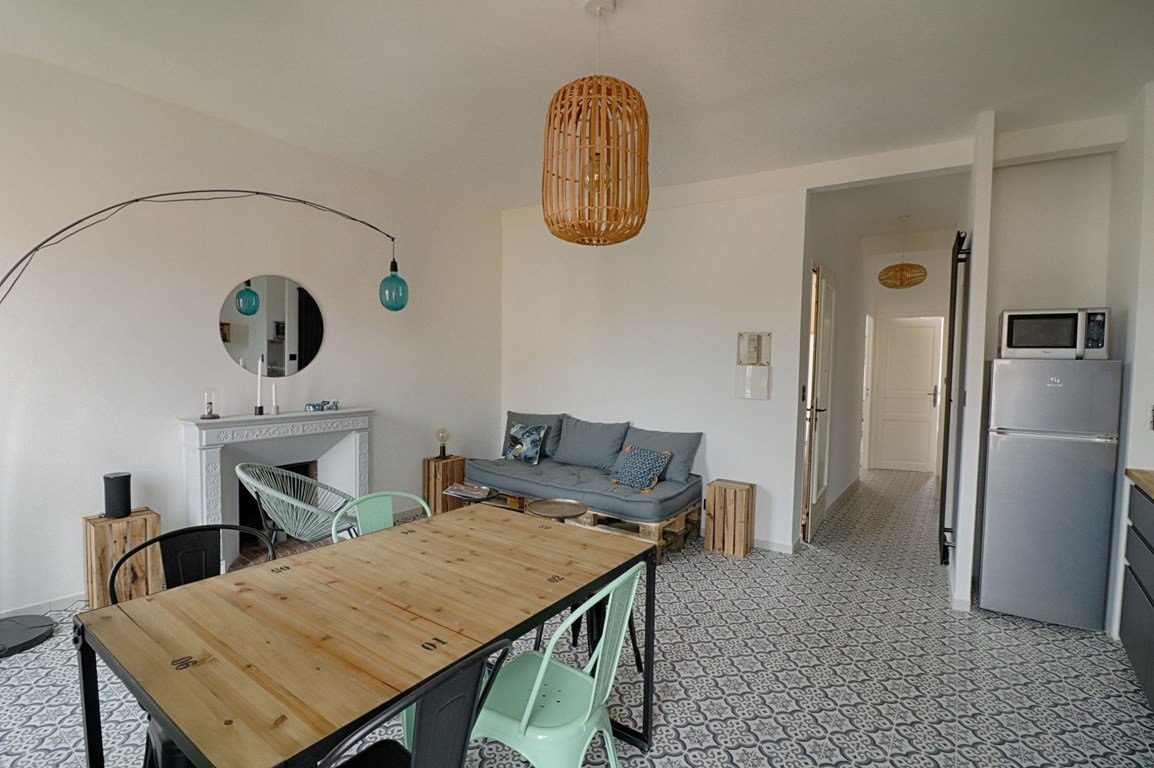 L'appartement comprend une entrée, une cuisine entièrement équipée ouverte sur un salon salle à manger, une salle d’eau avec WC, et deux chambres.
