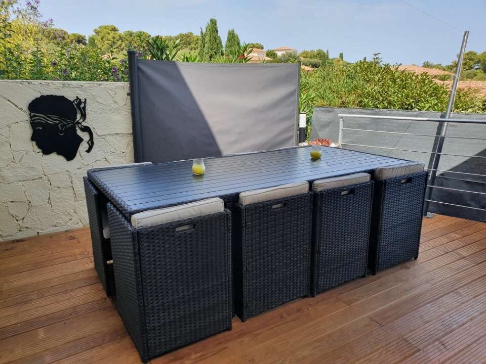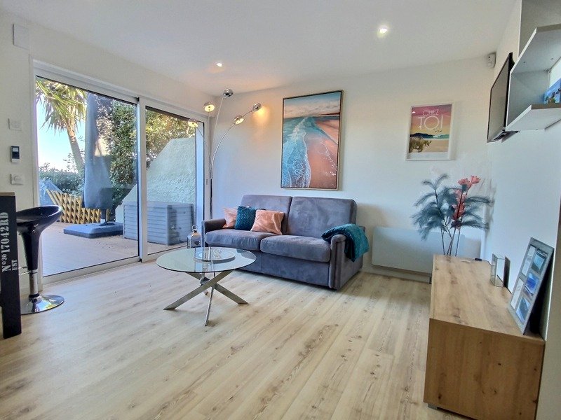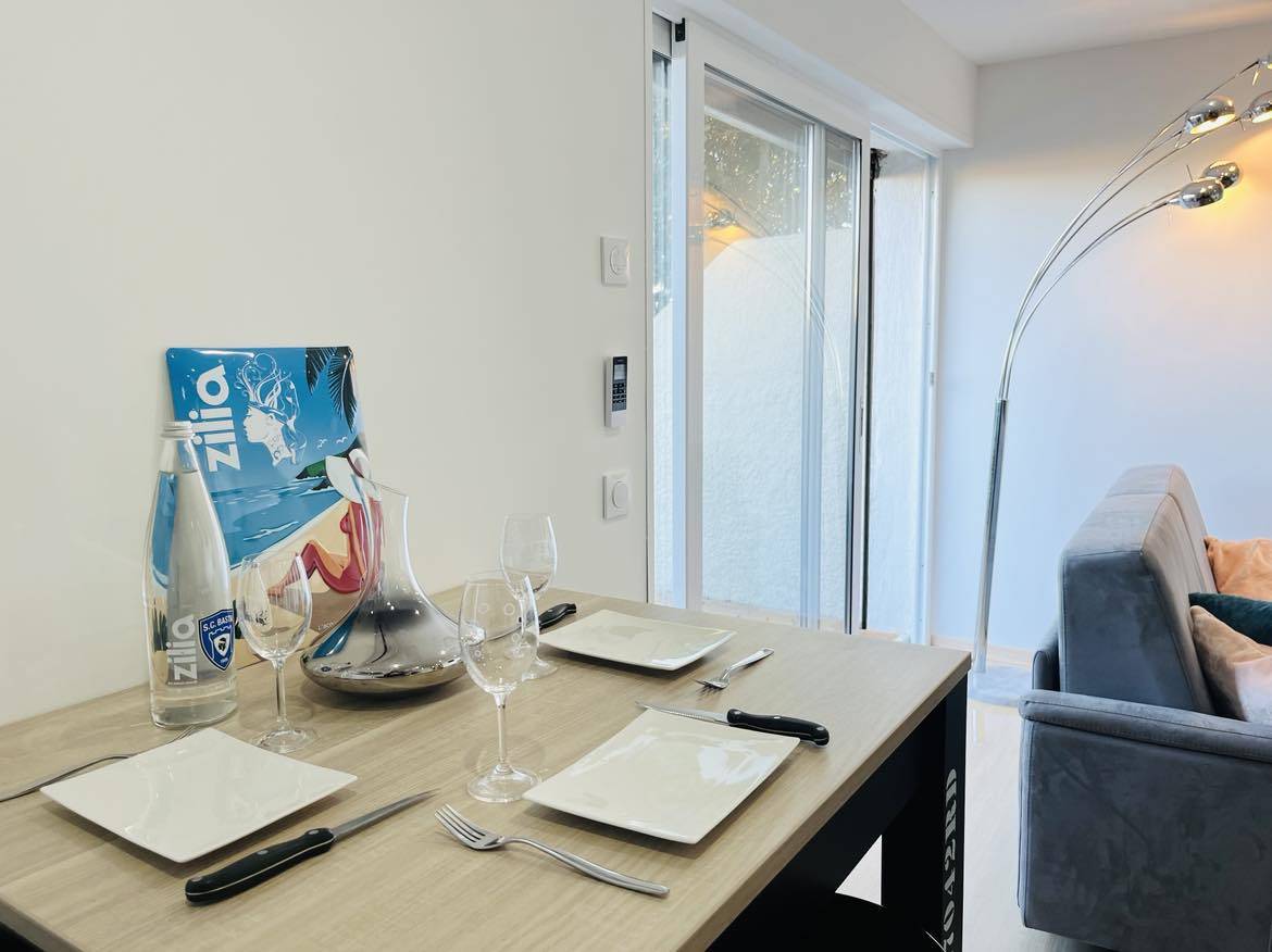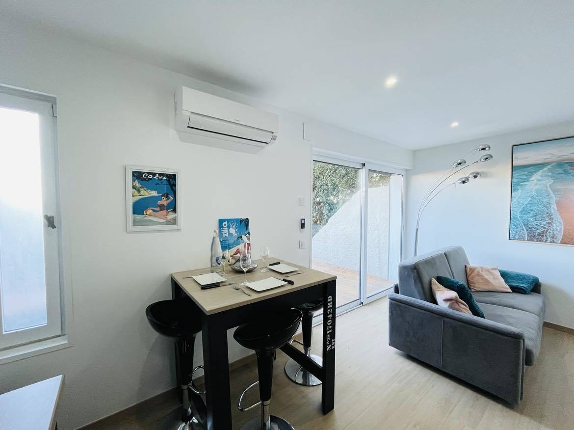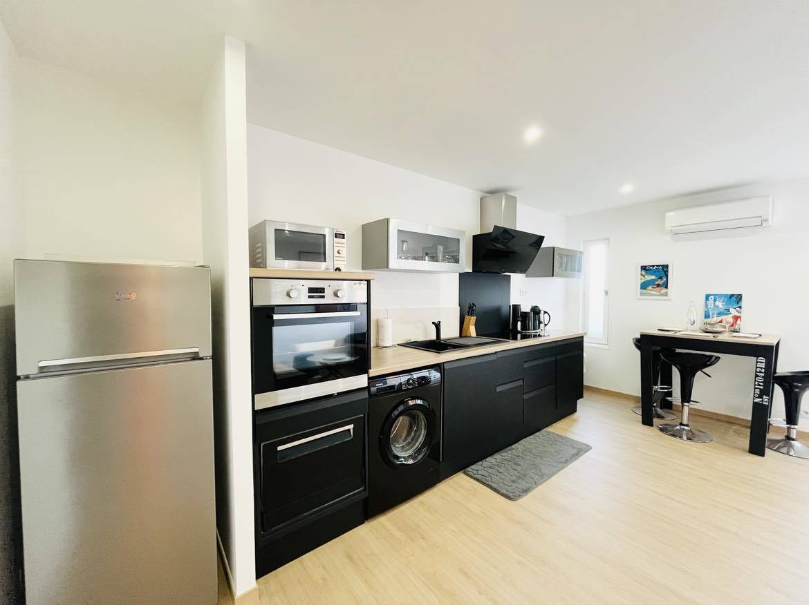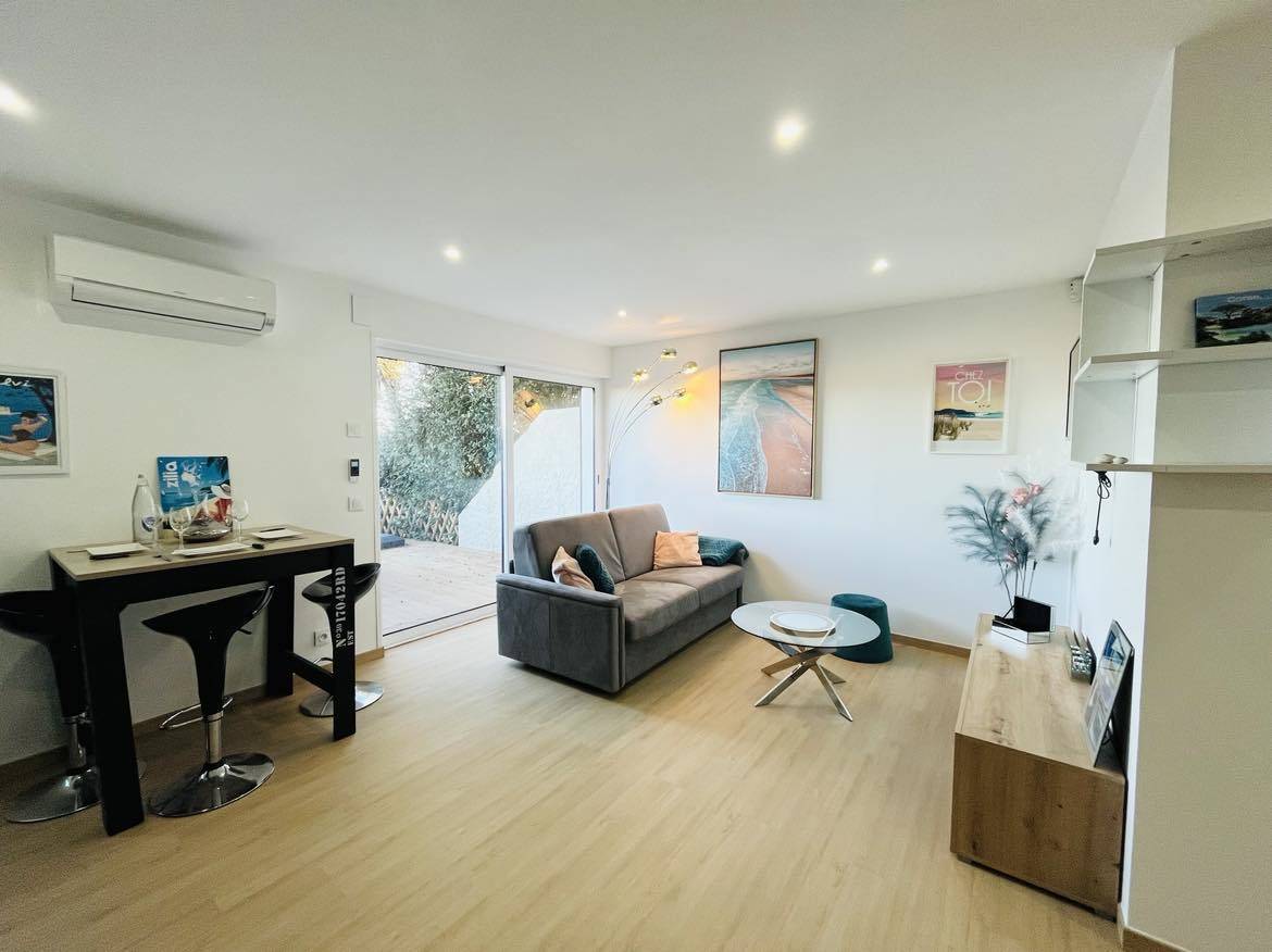 L' appartement, au rez-de-chaussée est composé d'une cuisine entièrement équipée, d'un salon climatisé, d'une salle d'eau avec WC, d'une chambre avec un lit double.