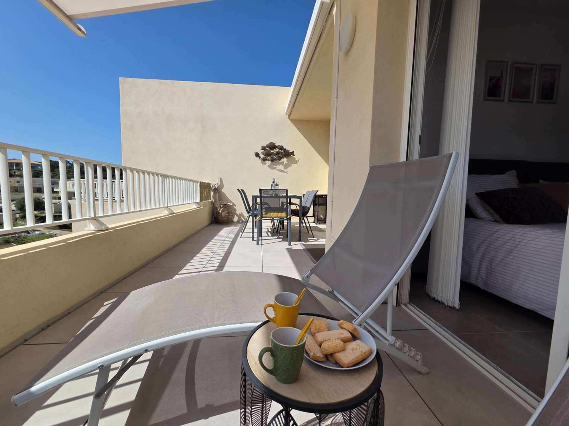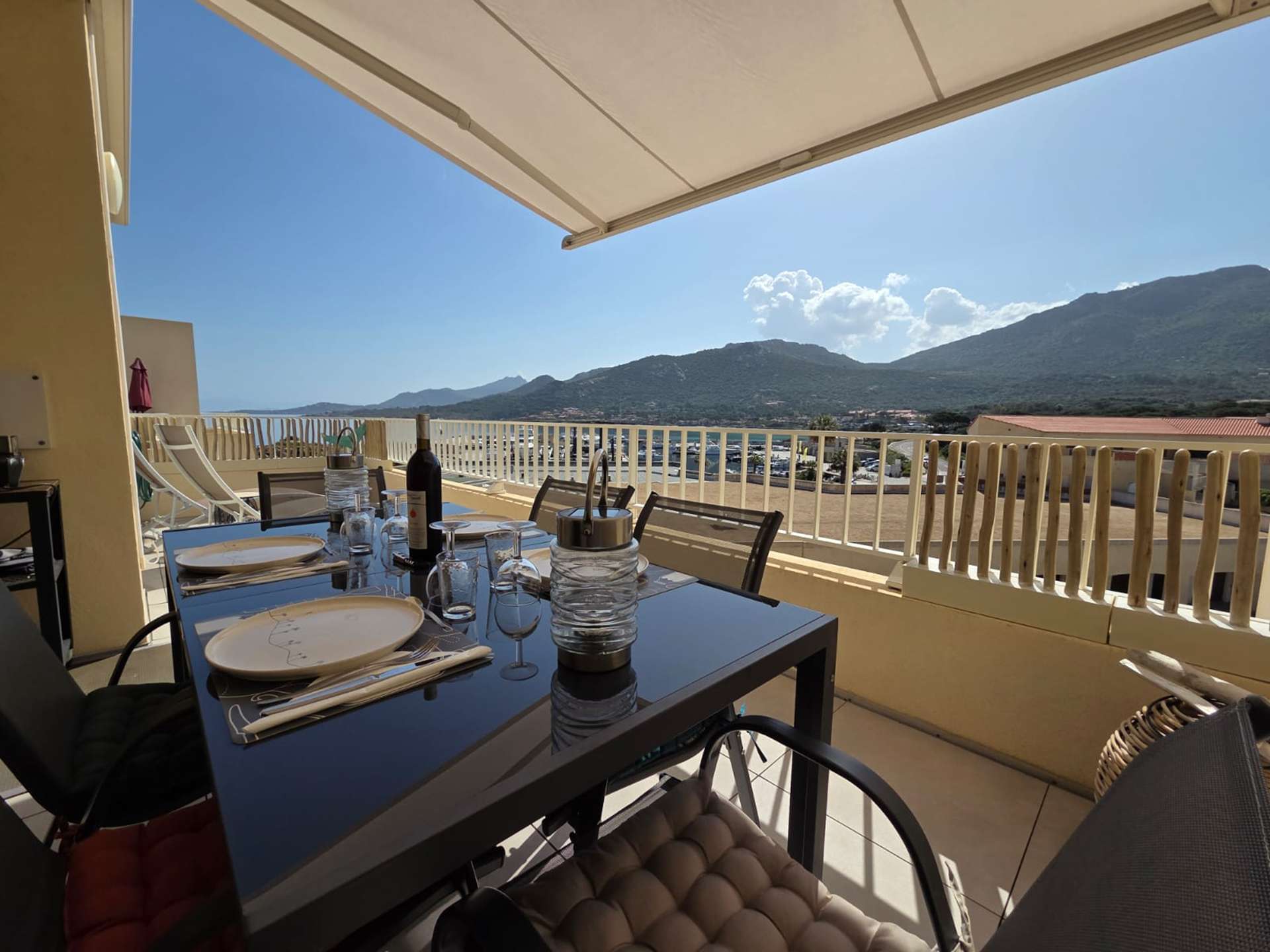 Le plus de cet appartement : Très belle vue sur le port de la Marine. Dispose de deux terrasses avec stores et d'un parking. Entièrement climatisé.