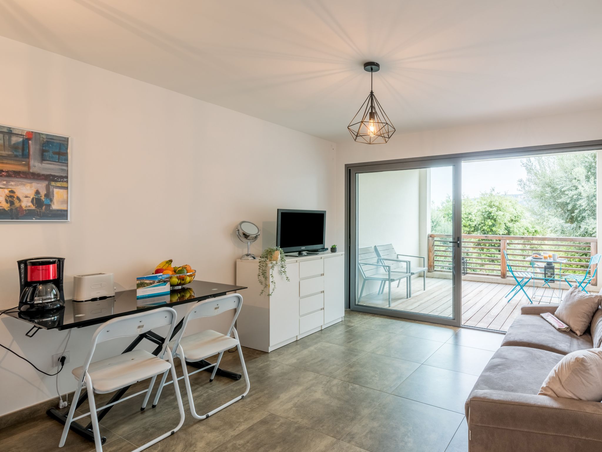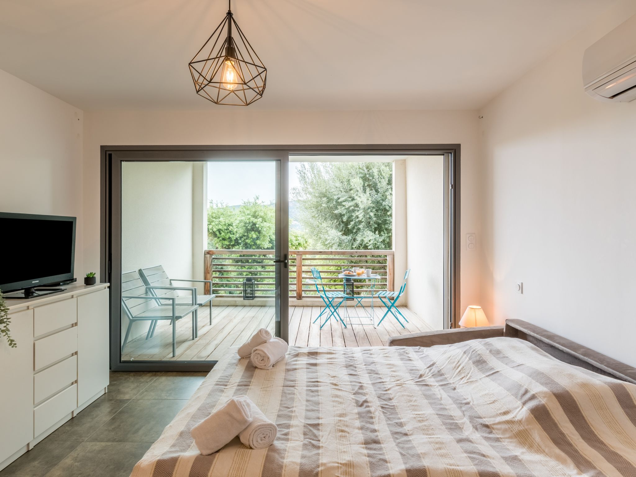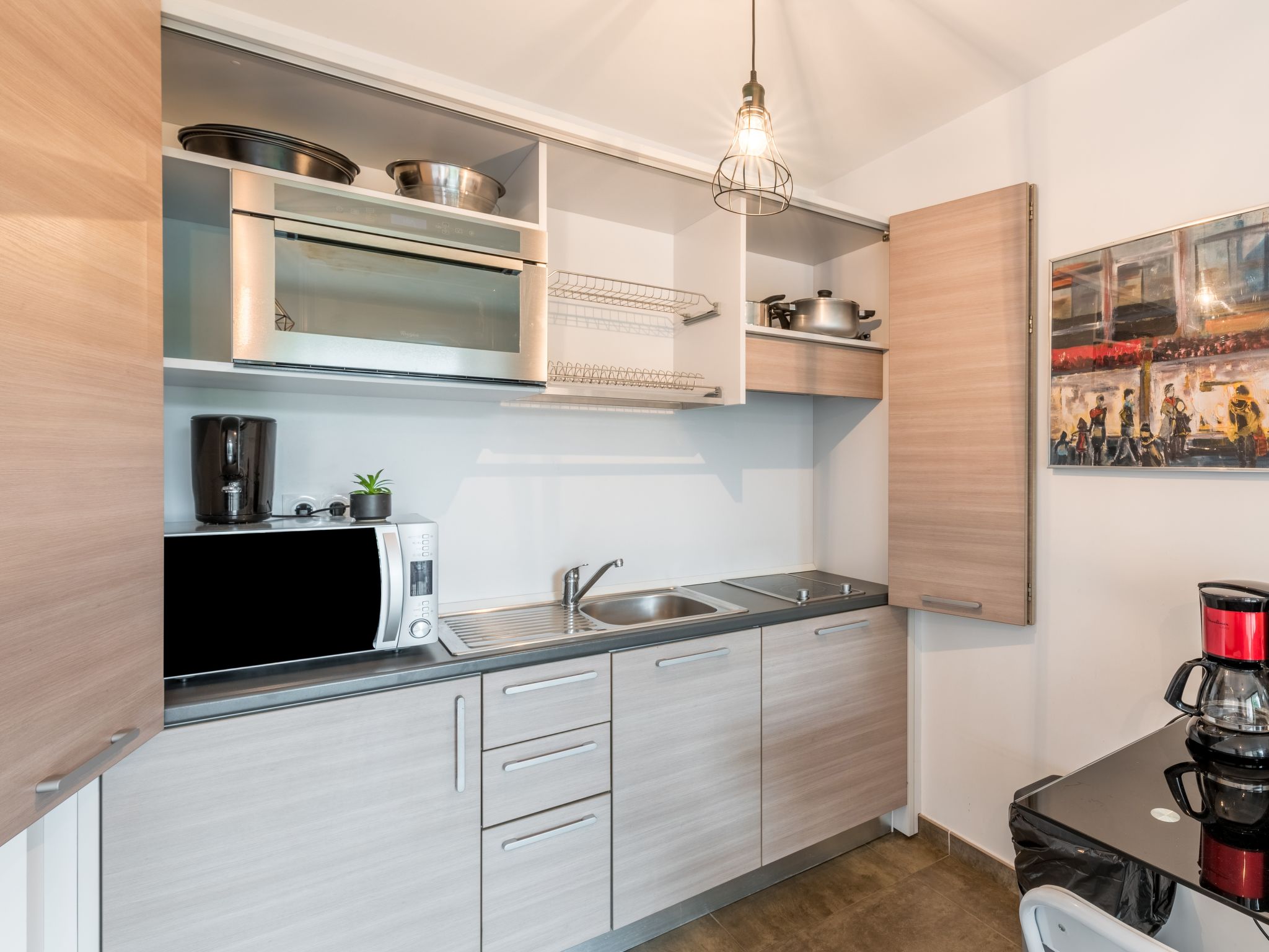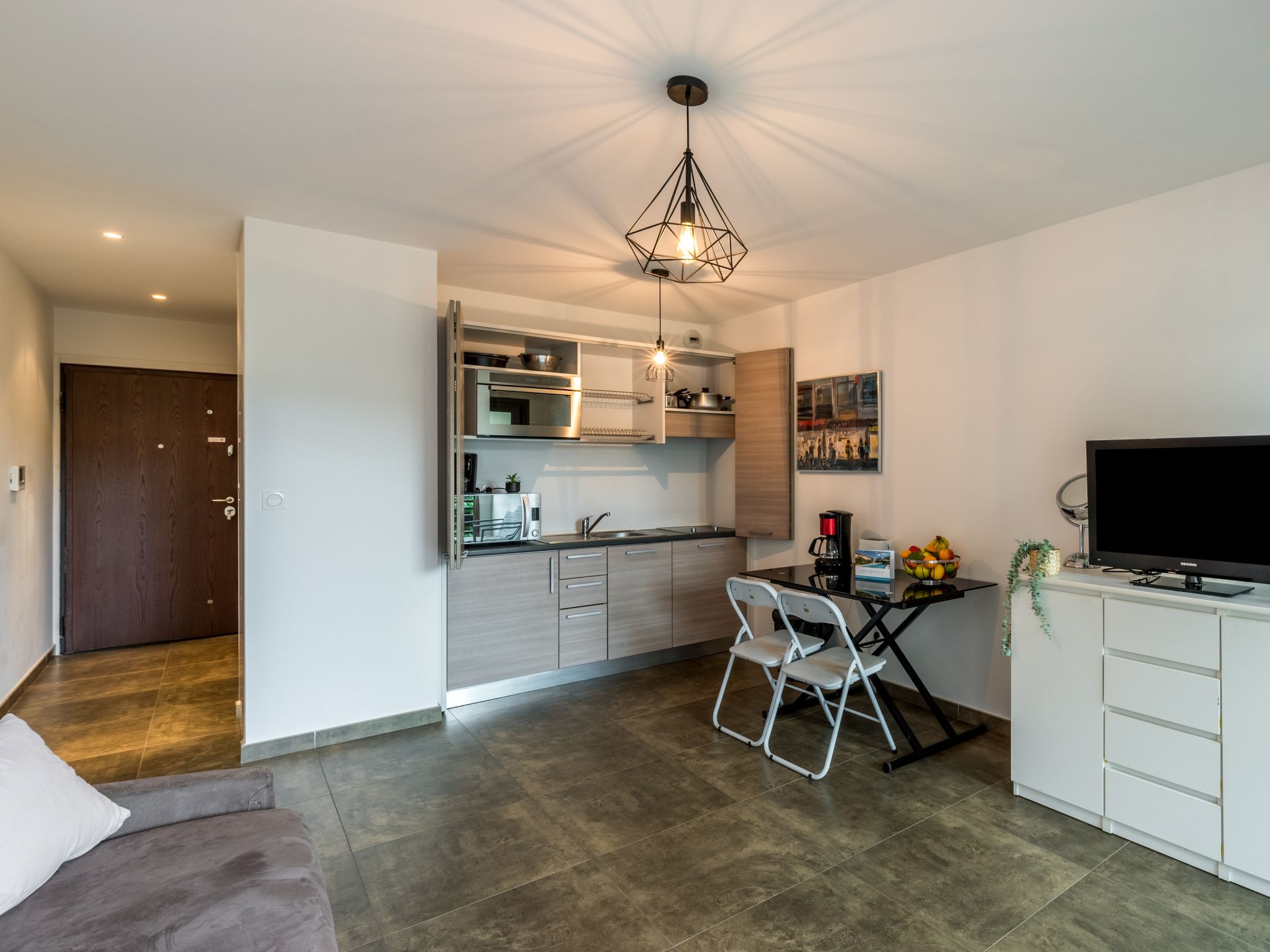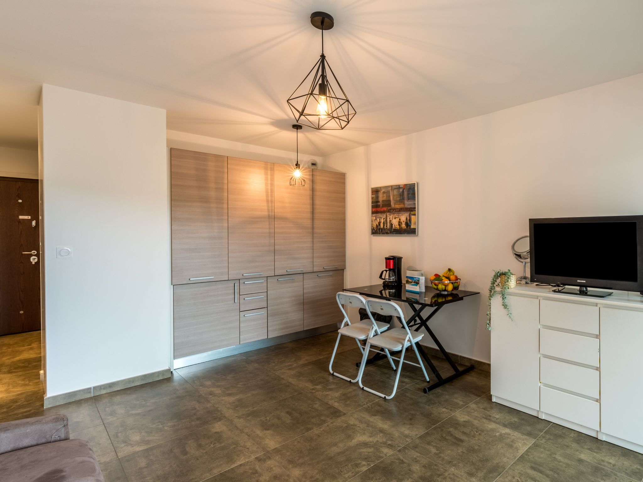 Studio 32 m2 au 1er étage. Aménagement confortable: séjour/salle à manger avec 1 divan-lit double (1 x 140 cm, longueur 190 cm), TV (écran plat). Sortie sur la terrasse. Coin cuisine (2 plaques de cuisson, lave-vaisselle, grille-pain, bouilloire électrique, micro-ondes). Douche/WC. Chauffage électrique, air-conditionné. Terrasse 10 m2. Meubles de terrasse. A disposition: lave-linge. Internet (Connexion WIFI, gratuit). Veuillez noter: logement non-fumeur. Détecteur de fumée.
