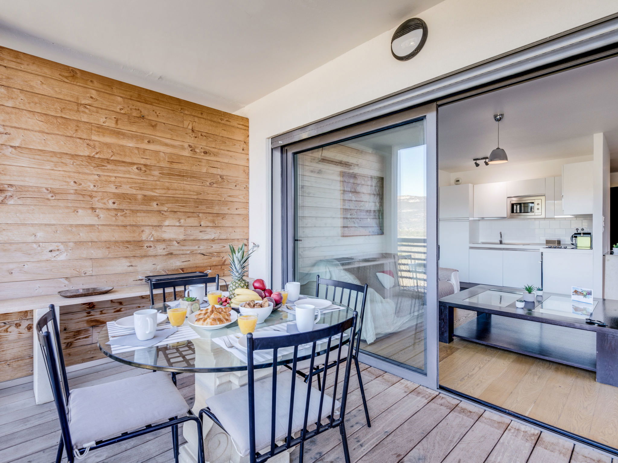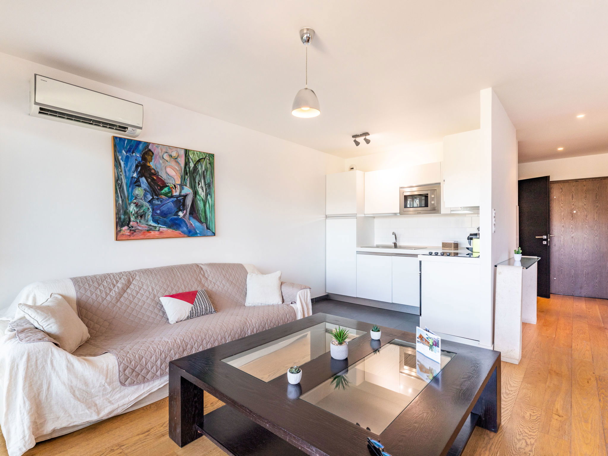 Appartement de 2 pièces 57 m2 au 3ème étage. Aménagement confortable et plaisant: séjour/salle à manger avec 1 divan-lit double (140 cm, longueur 190 cm), TV (écran plat). Sortie sur le balcon. 1 chambre avec 1 grand-lit (160 cm, longueur 200 cm), TV (écran plat). Cuisine ouverte (4 plaques de cuisson, four, lave-vaisselle, grille-pain, bouilloire électrique, micro-ondes, cafetière électrique). Douche/WC, WC séparé. Chauffage électrique, air-conditionné. Balcon 12 m2. Mobilier de balcon. Vue sur la piscine. A disposition: lave-linge. Internet (Connexion WIFI, gratuit). Veuillez noter: logement non-fumeur. Détecteur de fumée.