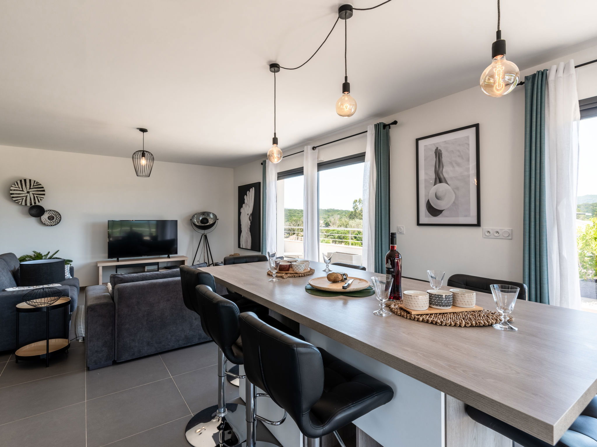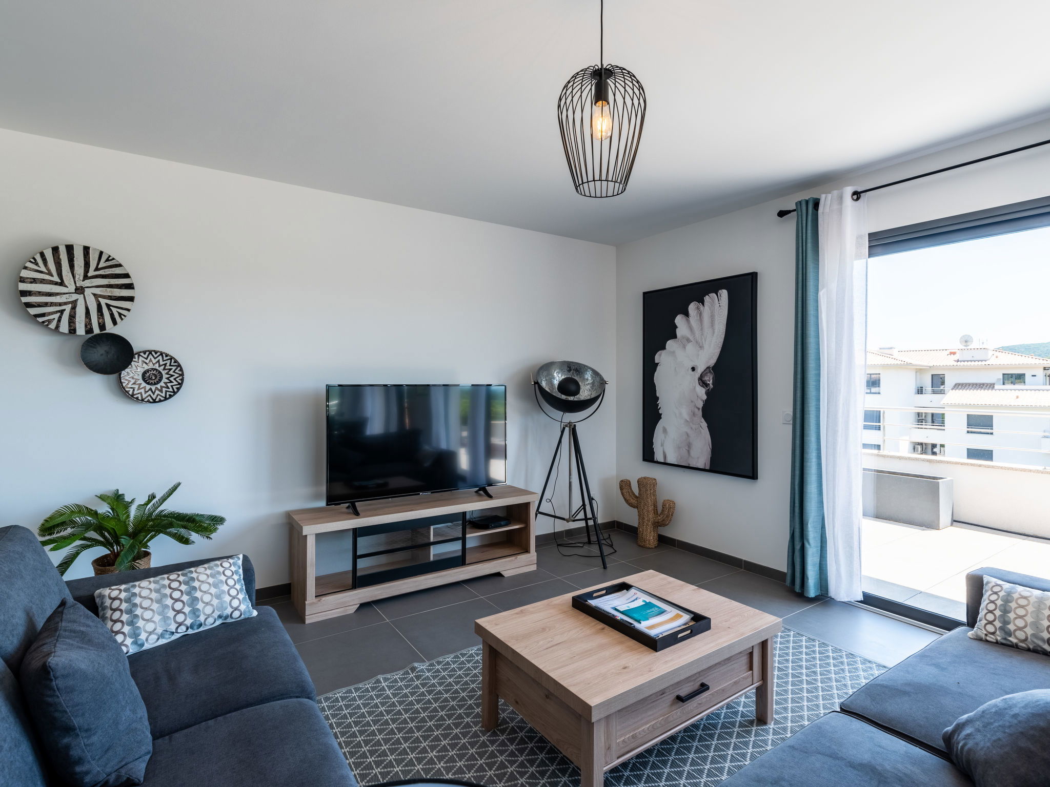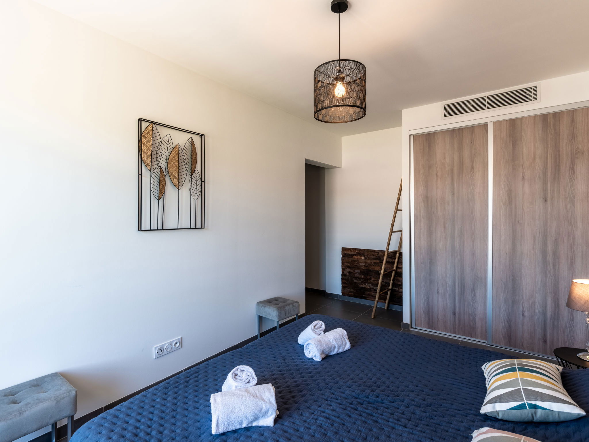 Appartement de 5 pièces 137 m2 au 3ème étage. Aménagement très agréable et moderne: séjour/salle à manger avec TV (écran plat). Sortie sur la terrasse. 1 chambre avec 1 grand-lit (160 cm, longueur 200 cm), douche. Sortie sur la terrasse. 1 chambre avec 1 grand-lit (160 cm, longueur 200 cm), douche/WC. Sortie sur la terrasse. 1 chambre avec 2 lits (90 cm, longueur 190 cm). 1 chambre avec 2 lits (90 cm, longueur 200 cm). Cuisine ouverte (four, lave-vaisselle, 3 plaques à induction, grille-pain, bouilloire électrique, micro-ondes, congélateur, cafetière électrique, Capsules pour machine à café (Tassimo)). Sortie sur la terrasse. Douche, WC séparé. Chauffage électrique, air-conditionné. Grande terrasse 120 m2. Chaises longues (2). Belle vue sur les montagnes. A disposition: lave-linge, sèche-linge, fer à repasser. Internet (Connexion WIFI, gratuit). Place de parking No 731 près de la maison. Veuillez noter: logement non-fumeur. Détecteur de fumée. Plancha. 2A2470013588E