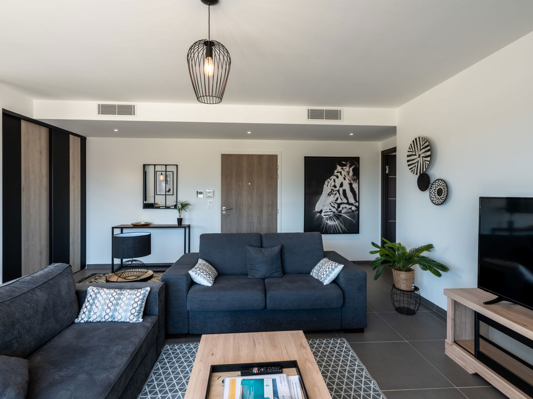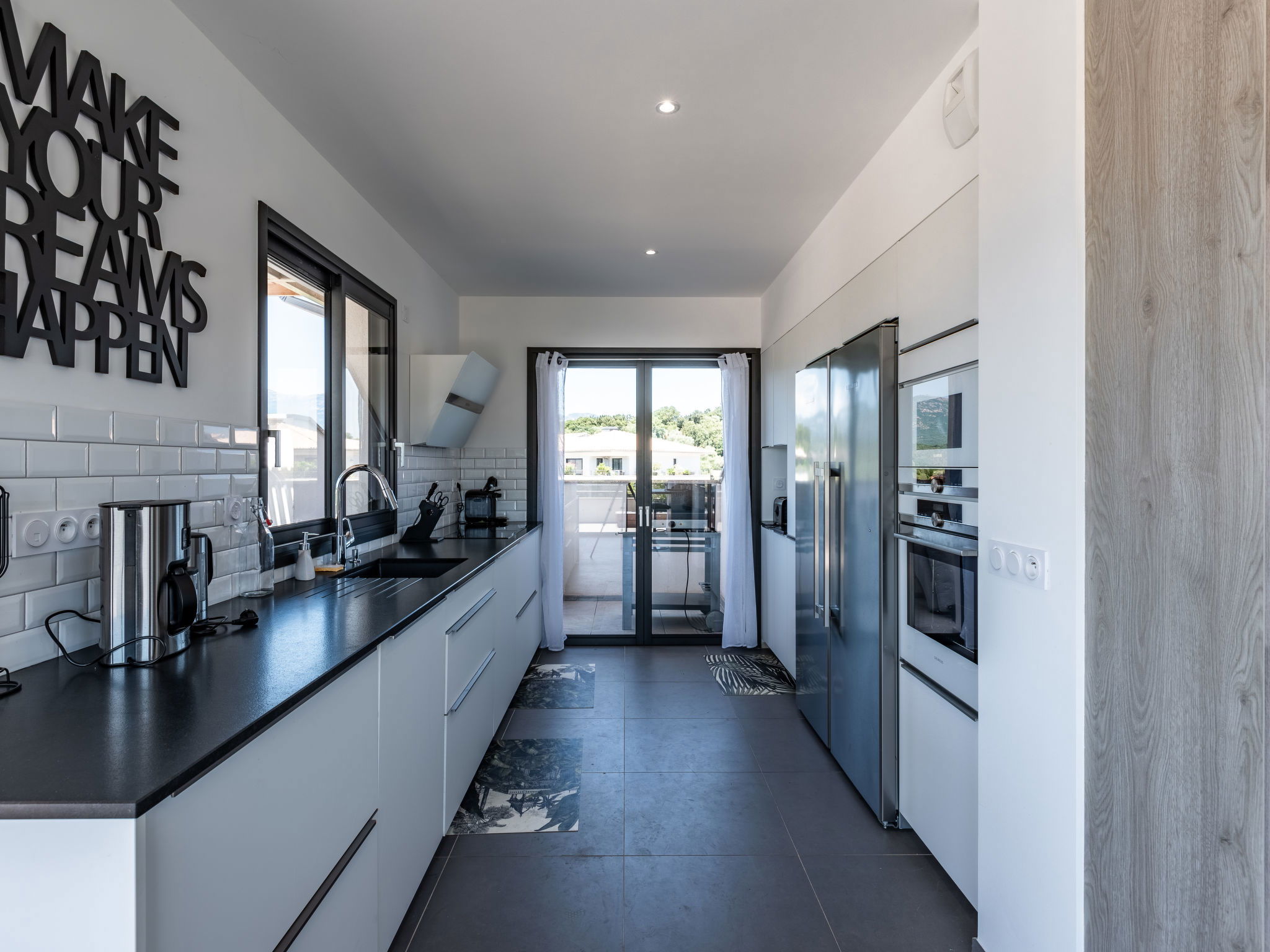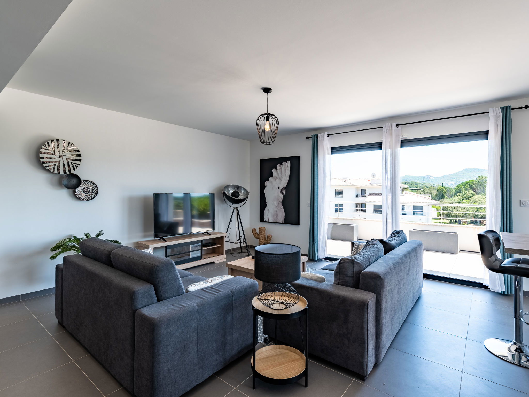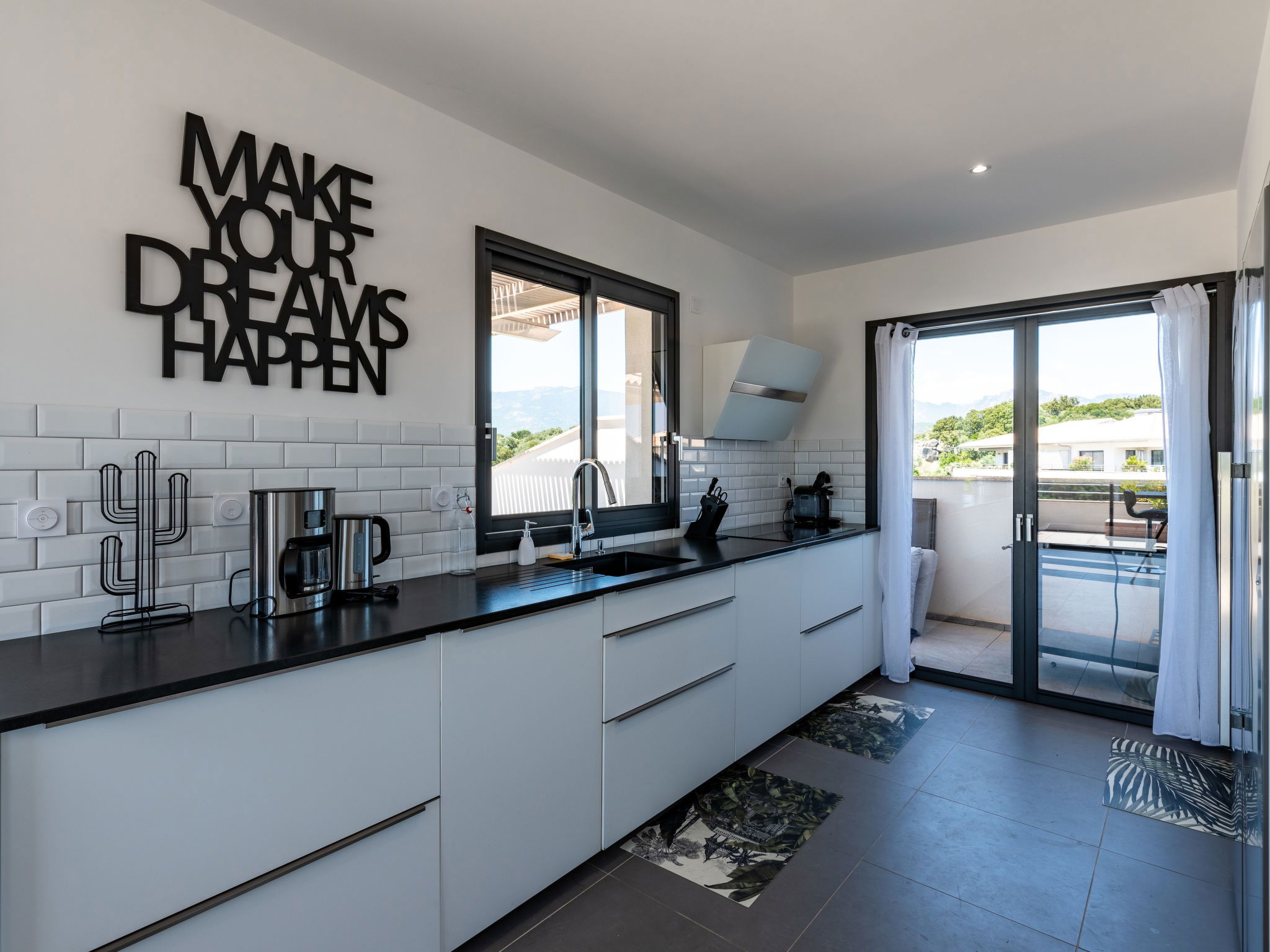 Appartement de 5 pièces 137 m2 au 3ème étage. Aménagement très agréable et moderne: séjour/salle à manger avec TV (écran plat). Sortie sur la terrasse. 1 chambre avec 1 grand-lit (160 cm, longueur 200 cm), douche. Sortie sur la terrasse. 1 chambre avec 1 grand-lit (160 cm, longueur 200 cm), douche/WC. Sortie sur la terrasse. 1 chambre avec 2 lits (90 cm, longueur 190 cm). 1 chambre avec 2 lits (90 cm, longueur 200 cm). Cuisine ouverte (four, lave-vaisselle, 3 plaques à induction, grille-pain, bouilloire électrique, micro-ondes, congélateur, cafetière électrique, Capsules pour machine à café (Tassimo)). Sortie sur la terrasse. Douche, WC séparé. Chauffage électrique, air-conditionné. Grande terrasse 120 m2. Chaises longues (2). Belle vue sur les montagnes. A disposition: lave-linge, sèche-linge, fer à repasser. Internet (Connexion WIFI, gratuit). Place de parking No 731 près de la maison. Veuillez noter: logement non-fumeur. Détecteur de fumée. Plancha. 2A2470013588E
