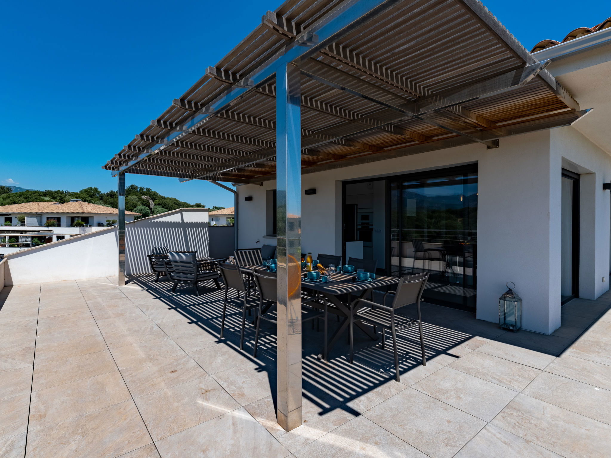 Belle résidence "Domaine d'Arca". En bordure de la localité, à 2 km du centre de Porto Vecchio, à 4 km de la mer, à 8 km de la plage. En commun: parc 4 ha (clôturé), piscine (disponibilité saisonnière: 01.Jun. - 01.Nov. horaires d'ouverture de la piscine: 10:00-20:00) avec marches intérieures. Piscine de forme irrégulière. Douche extérieure, pool house avec WC, tennis (2 x dur), terrain de pétanque, entretien de la piscine par le propriétaire/jardinier. Magasins 2 km, magasin d'alimentation 1 km, supermarché 2 km, restaurant, boulangerie 500 m, arrêt de bus 2 km, plage de sable "Santa Giulia" 8 km. Port plaisance 3 km, terrain de golf (9 trous) 7 km, centre équestre 3 km. Attractions à proximité: Figari 18 km, Bonifacio 28 km, Solenzara 40 km, Iles Lavezzi. Région de randonnées: Aiguilles de Bavella, Réserve naturelle de Bonifacio. Veuillez noter: voiture recommandée. Adapté(e) aux familles. Aéroport à proximité 25 km de la maison.