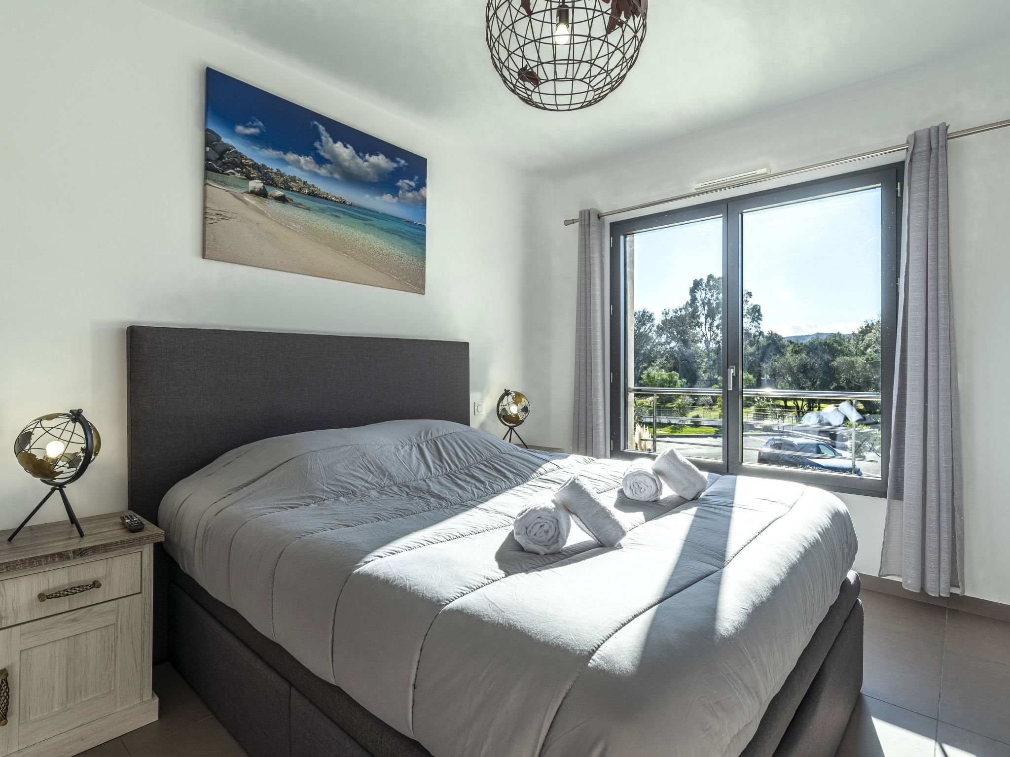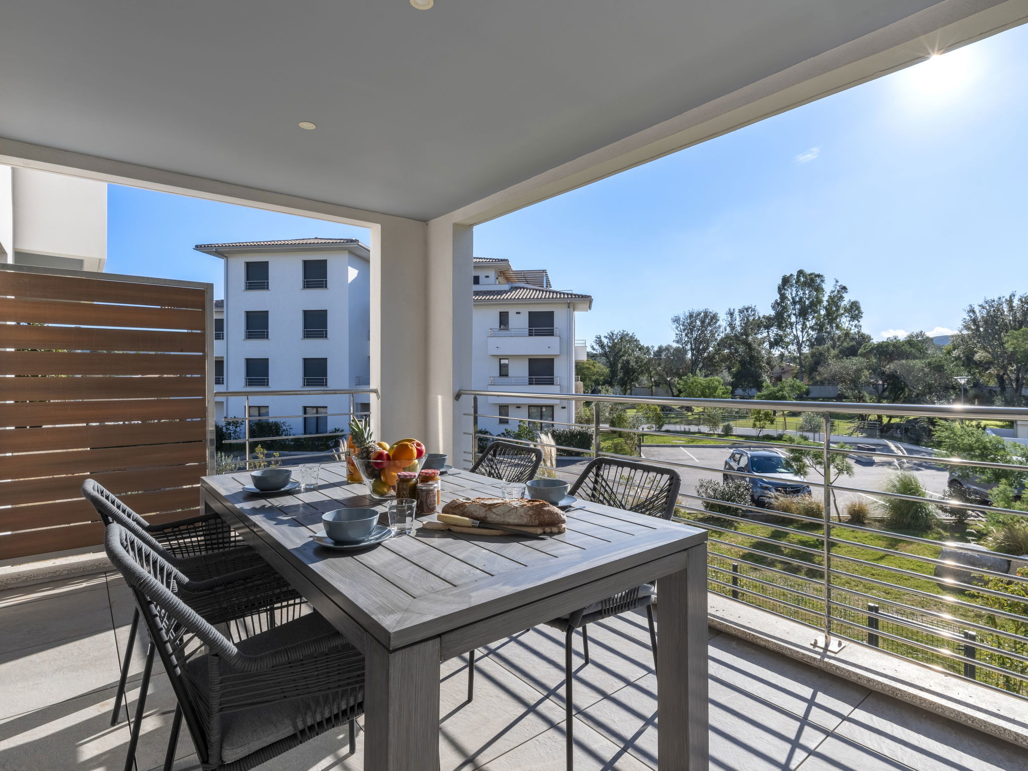 "Domaine d'Arca G7", Appartement de 2 pièces 50 m2 au 2ème étage. Aménagement moderne: séjour/salle à manger avec baie vitrée avec 1 divan-lit double (140 cm, longueur 190 cm), TV (écran plat). Sortie sur le balcon, sur la terrasse. 1 chambre avec 1 grand-lit (160 cm, longueur 200 cm). Sortie sur la terrasse. Cuisine ouverte (four, lave-vaisselle, 1 plaques à induction, 4 feux, bouilloire électrique, micro-ondes, cafetière électrique). Bain/WC. Chauffage électrique, air-conditionné. Terrasse 20 m2. Meubles de terrasse. A disposition: lave-linge. Internet (Connexion WIFI, gratuit). Place de parking. Veuillez noter: logement non-fumeur. Détecteur de fumée. 2A247000121E8