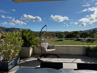 Appartement T3 moderne, tout confort avec climatisation dans toutes les pièces, au 3eme et dernier étage desservi par un ascenseur, se prolongeant par une très grande terrasse de 72 m², triple orientation est/sud/ ouest, offrant une vue dégagée sur tout le parc et les montagnes de l’Alta Rocca.