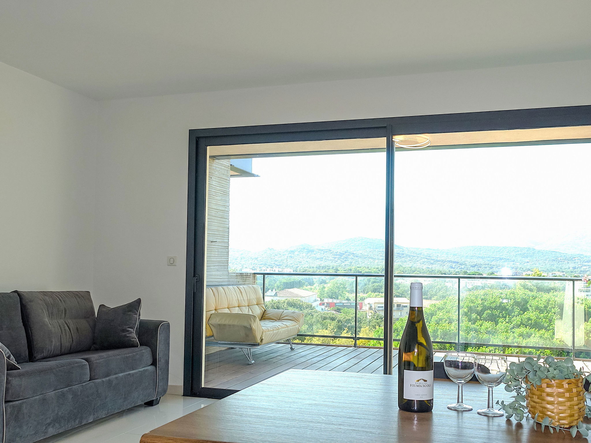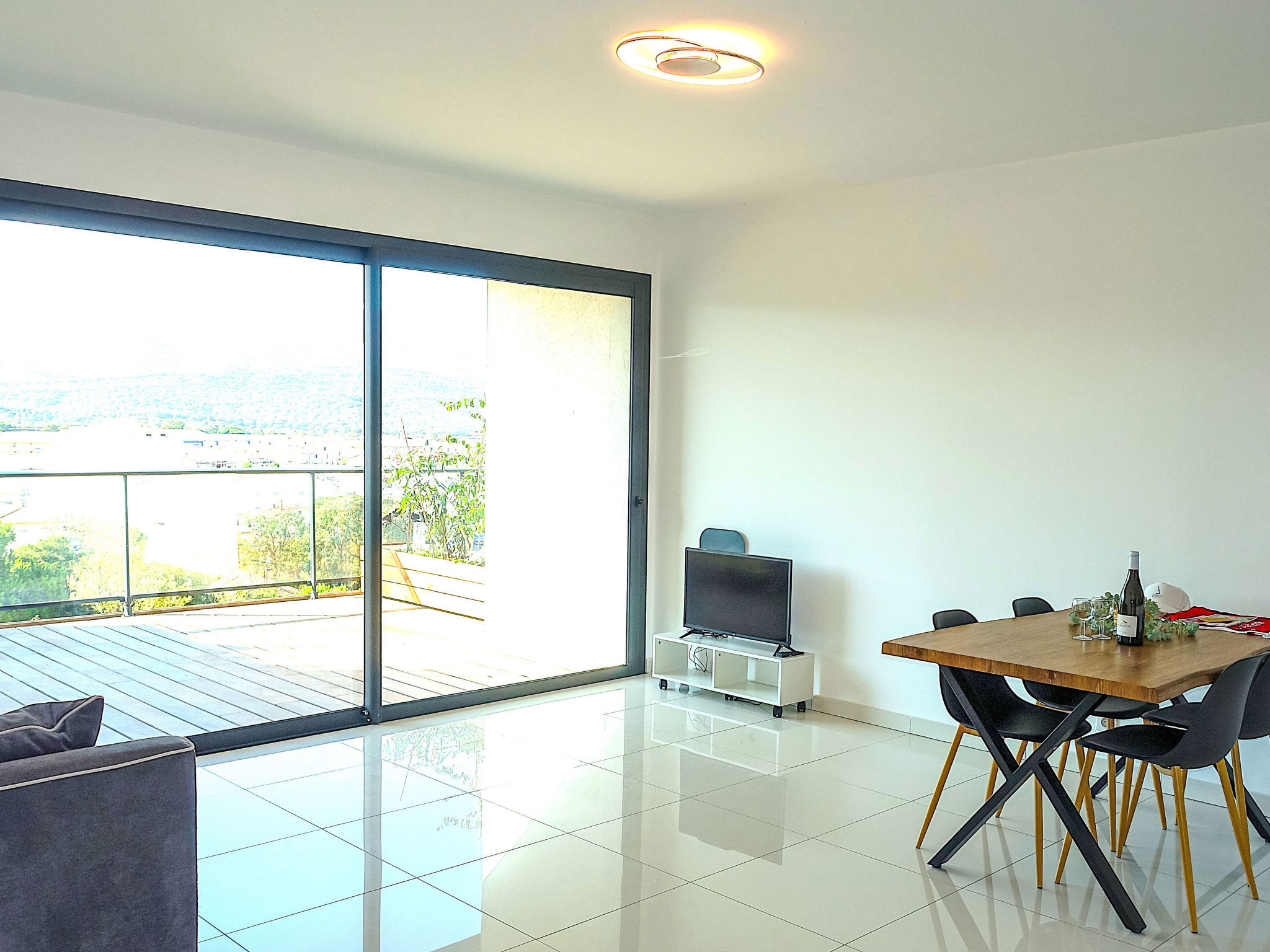 "Nautilus", Appartement de 2 pièces 52 m2 au 2ème étage. Séjour/salle à manger avec baie vitrée avec 1 divan-lit double (140 cm, longueur 190 cm), table pour les repas et TV (écran plat). Sortie sur la terrasse. 1 chambre avec 1 grand-lit (140 cm, longueur 190 cm). Sortie sur la terrasse. Coin cuisine (four, lave-vaisselle, 3 plaques à induction, grille-pain, bouilloire électrique, congélateur, cafetière électrique). Douche/WC, WC séparé. Chauffage électrique, air-conditionné. Grande terrasse couverte. Belle vue sur les montagnes. A disposition: lave-linge. Internet (Connexion WIFI, en sus). Place de parking (couvert, 1 Voiture). Veuillez noter: logement non-fumeur. Détecteur de fumée. Annonce d'un particulier (art 155, IV du CGI). 2A247001139C9