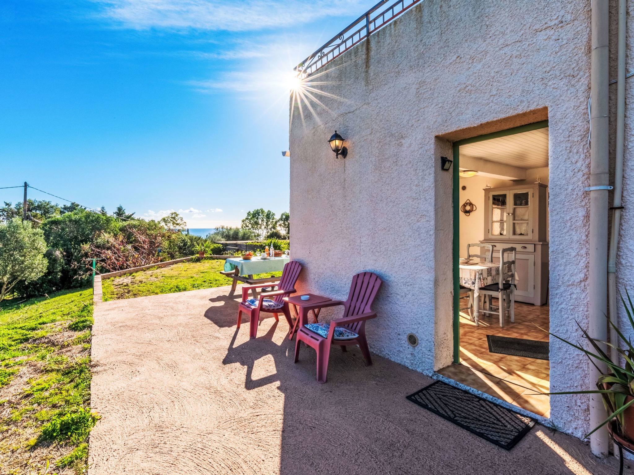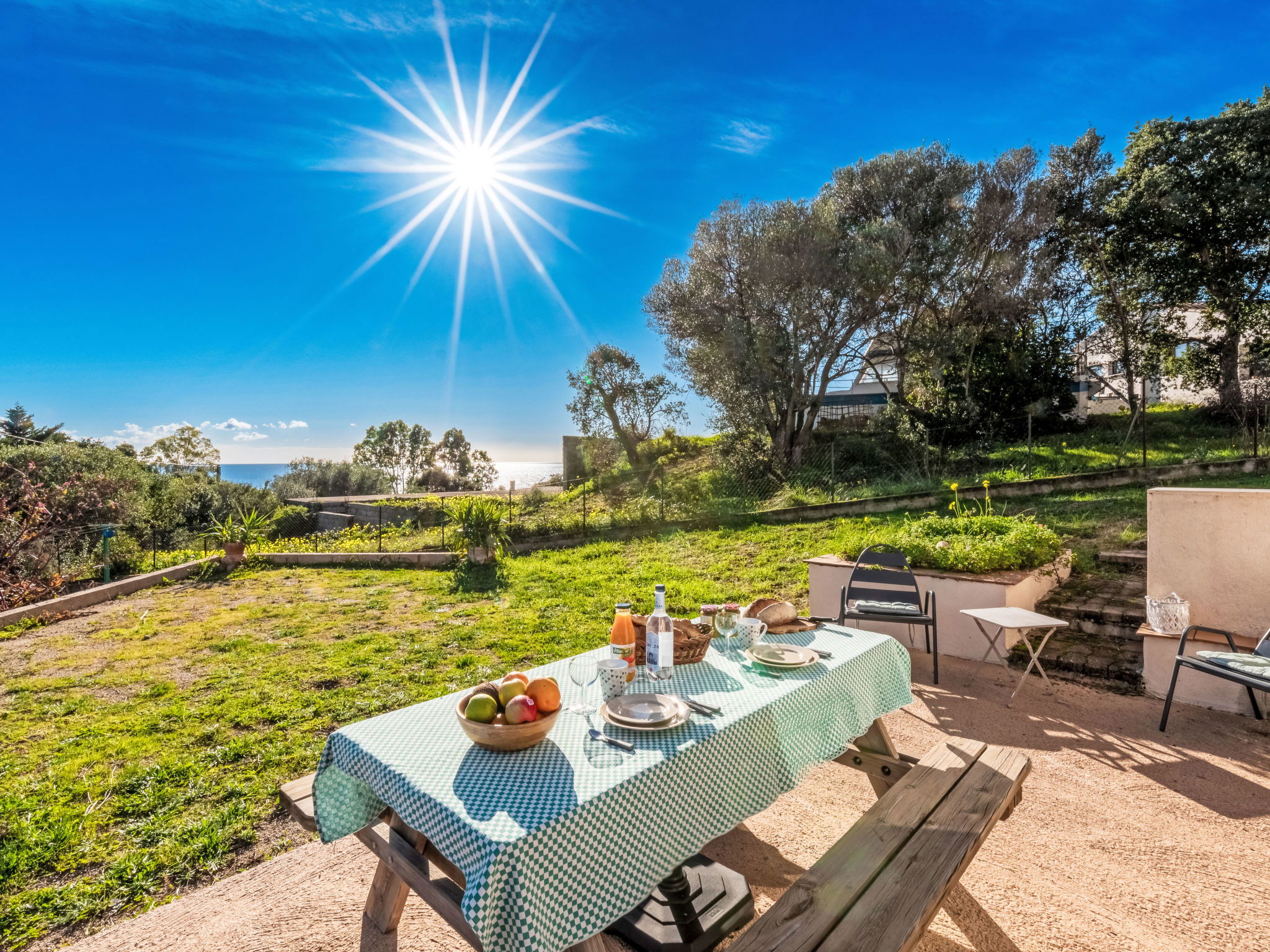 "T1 Gabriello" studio 45 m2. Aménagement confortable: séjour/salle à manger avec table pour les repas et TV (écran plat), air-conditionné. Sortie sur la terrasse. 1 chambre ouverte avec rideau, sans fenêtre avec 1 grand-lit (140 cm, longueur 190 cm). Cuisine (2 plaques à induction, grille-pain, bouilloire électrique, micro-ondes, cafetière électrique). Douche/WC. Chauffage électrique. Terrasse, situation est et situation sud. Meubles de terrasse, barbecue. Vue sur la mer et le jardin. A disposition: lave-linge, sèche-cheveux. Internet (Connexion WIFI). Place de parking près de la maison. Veuillez noter: détecteur de fumée. Annonce d'un particulier (art 155, IV du CGI).