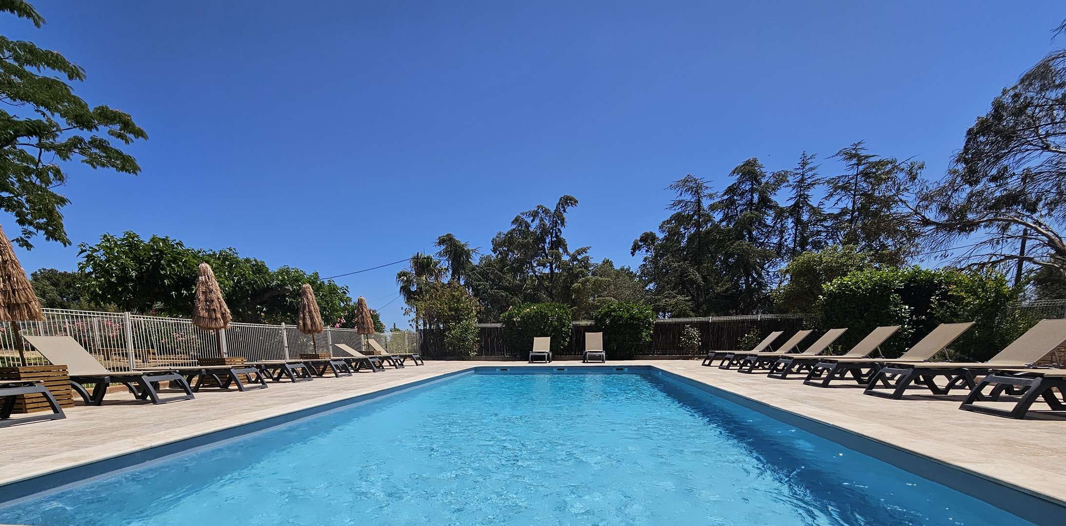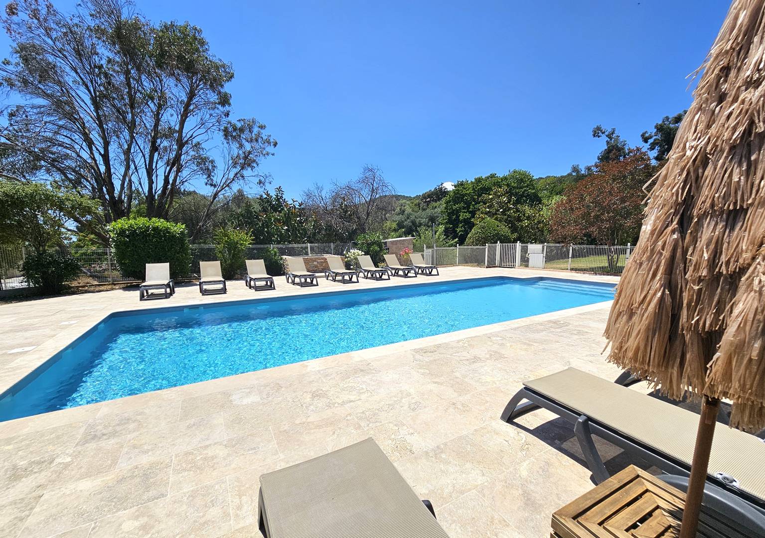 Son grand parc bien entretenu, est équipé d'un beau terrain de vollet, d'une piscine sécurisée, d'un terrain de pétanque et de nombreux endroits pour se reposer.