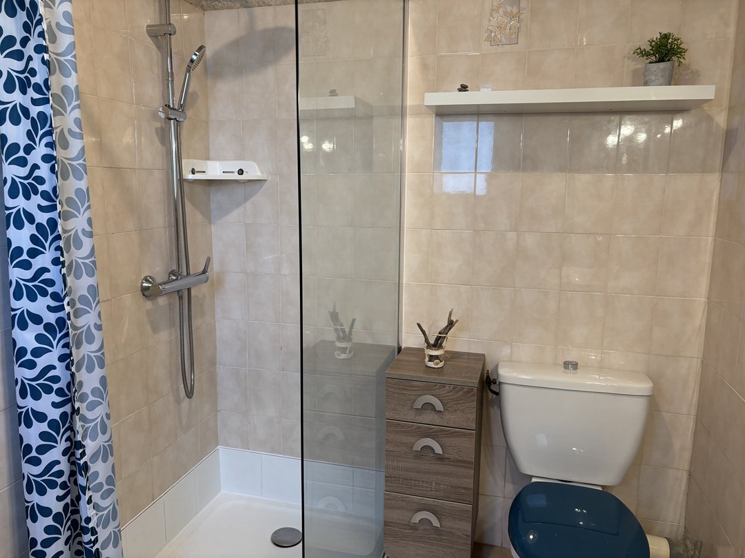 -Salle d'eau : Moustiquaire, Douche, lavabo, WC et rangements