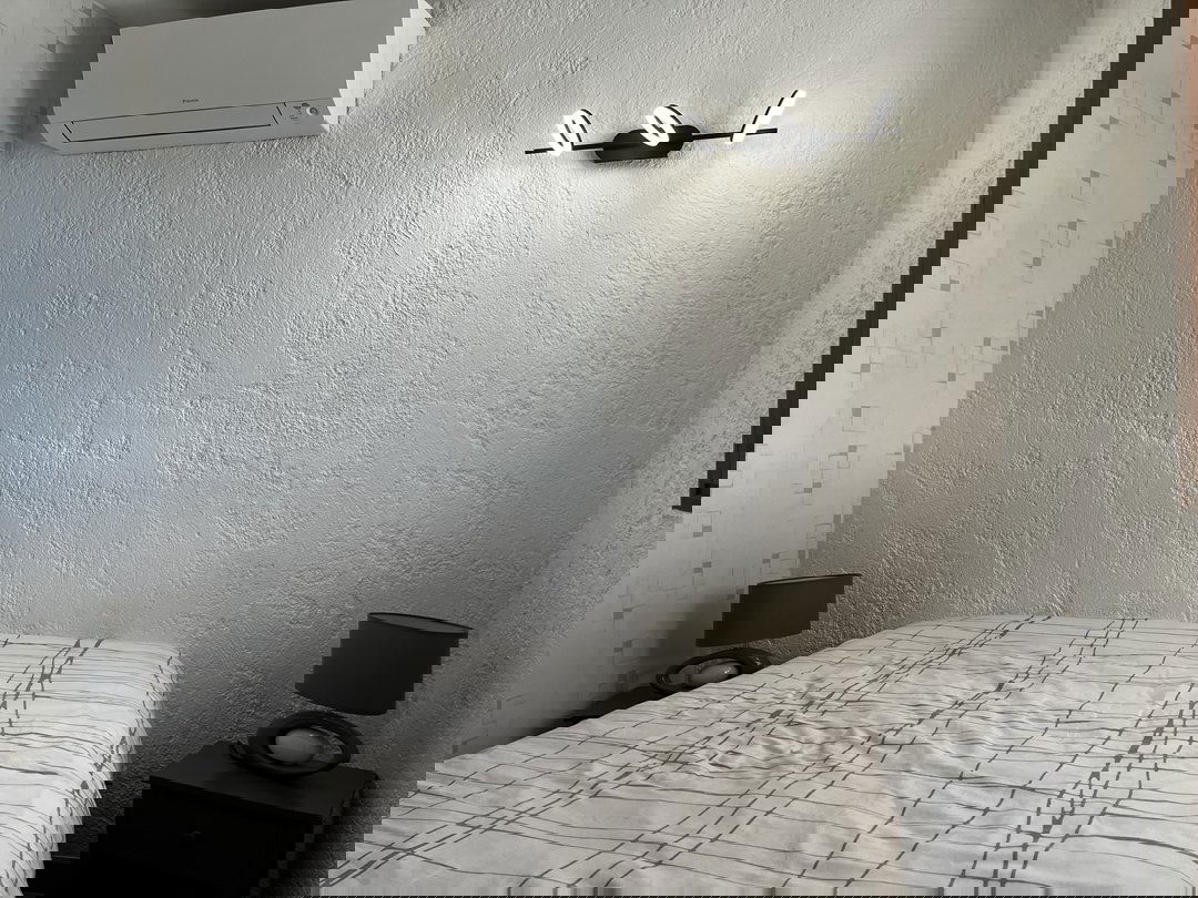 -Chambre : moustiquaire, Lit en 140, rangements, 2 tables de chevet et 2 lampes de chevet, coffre-fort et télévision