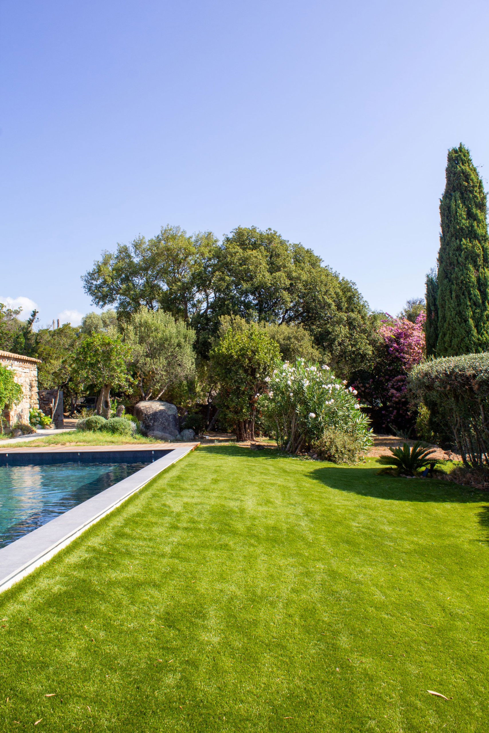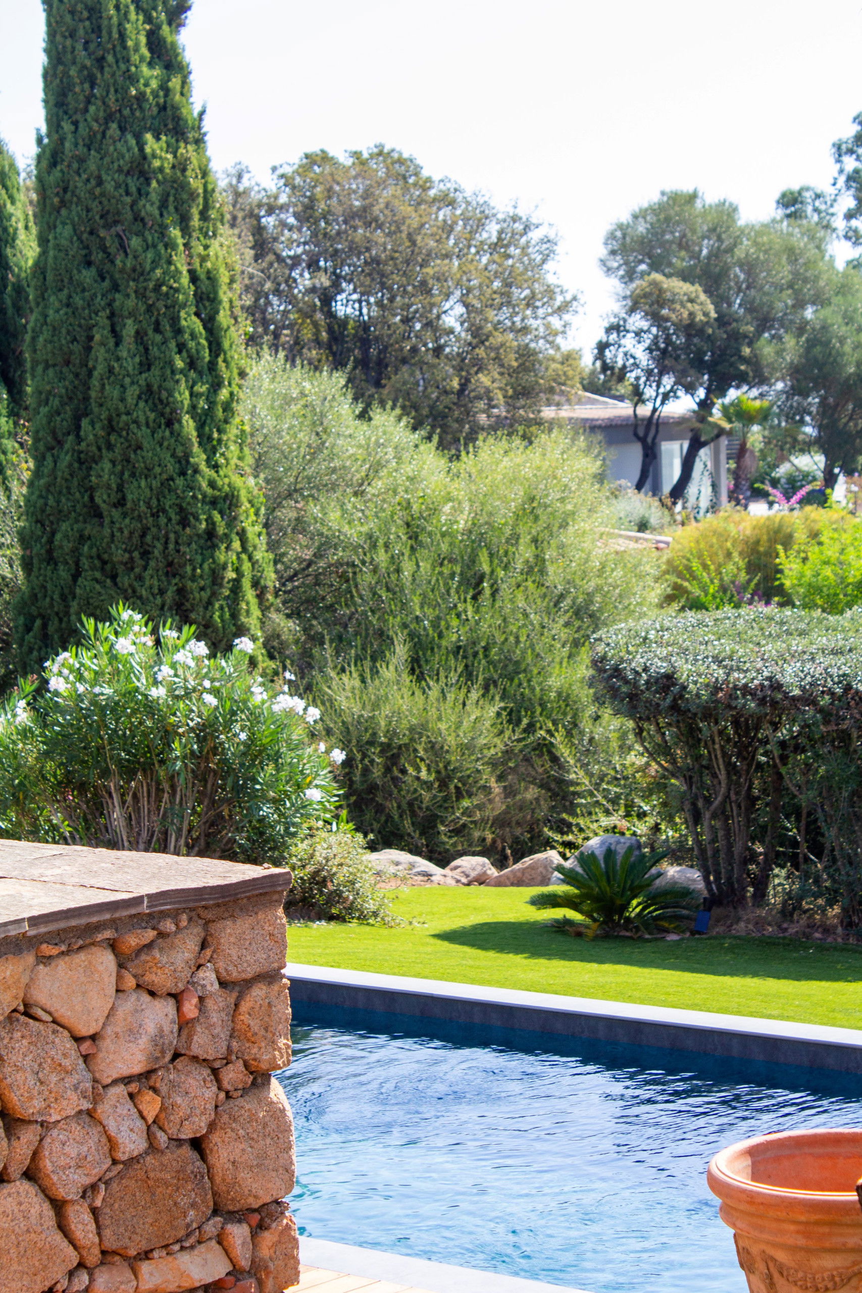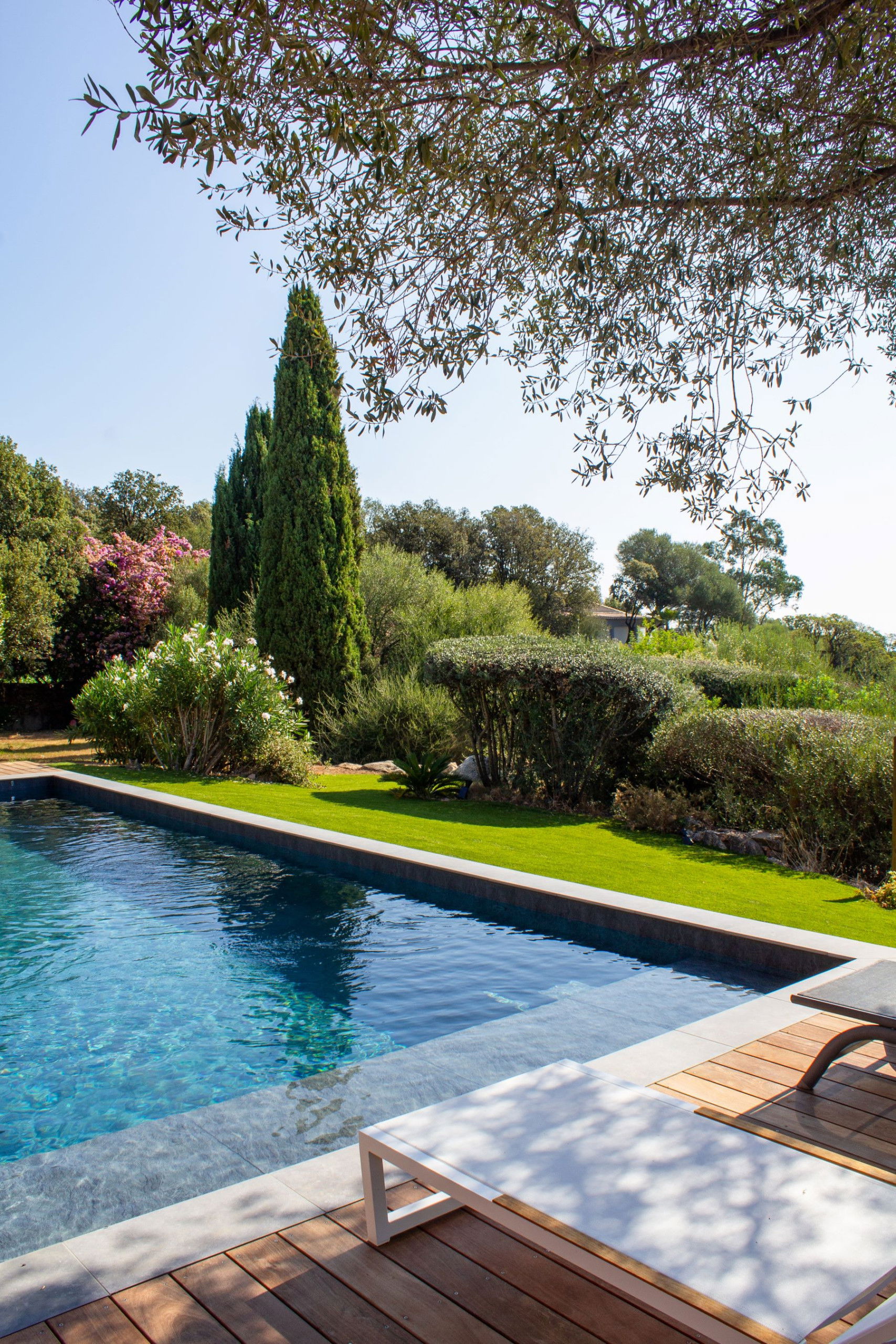 - La villa possède un joli jardin naturel et un espace terrasse avec piscine. La piscine mesure 10*4 et est chauffée en avant et après saison. La piscine est sécurisée avec un volet roulant.