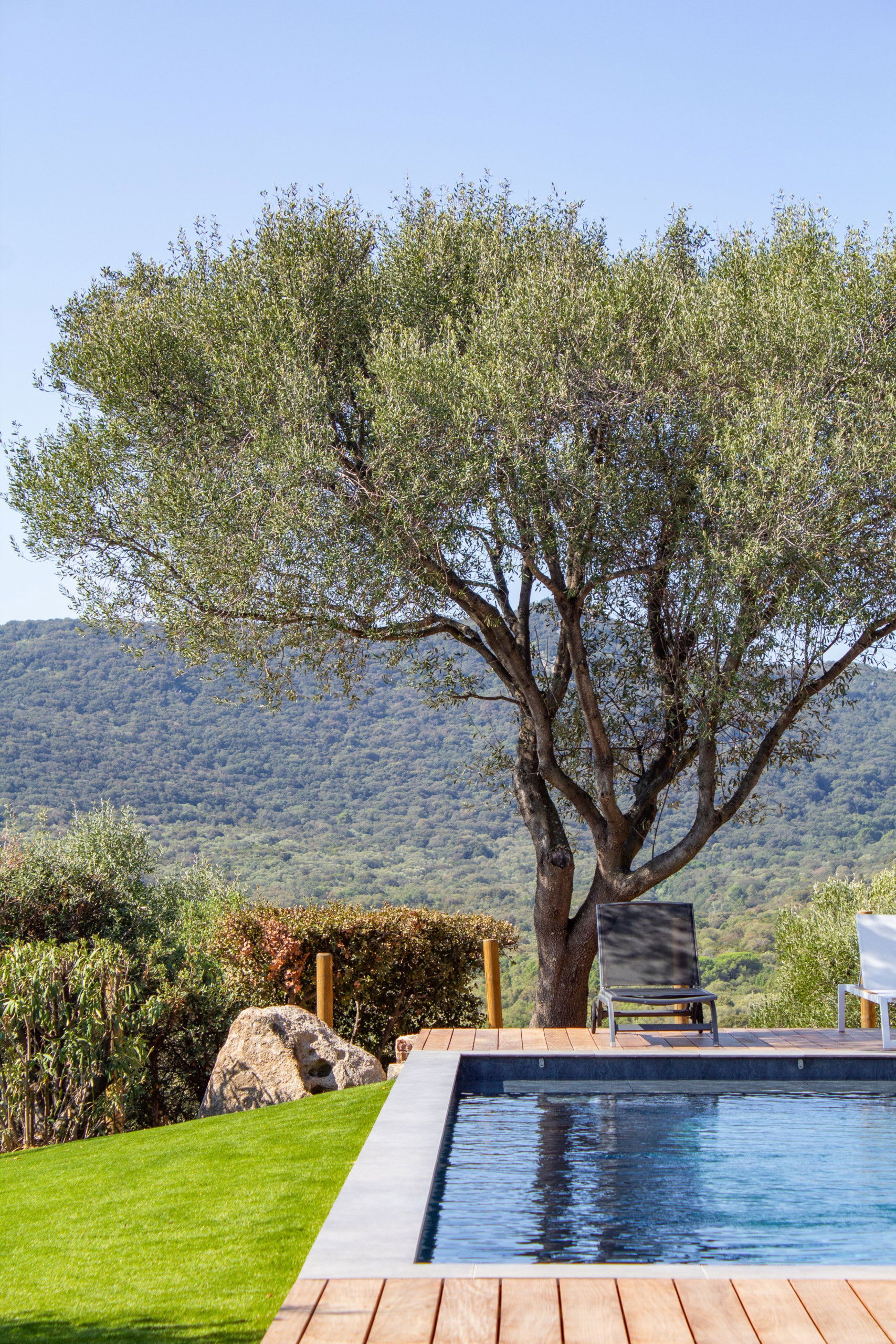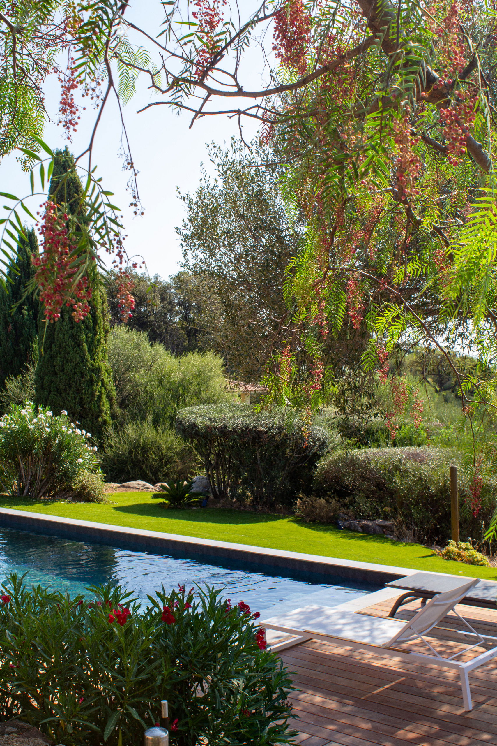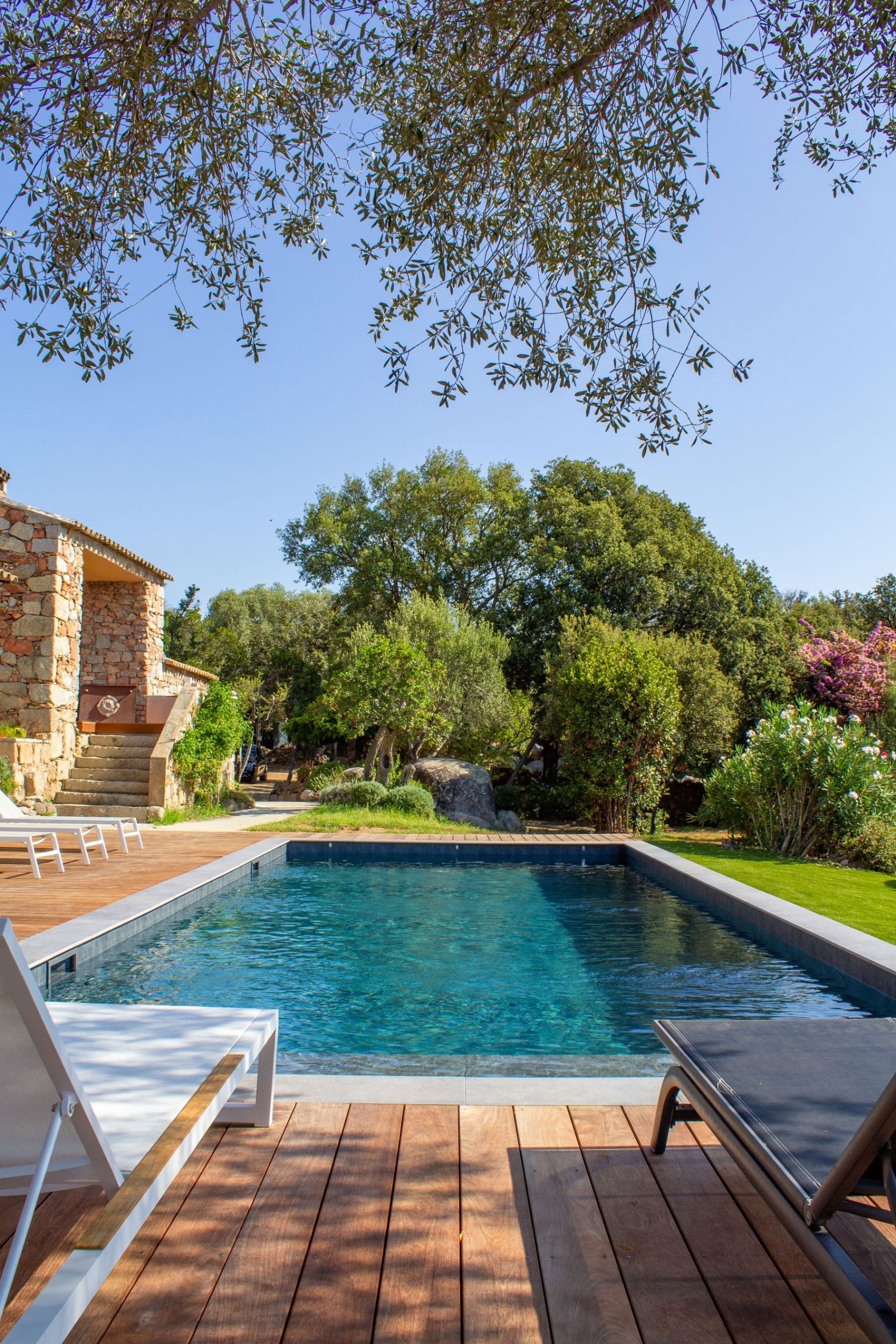 - La villa possède un joli jardin naturel et un espace terrasse avec piscine. La piscine mesure 10*4 et est chauffée en avant et après saison. La piscine est sécurisée avec un volet roulant.