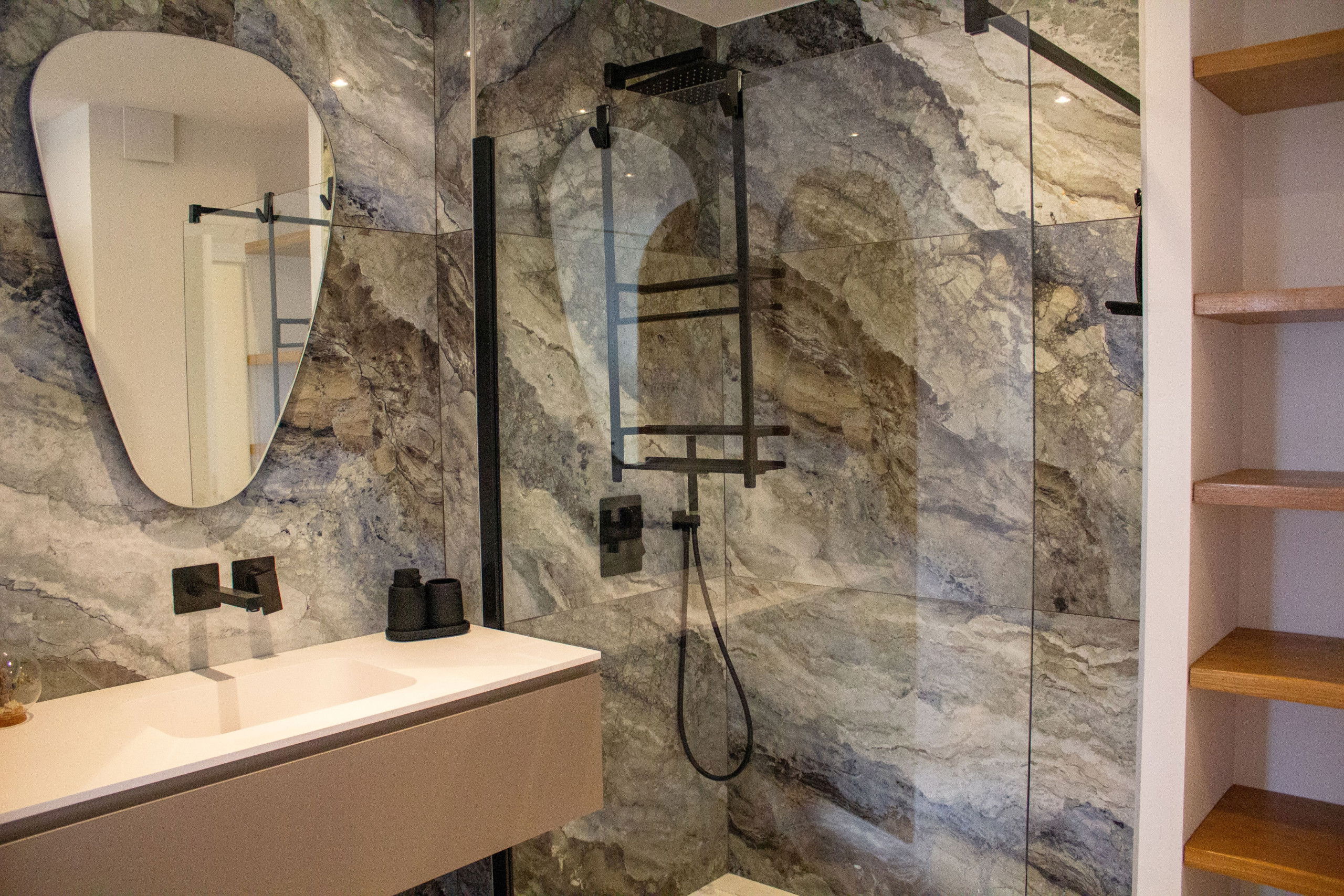 - Chambre 2 : Un lit 160/200 avec douche, vasque, bureau et rangement - Accès terrasse et vue mer