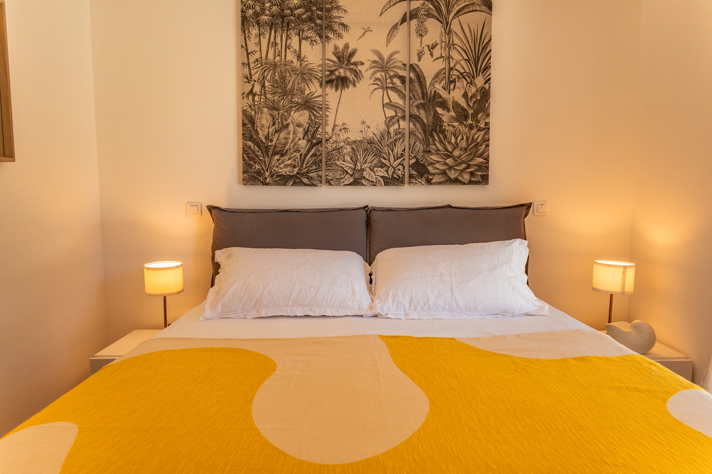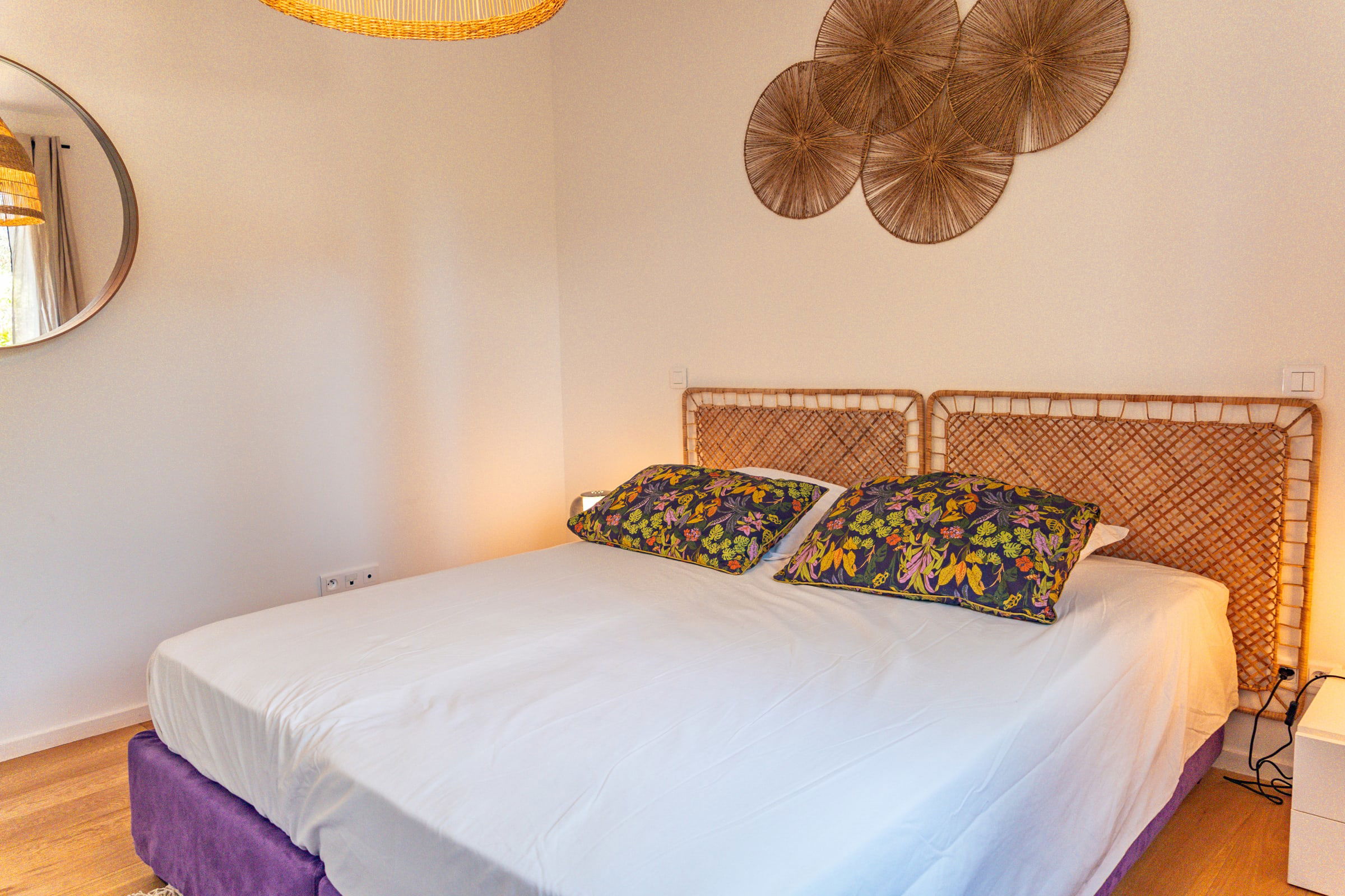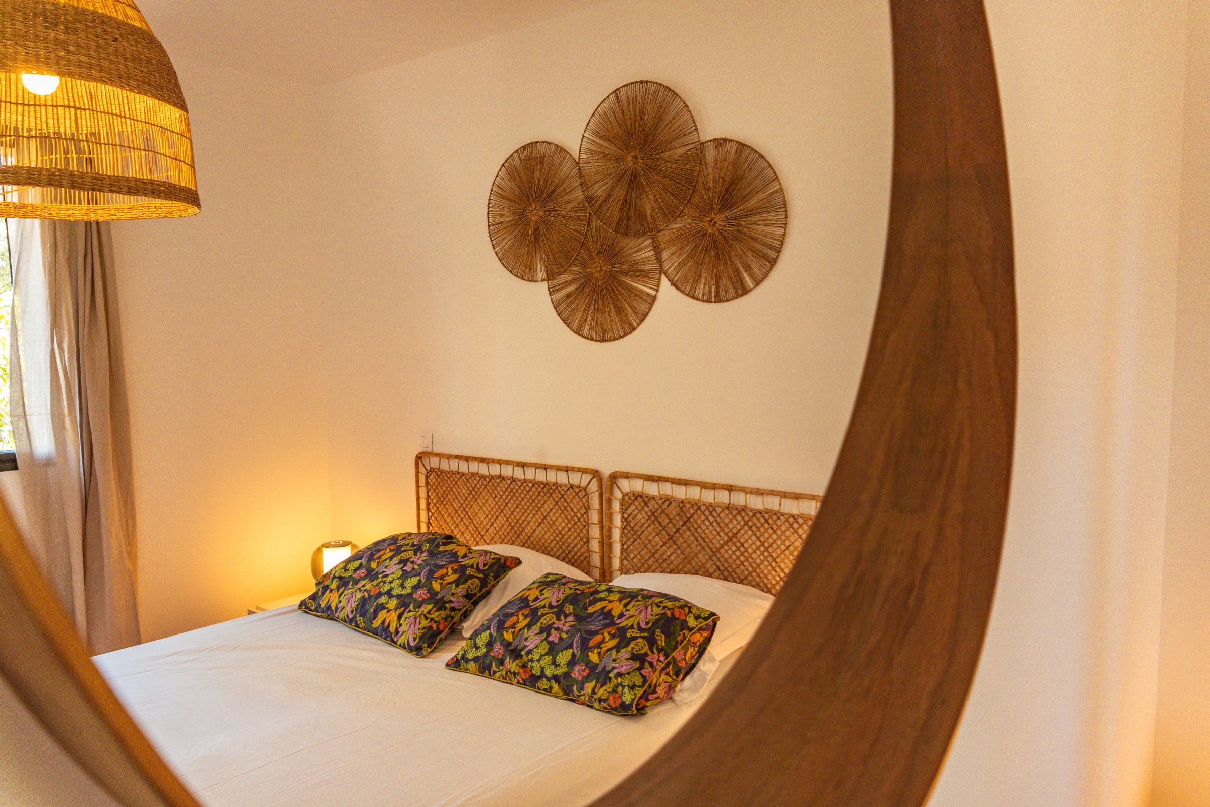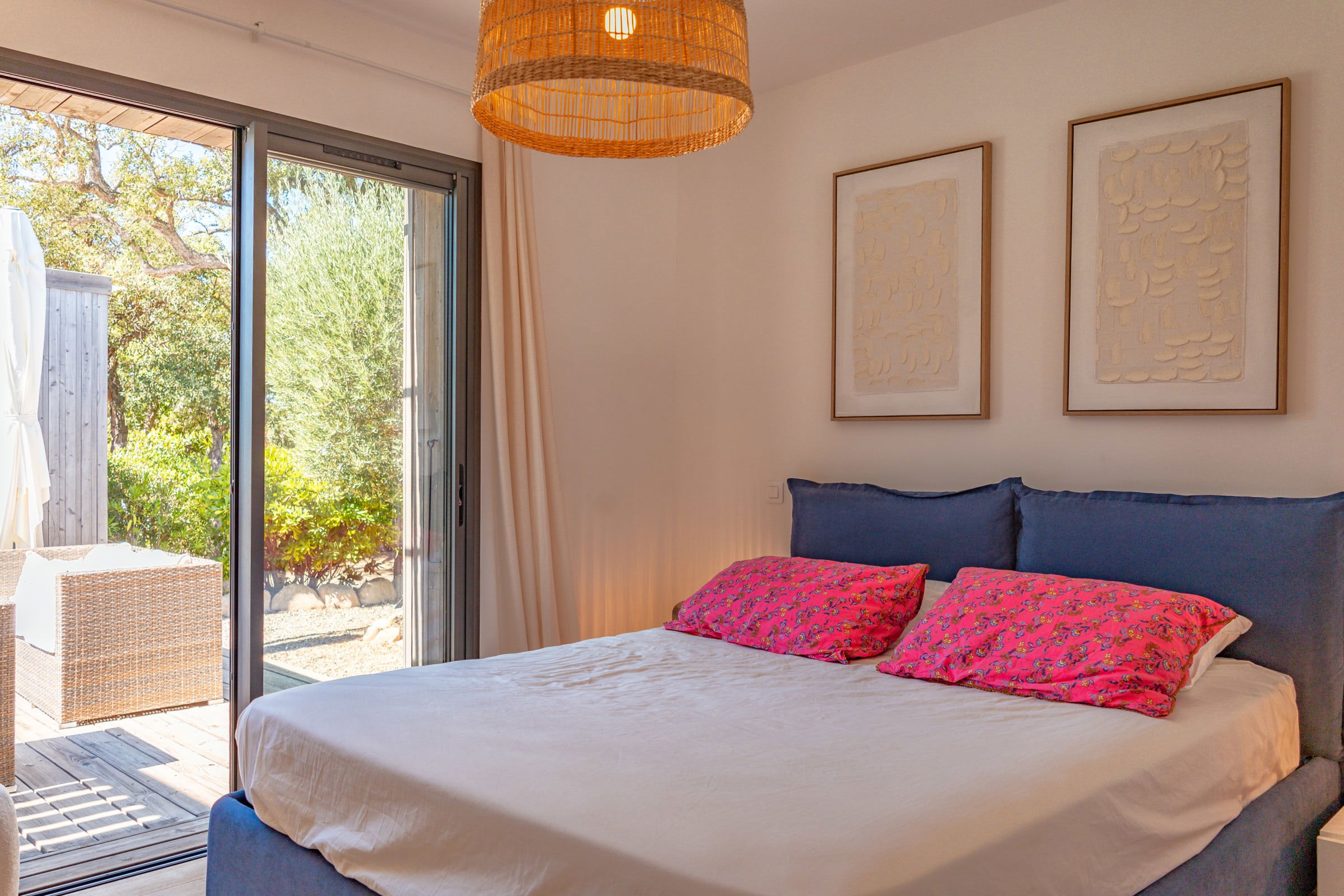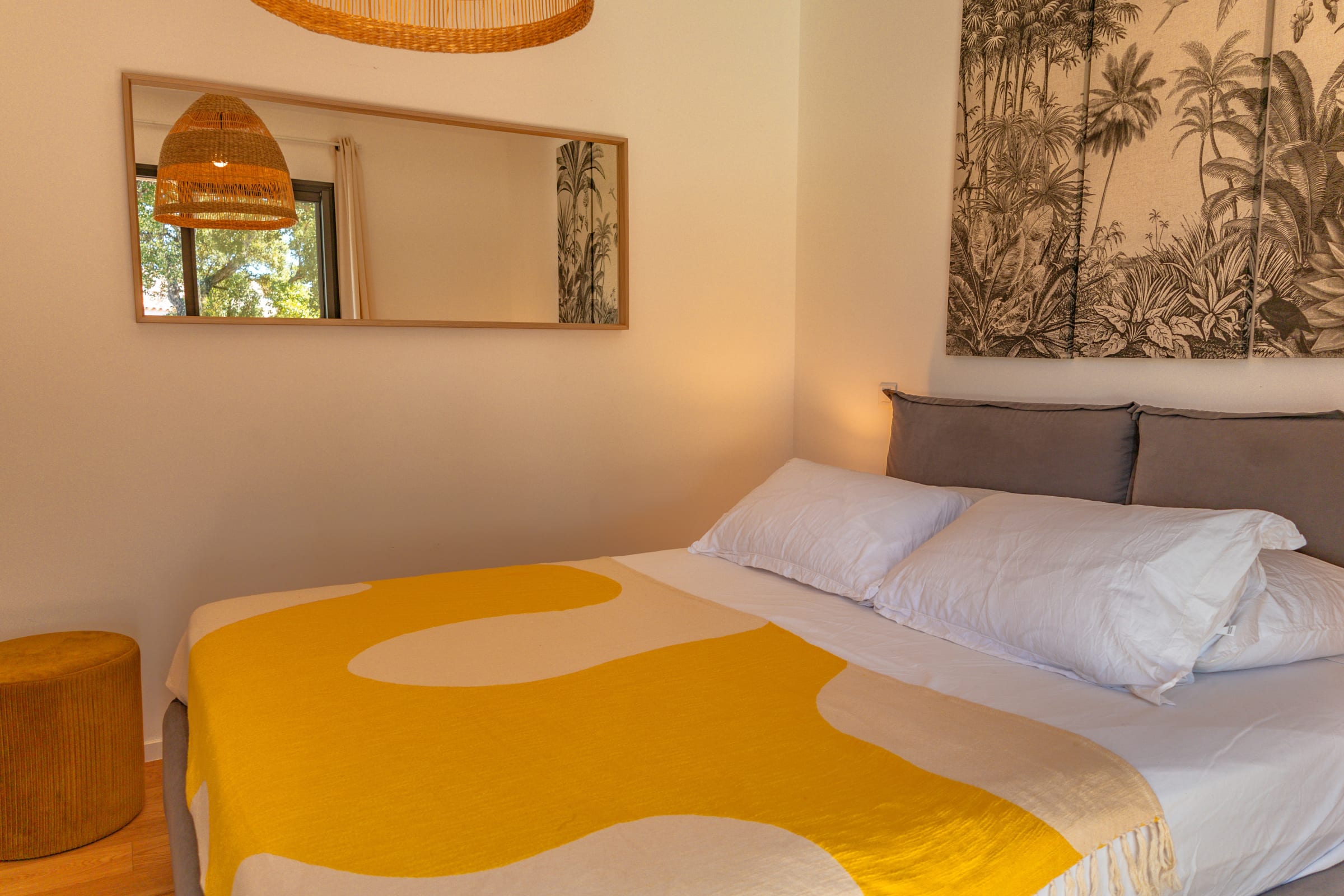 • Chambre 1 : Lit Queen Size (160x200), accès terrasse et piscine, placard intégré.