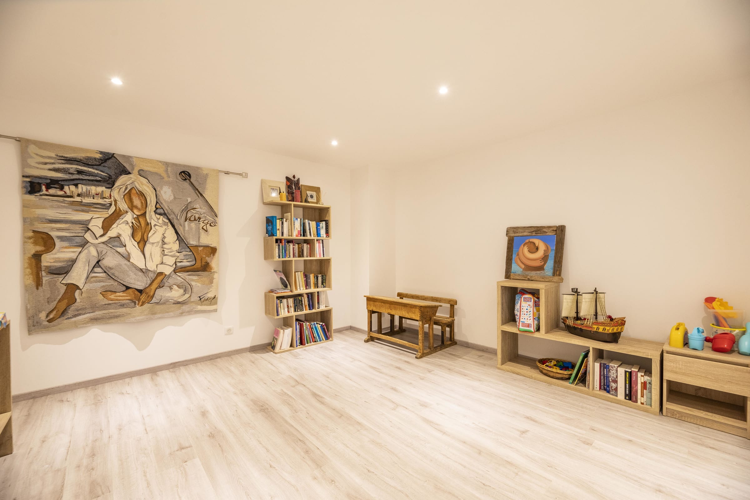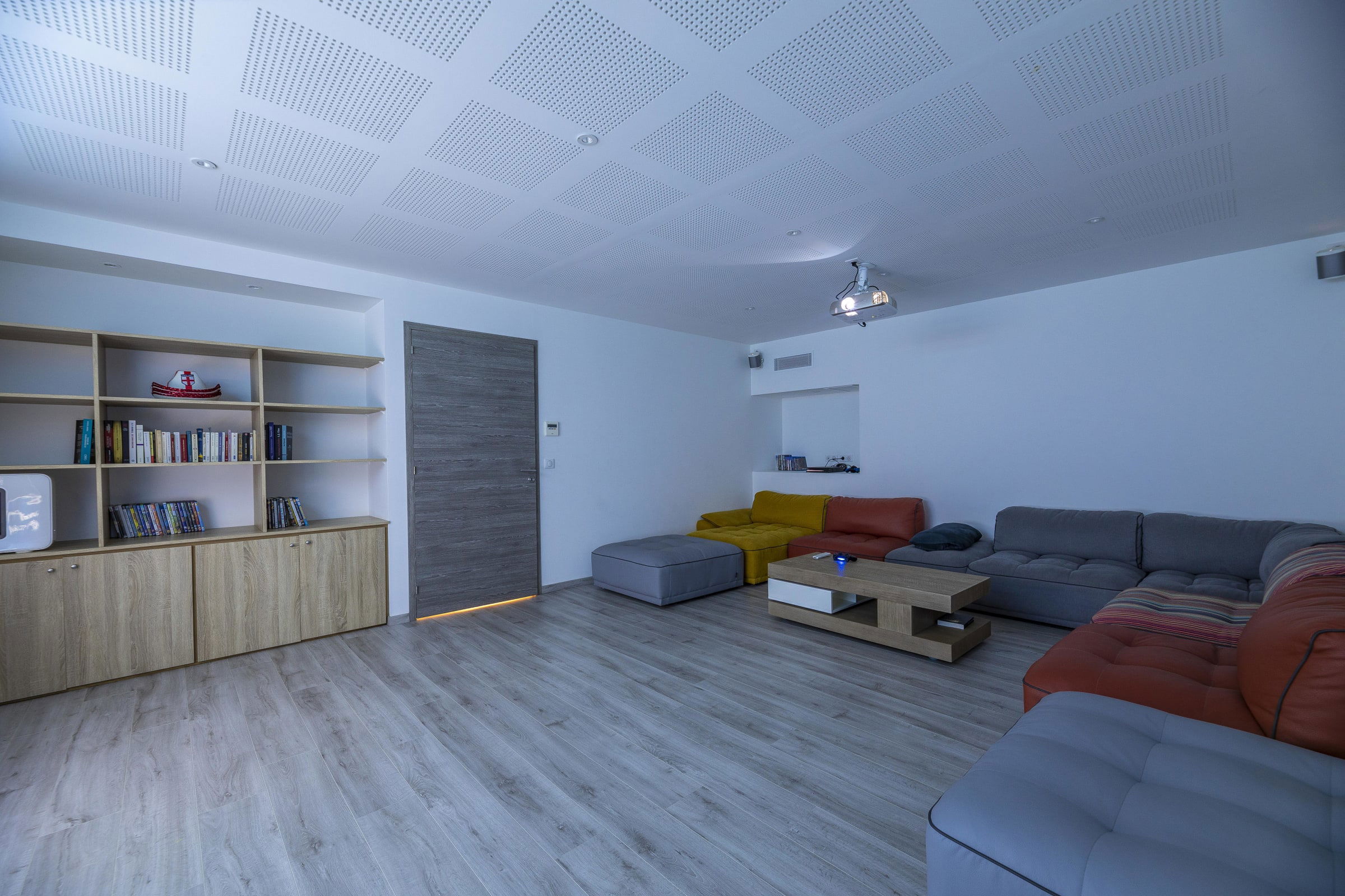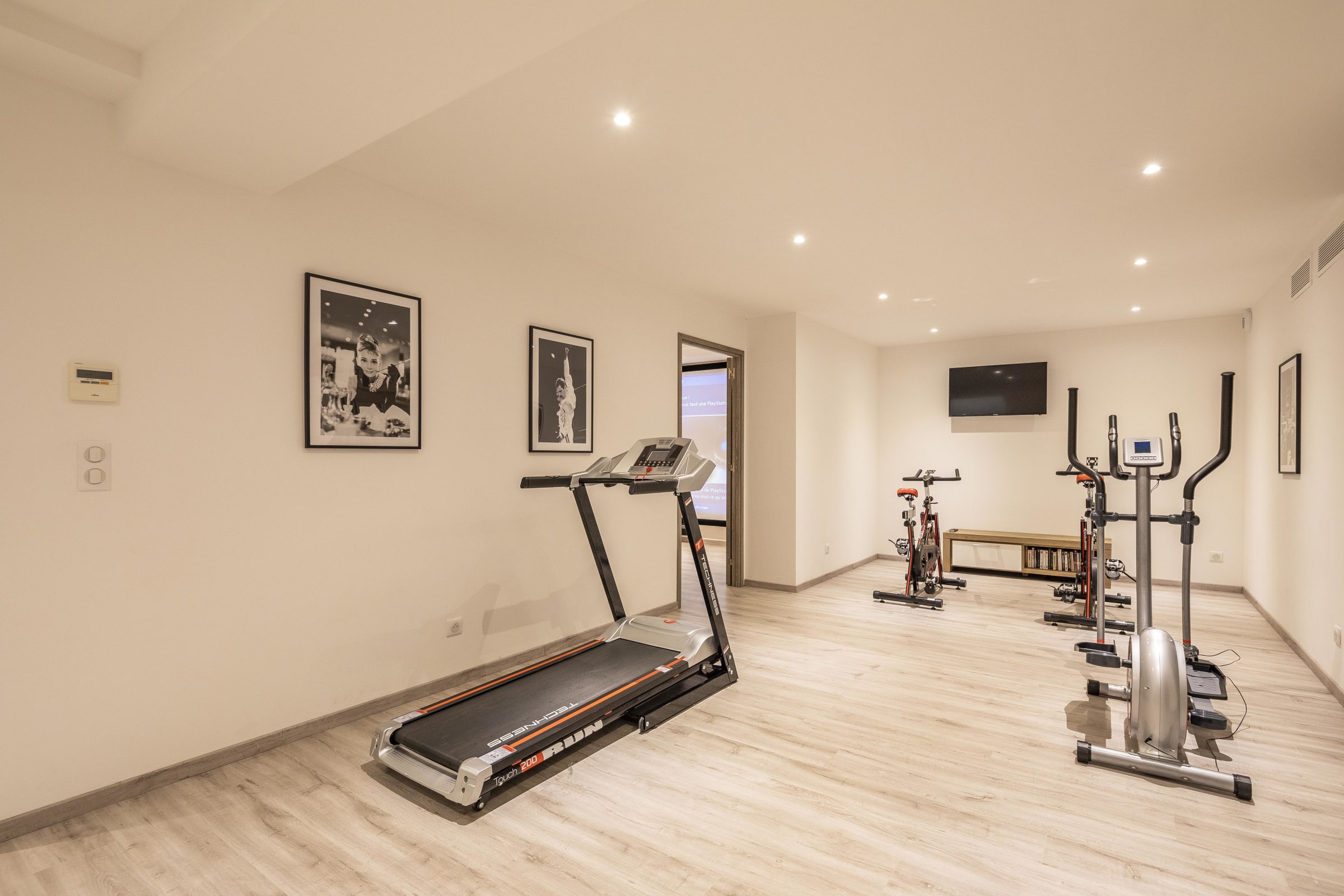 Au sous-sol, vous y trouverez un lieu de détente avec une salle de jeux, une salle cinéma et une salle de sport.