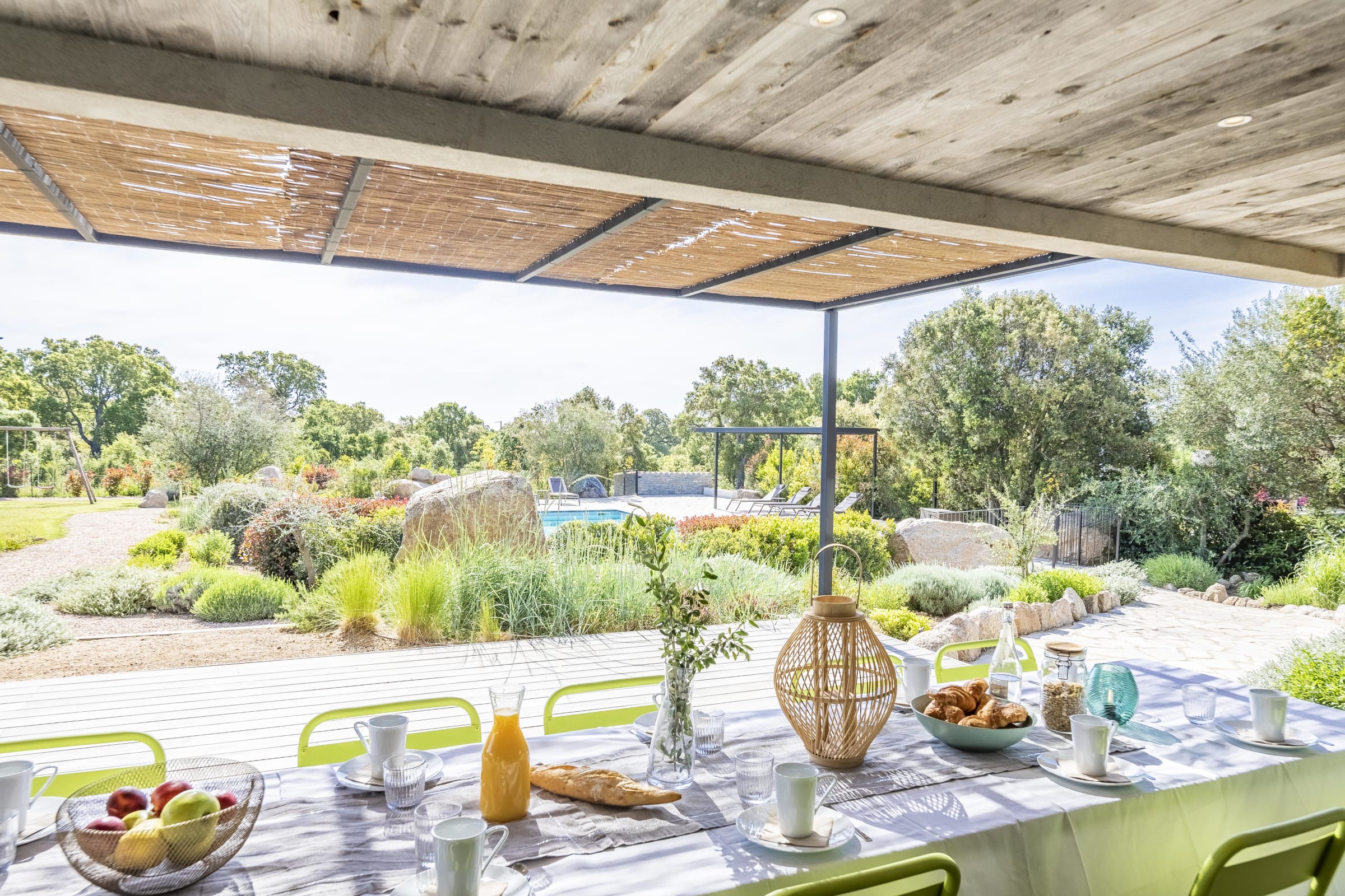 Sur la terrasse en bois offrant une vue sur la piscine, vous retrouverez un barbecue/plancha à gaz.
