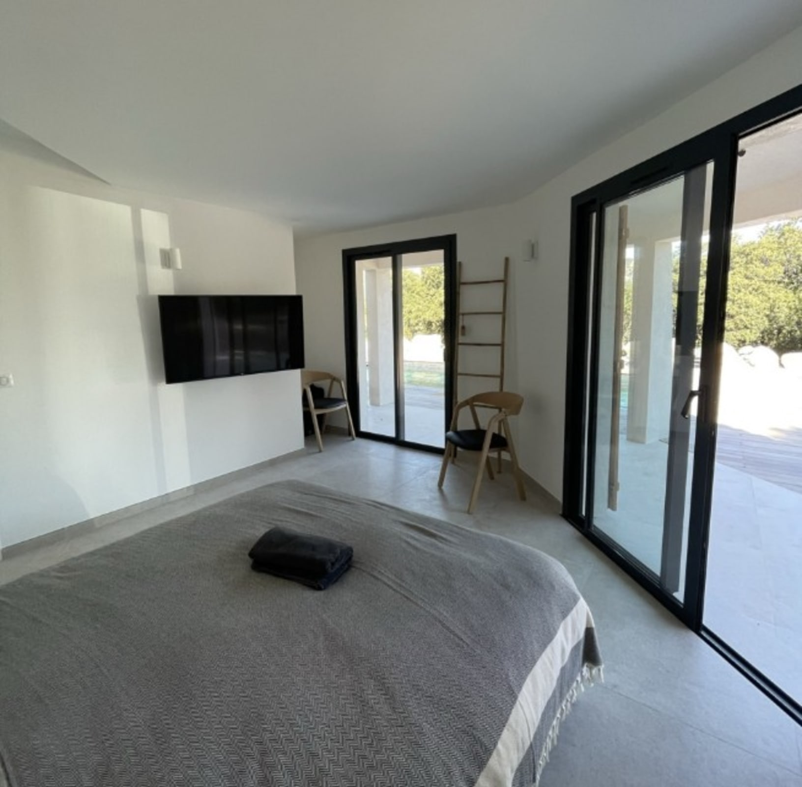 Chambre 5 : lit Queen Size (160x200) – accès terrasse piscine