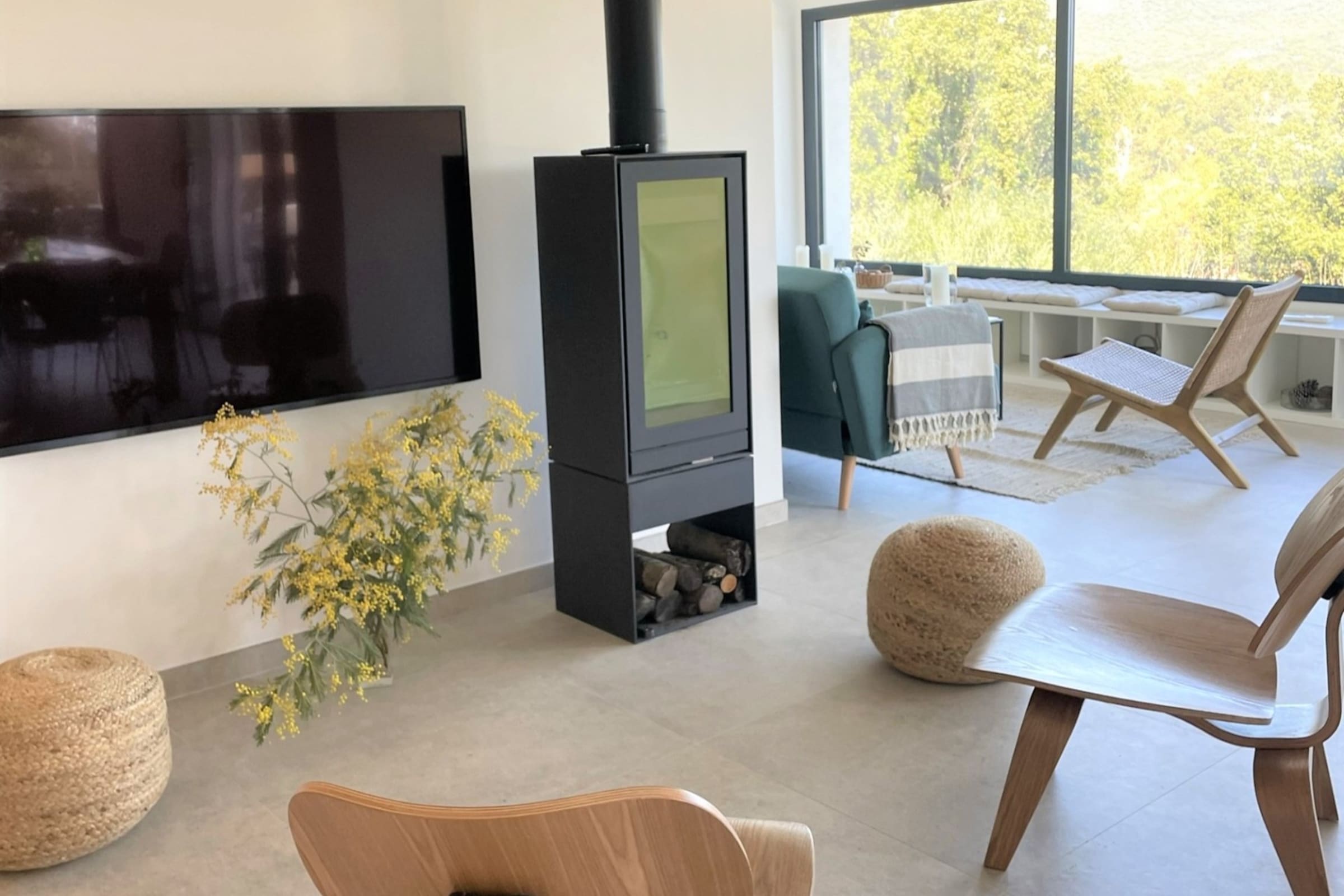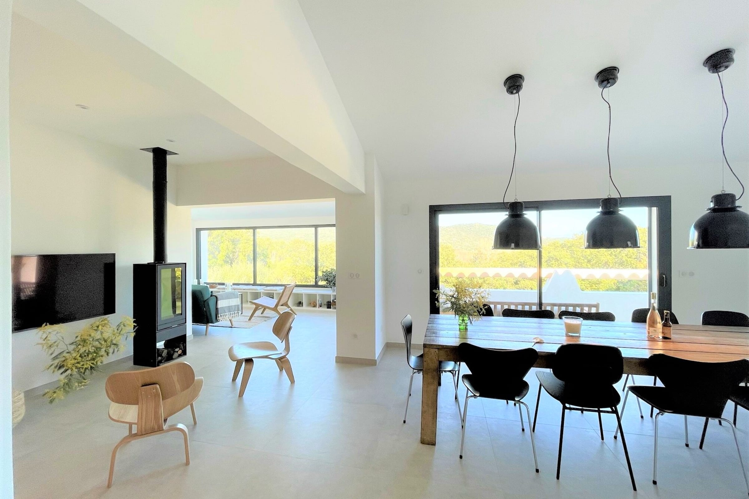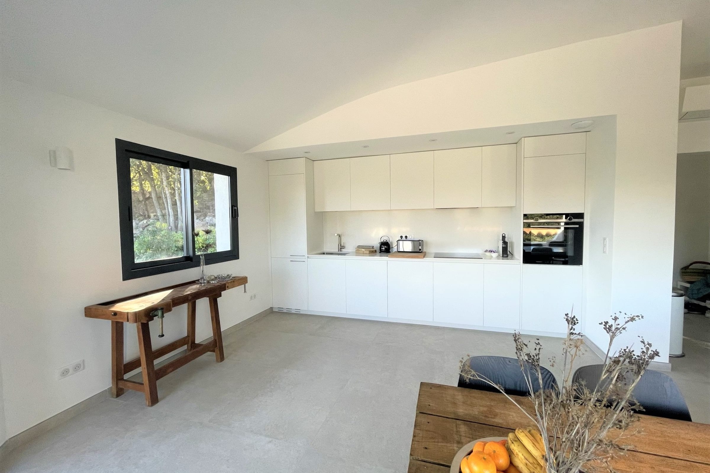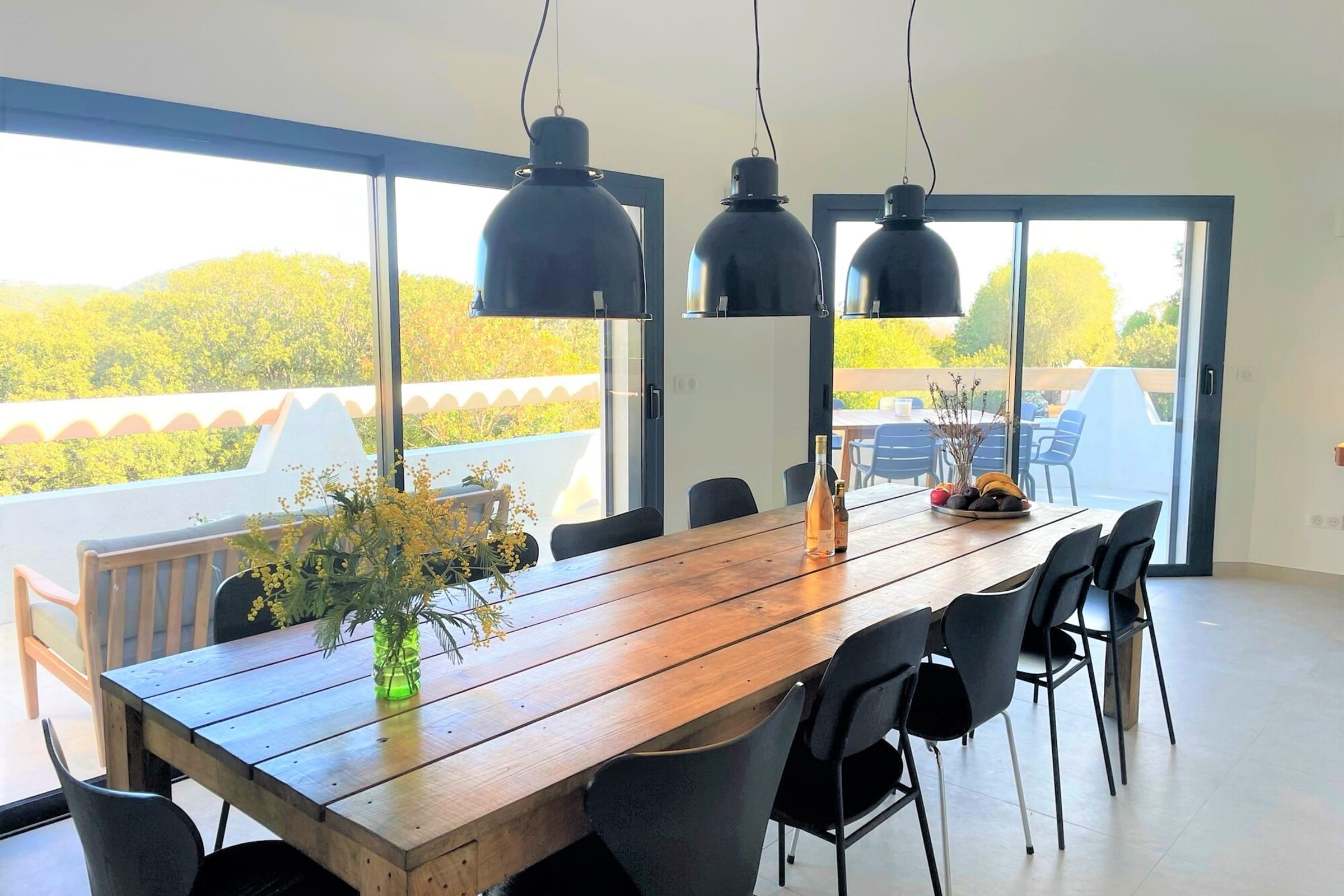 Villa entièrement rénovée (193 m2) avec un bel espace de vie organisé autour d’une grande table familiale, lumineux et ouvert sur une terrasse entièrement aménagée avec salon d’été, table extérieur et coin repas avec plancha. Le salon offre une vue contemplative sur les montagnes et maquis. Cuisine américaine entièrement équipée.