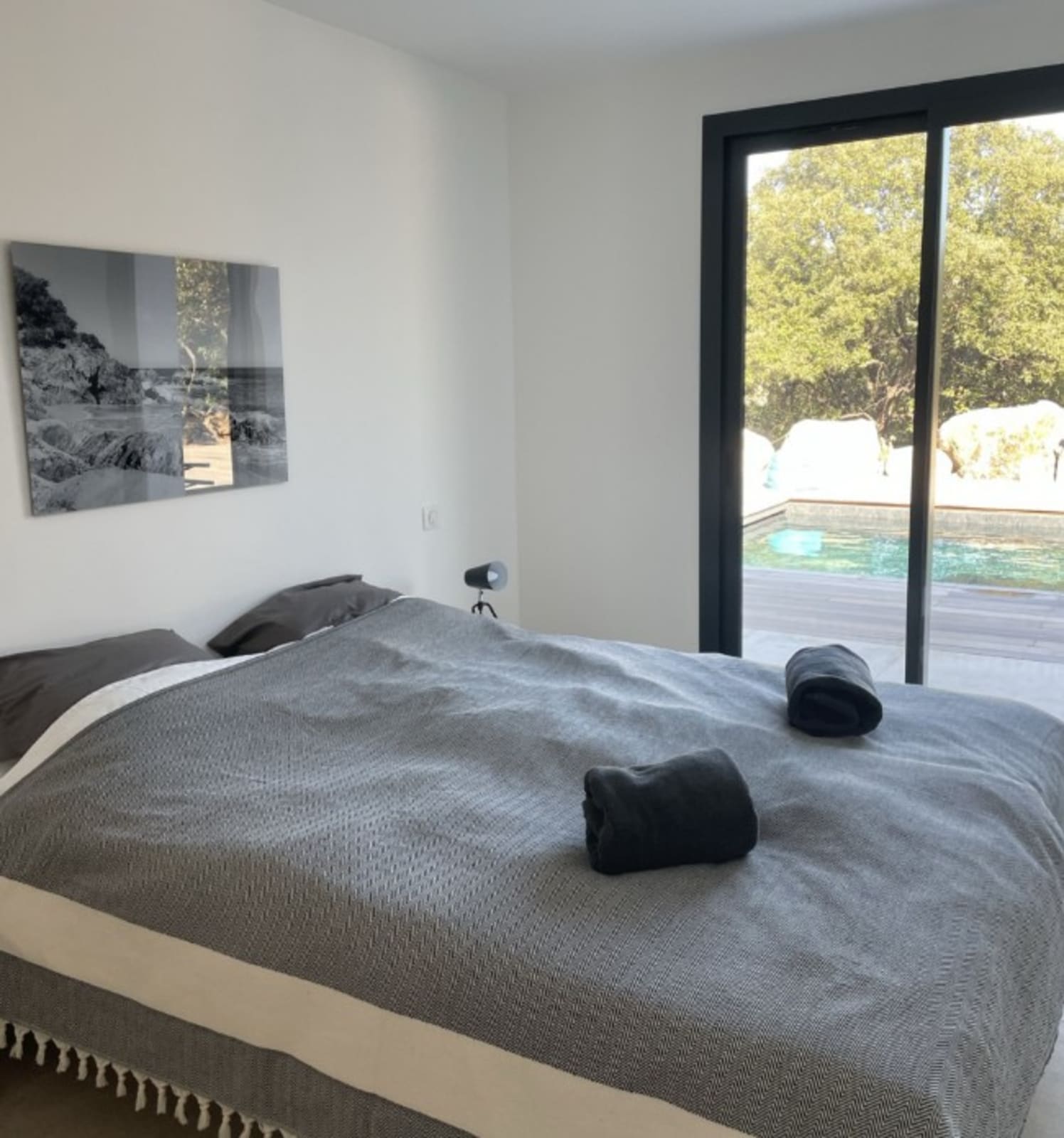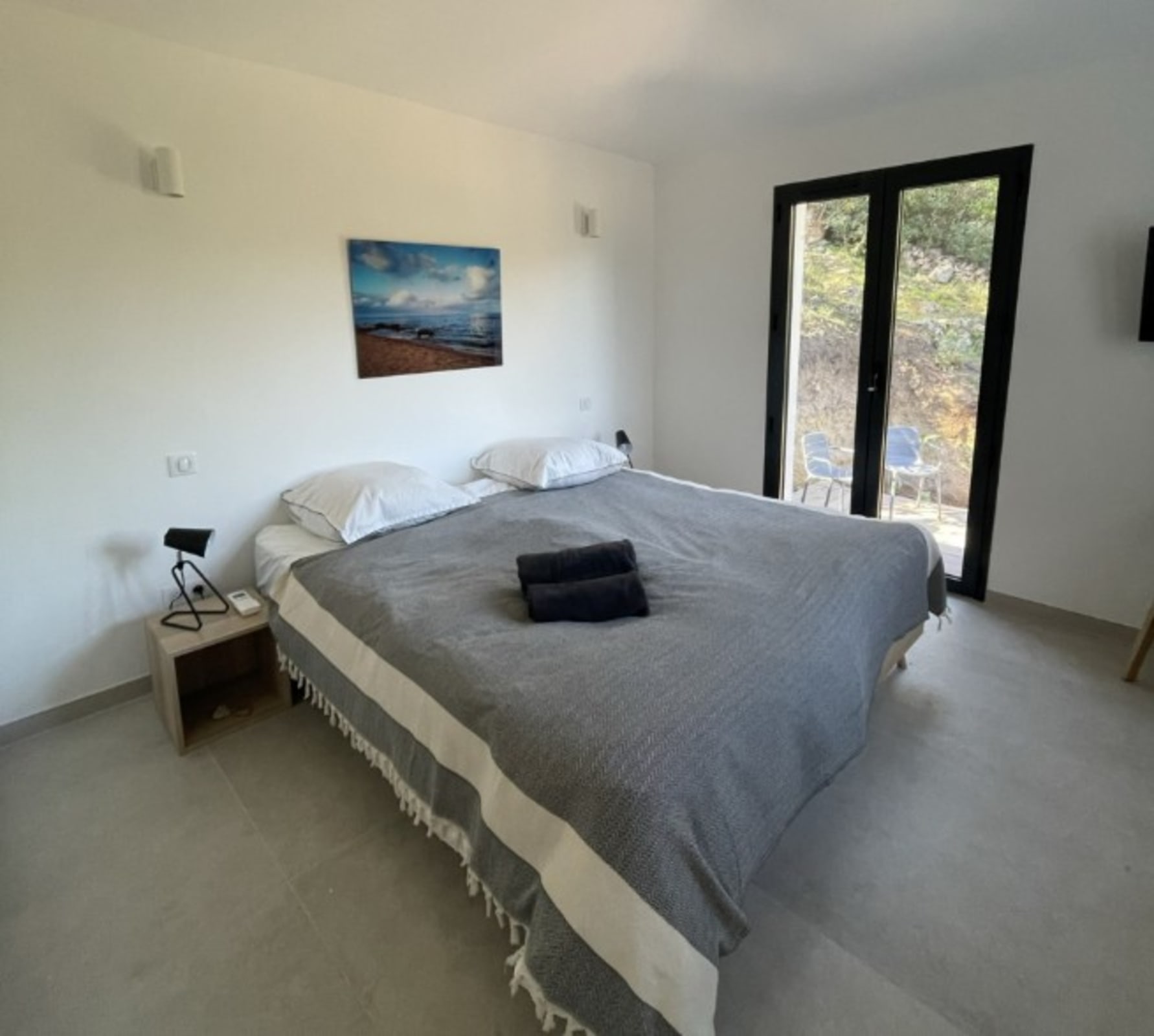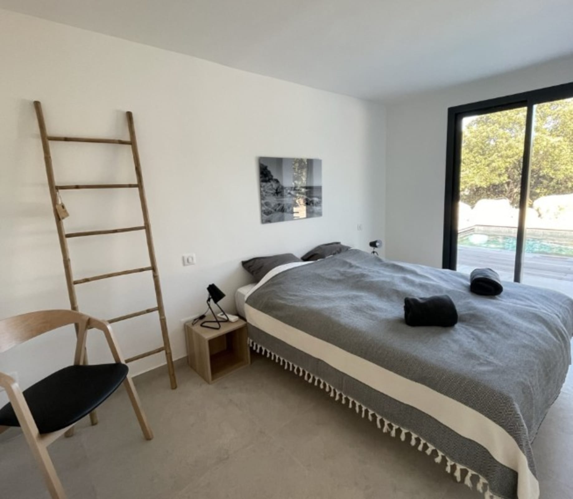 Chambre 4 : lit Queen Size (160x200) – accès terrasse piscine
