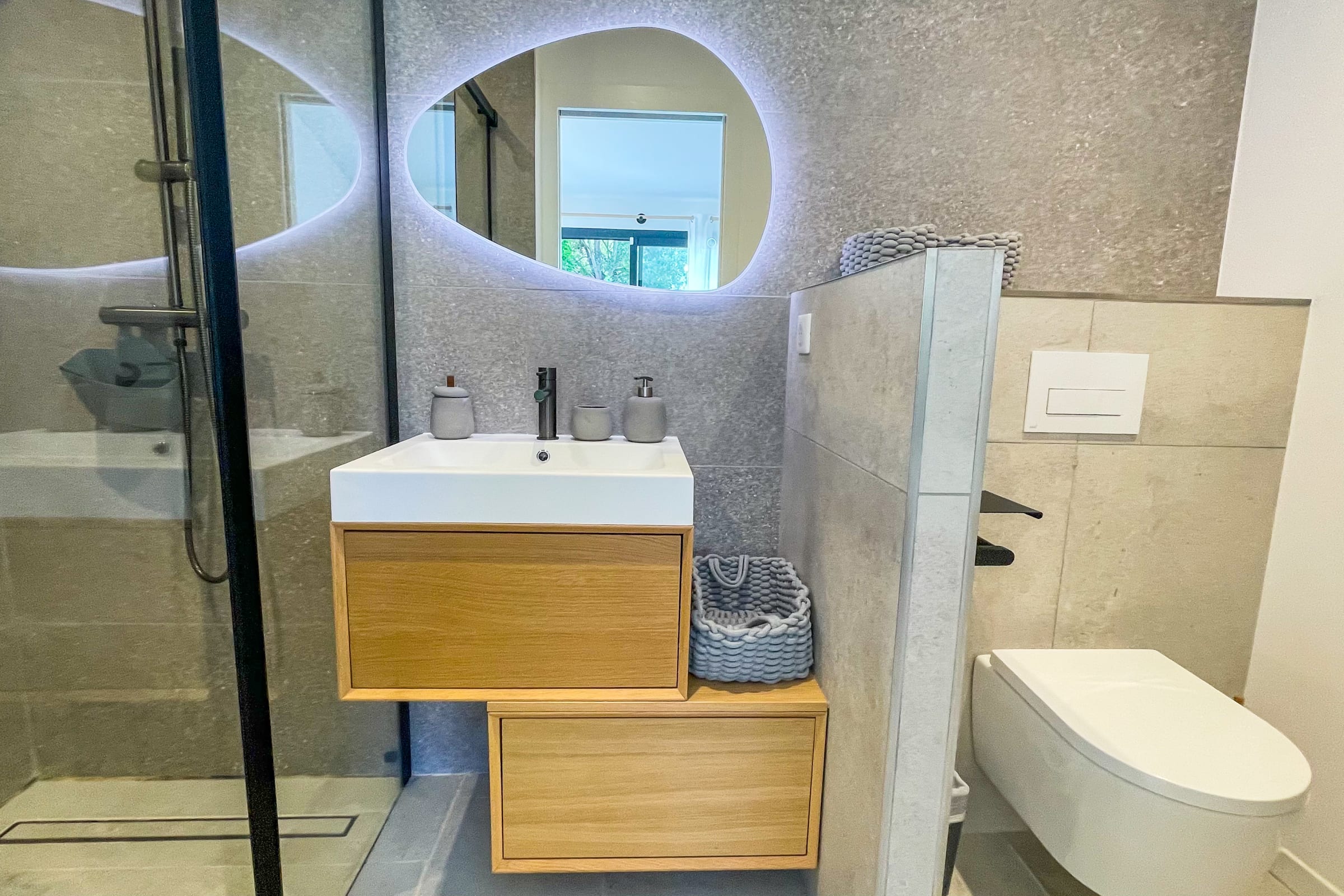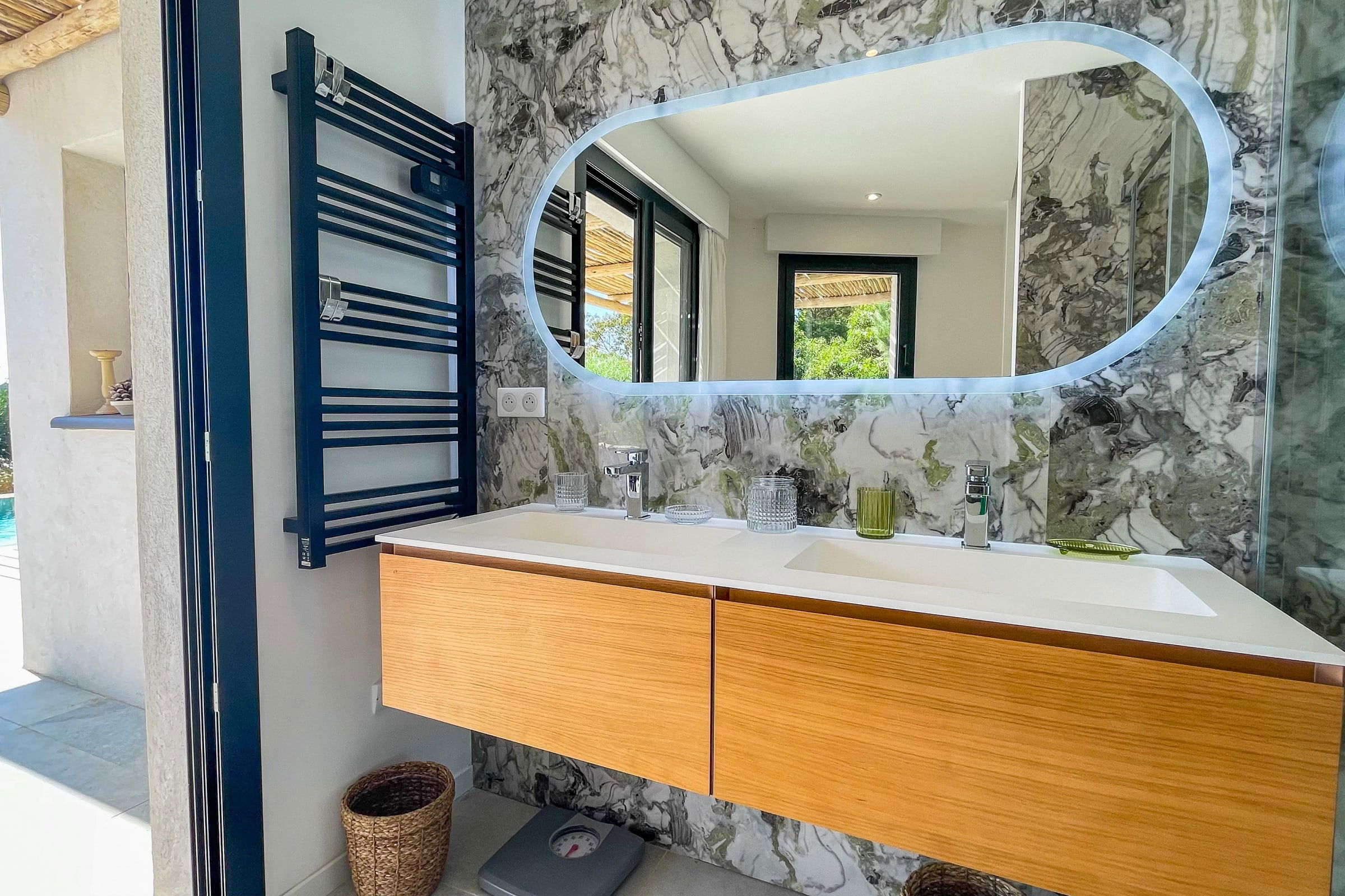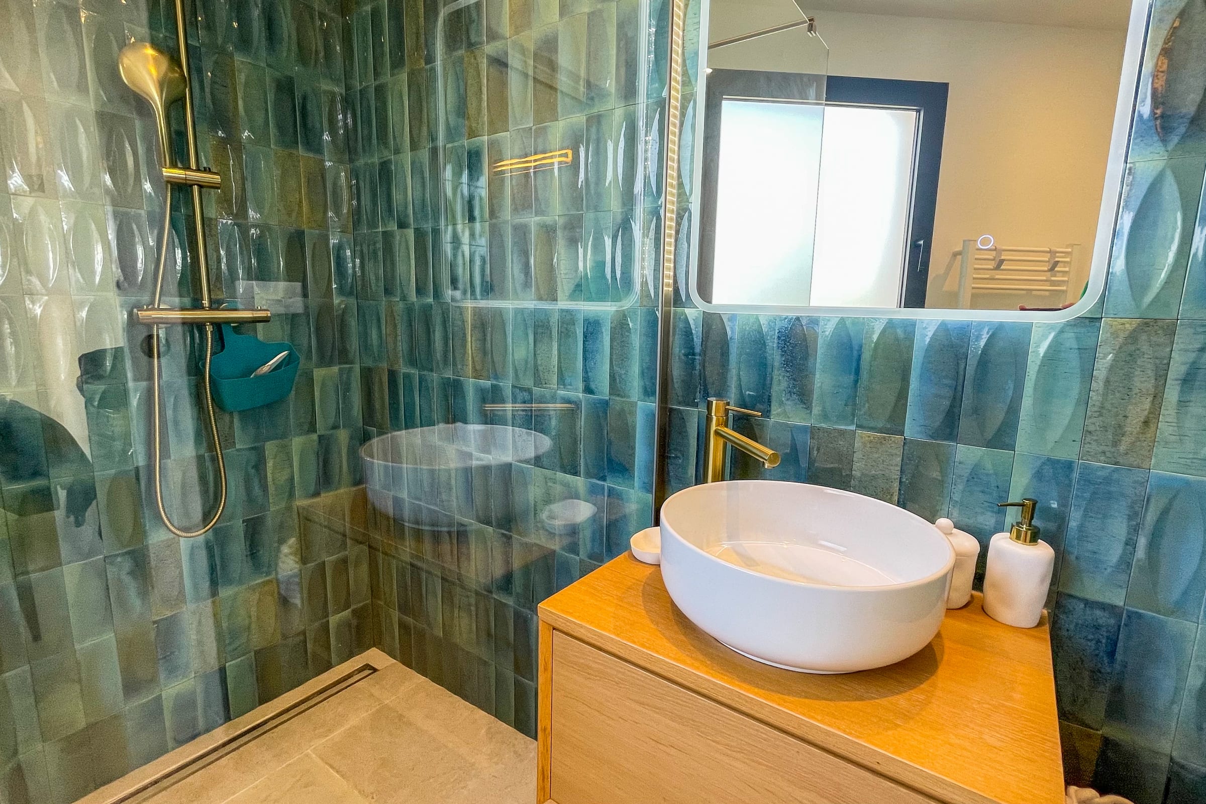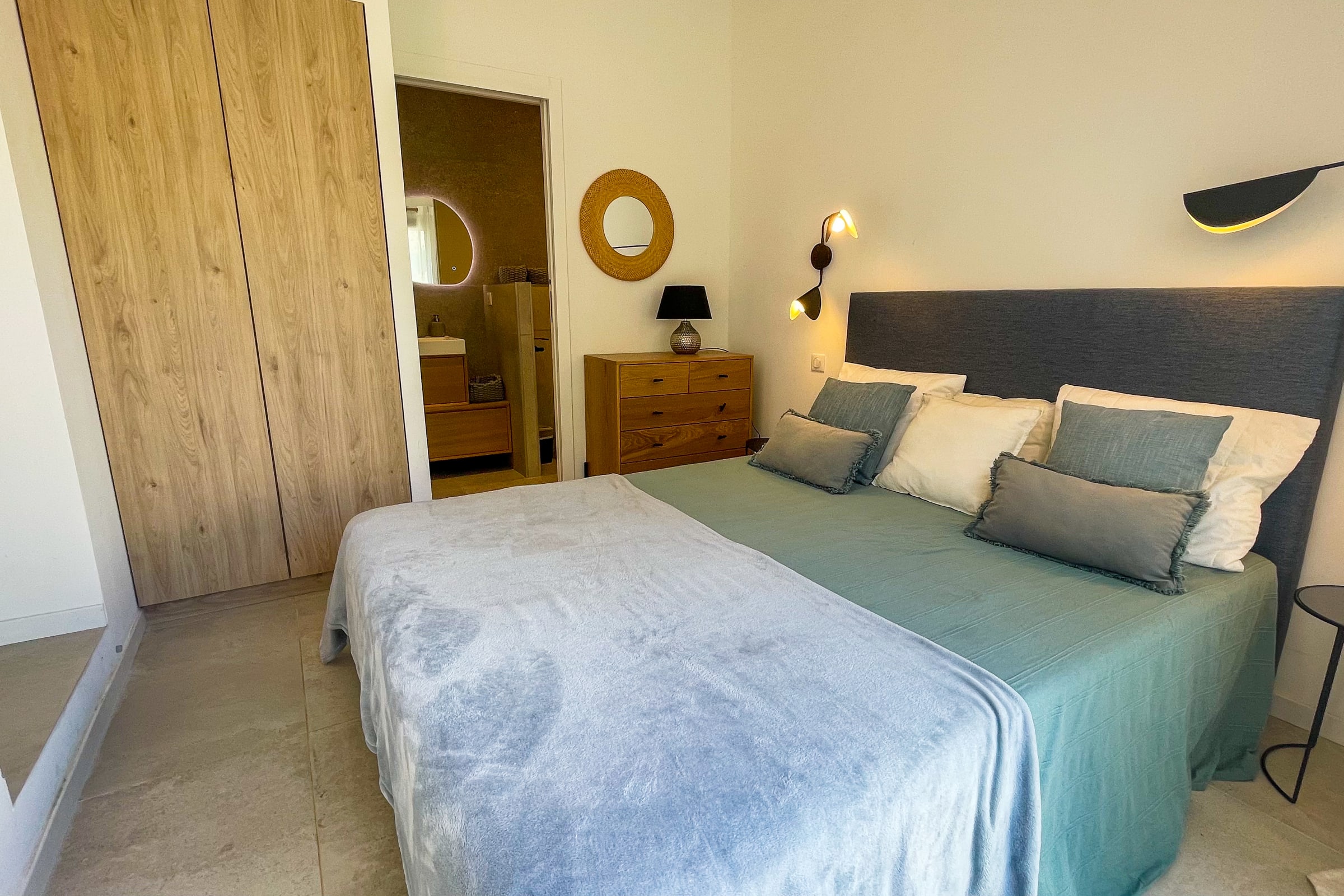 • Suite parentale avec lit de 180x200 (modulable en 2 lits de 90x200), salle de bain privée et vue sur la mer depuis la terrasse.