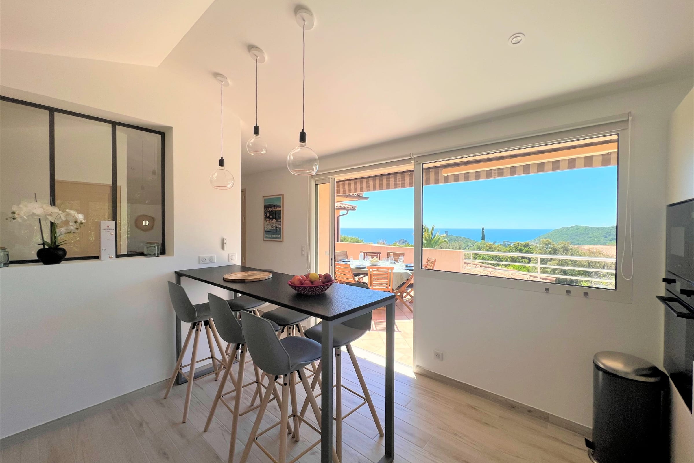 - Un salon/salle à manger avec une belle vue mer et vue sur la tour génoise de Fautea.