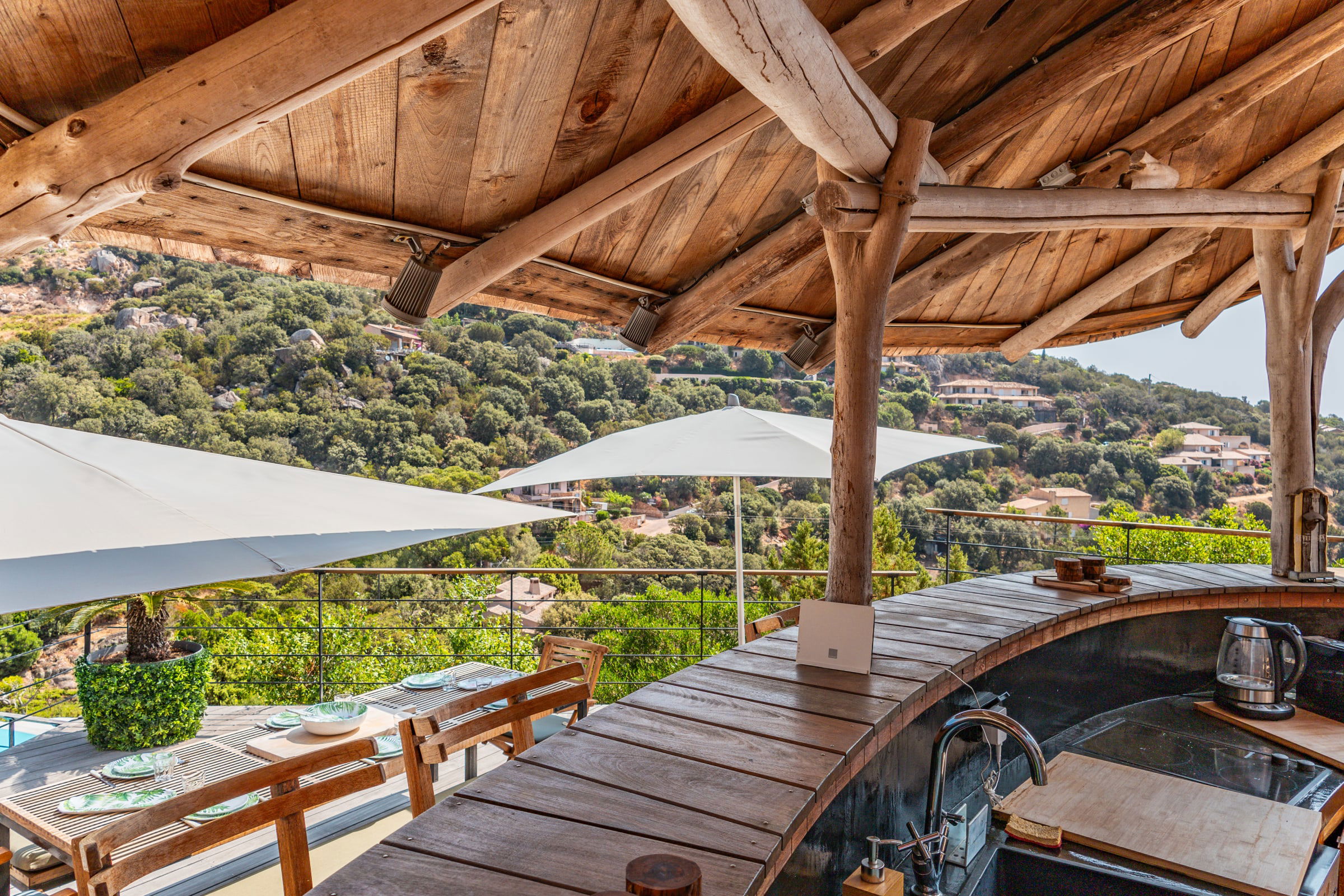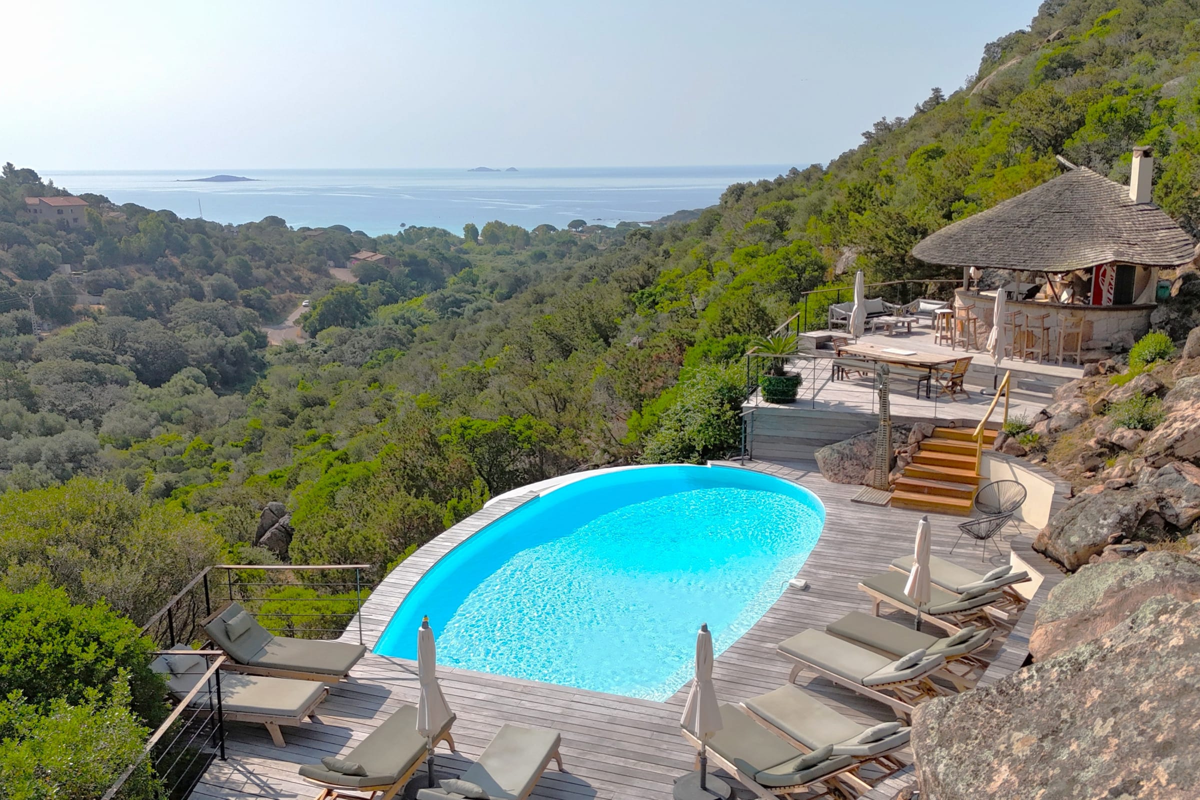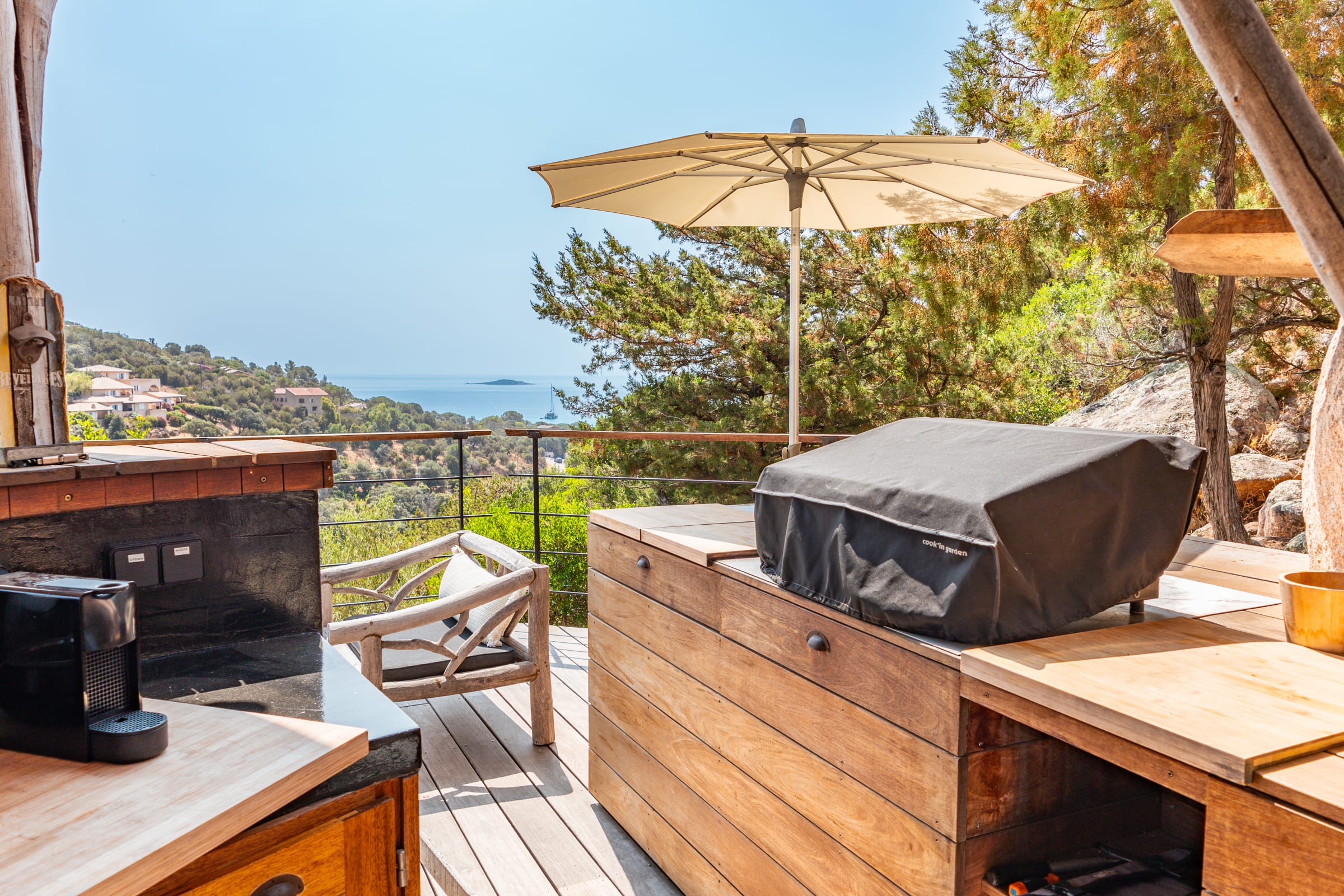- Superbe pool house avec cuisine d’été et vue mer (machine a glaçons, frigo, lave-vaisselle, barbecue/plancha, distributeur a bière, plaque de cuisson, etc.)