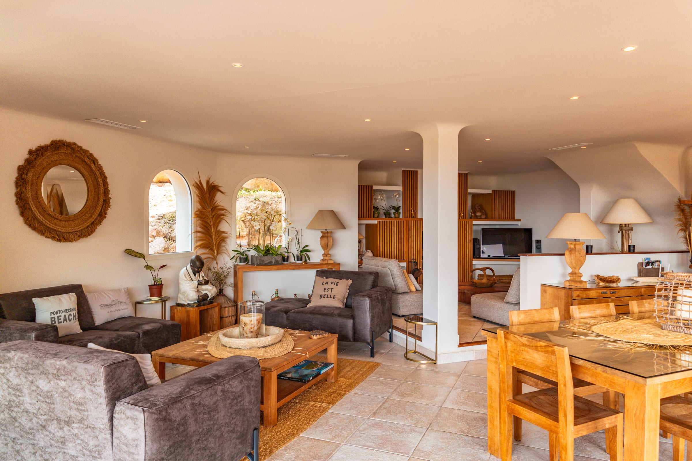 La villa est organisée de telle façon à ce que chaque pièce soit spacieuse, lumineuse et confortable pour une intimité et un bien-être parfait.