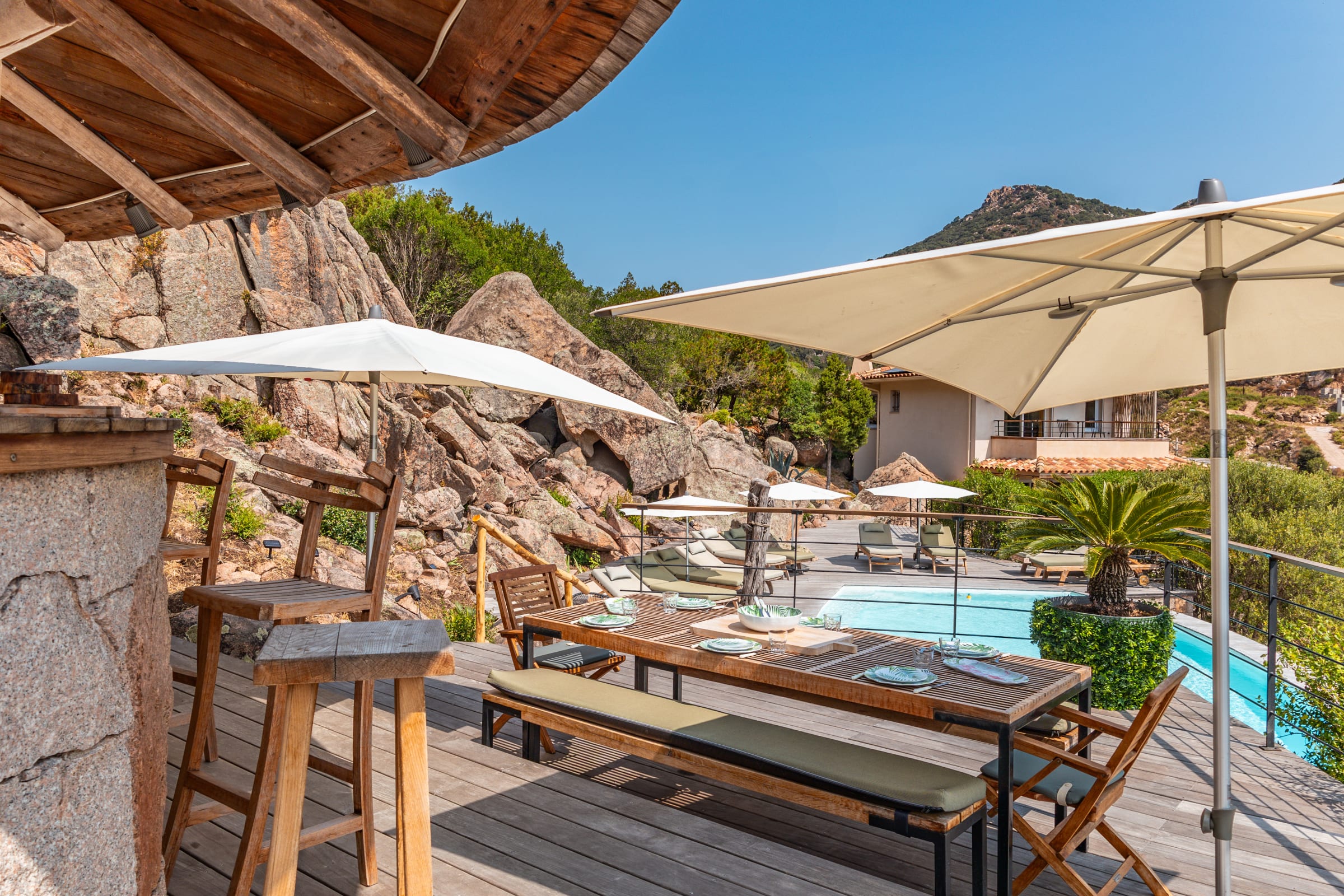 - Pool house tout équipé (machine a glaçons, frigo, lave-vaisselle, barbecue/plancha, distributeur a bière, plaque de cuisson, etc.)