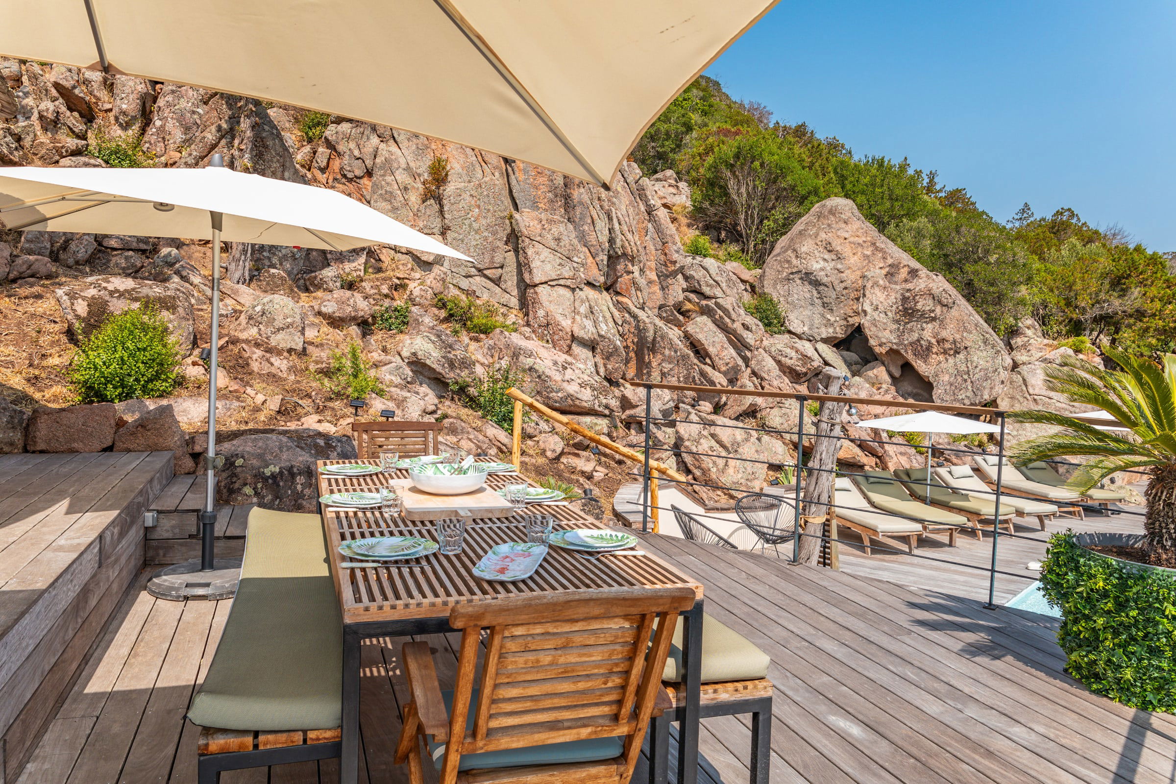 La plage est accessible à pied, située à 750m de la villa vous pouvez vous rendre à la plage de Palombaggia et vous restaurer au restaurant le Playa Baggia.