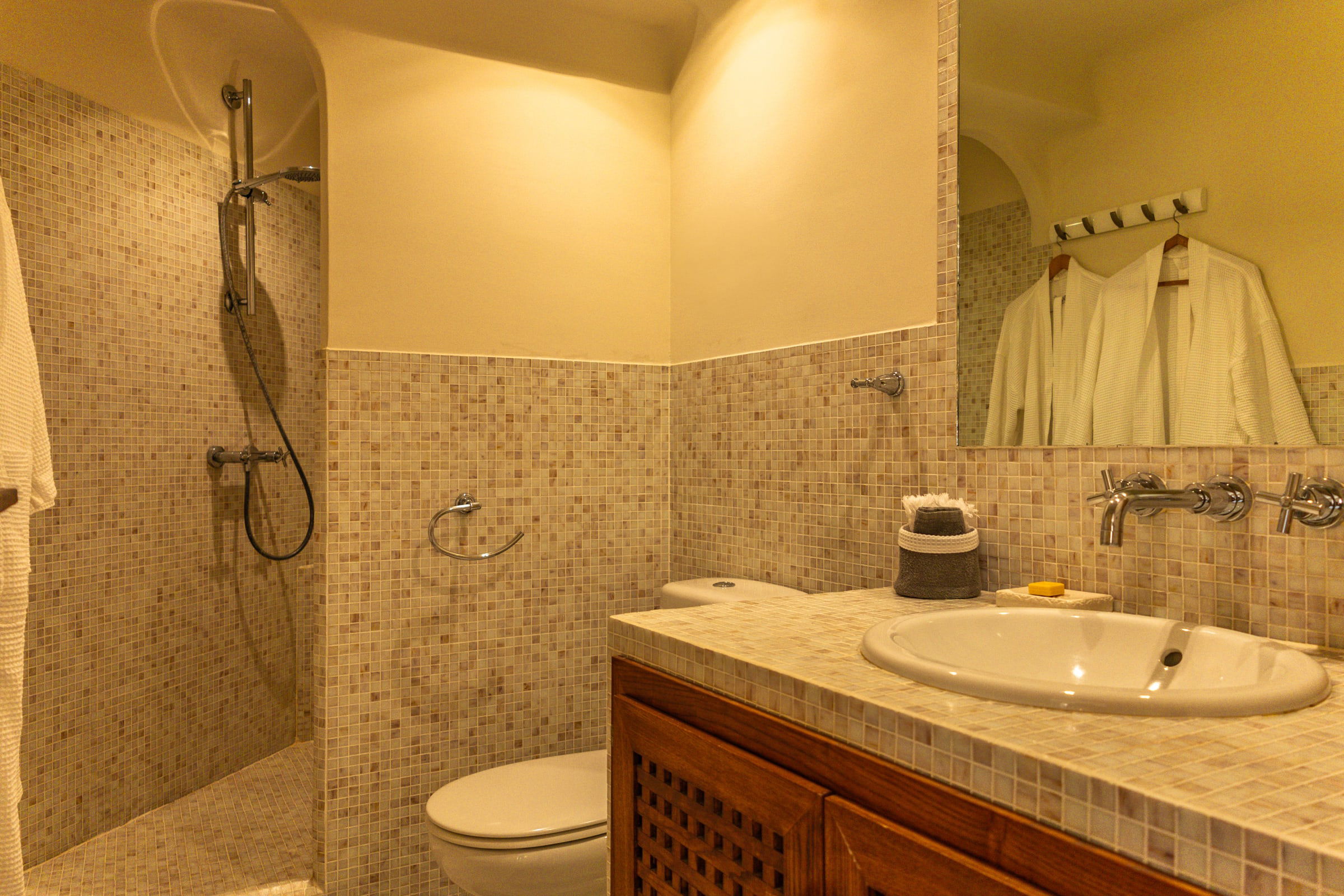 - Chambre 1 : Lit Queen Size 180 cm avec douche et WC.