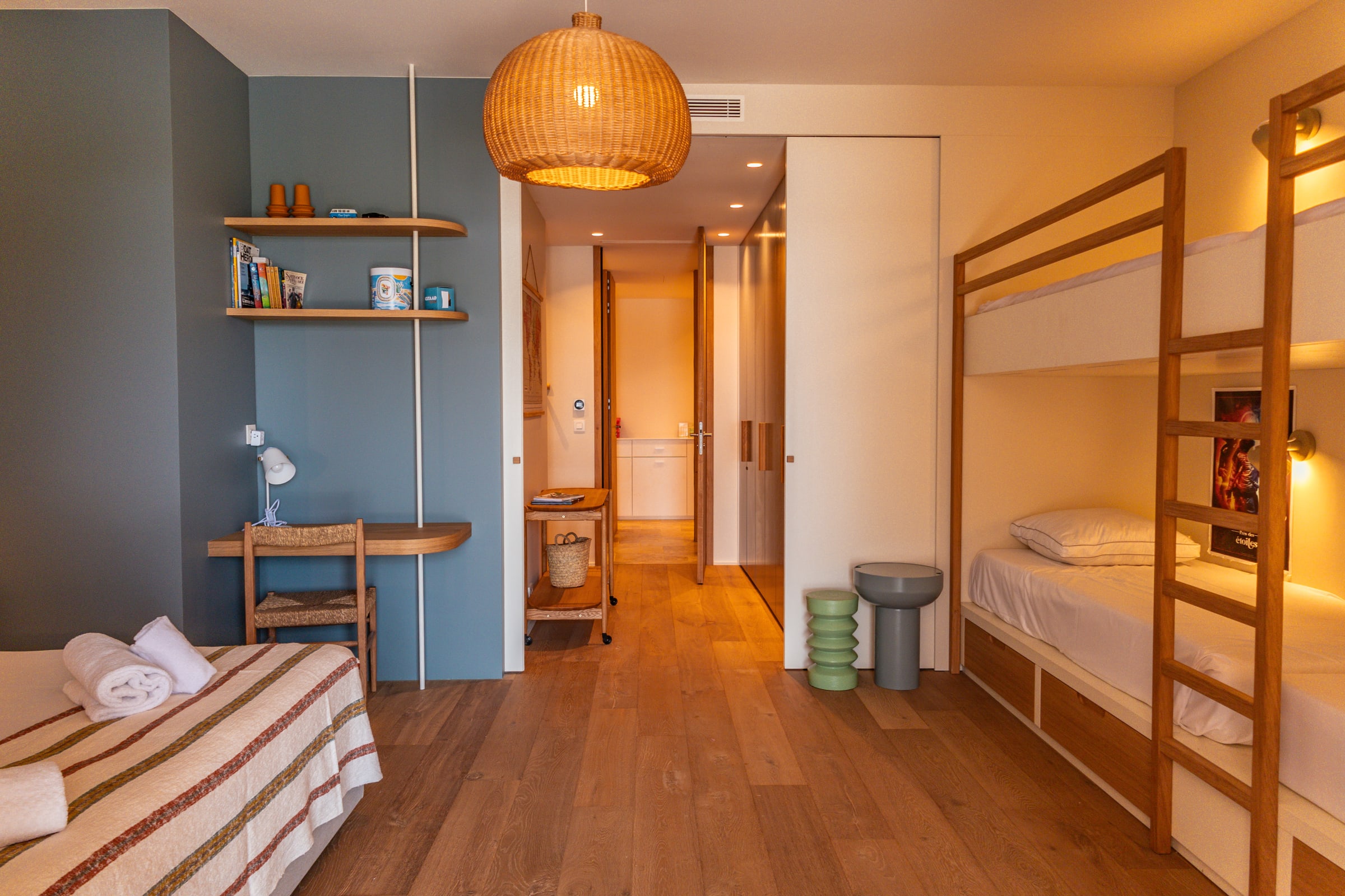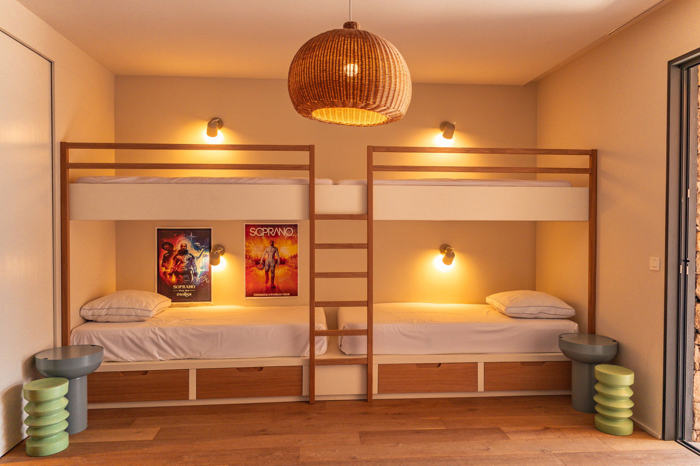 Chambre 5 : dortoir avec 6 lits simples 90x200, ( 2 lits superposé et 2 lits simple) parfait pour les enfants ou adolescents, avec salle de bain et toilette