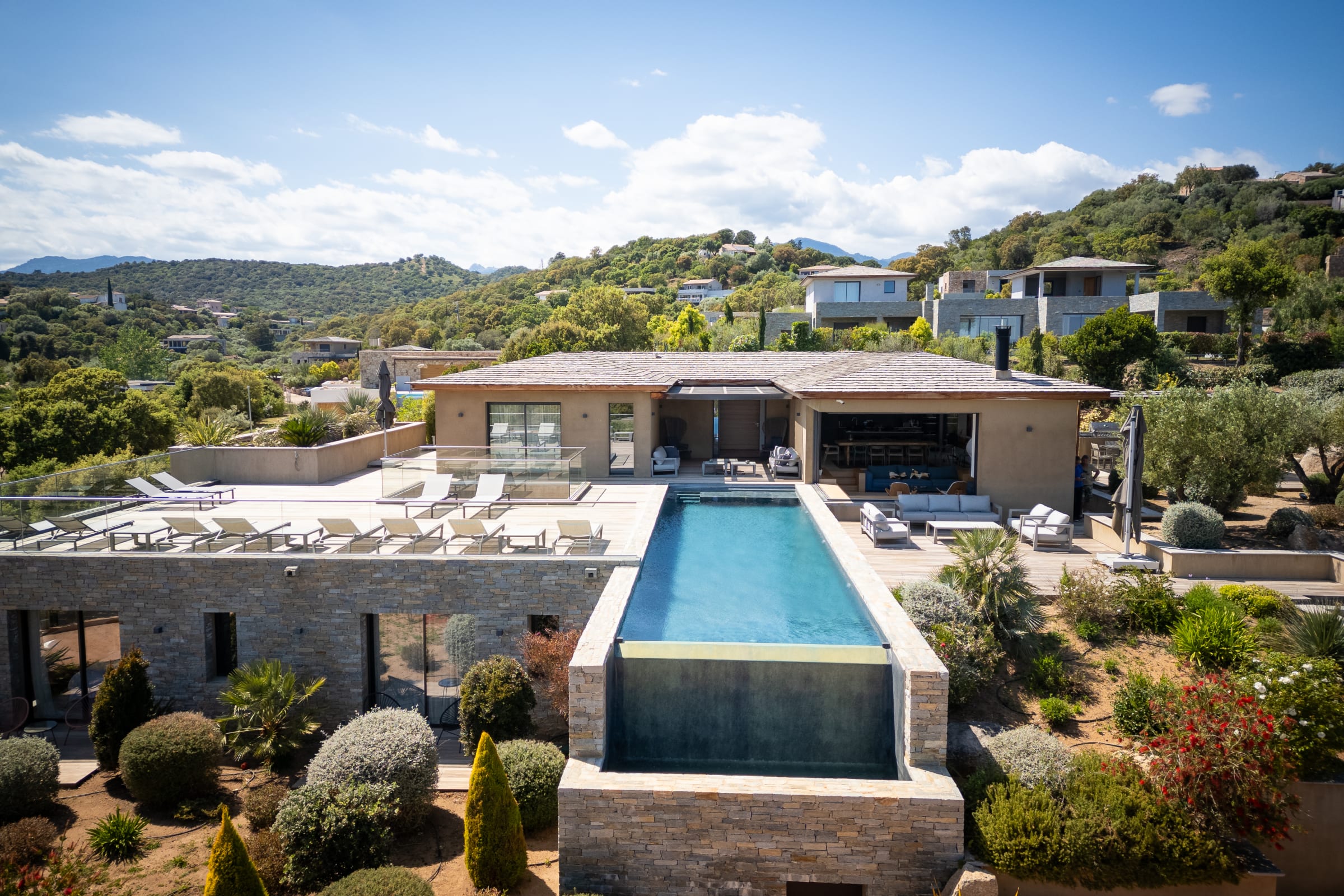 - Piscine chauffée à débordement et sécurisée avec volet roulant – 15 m