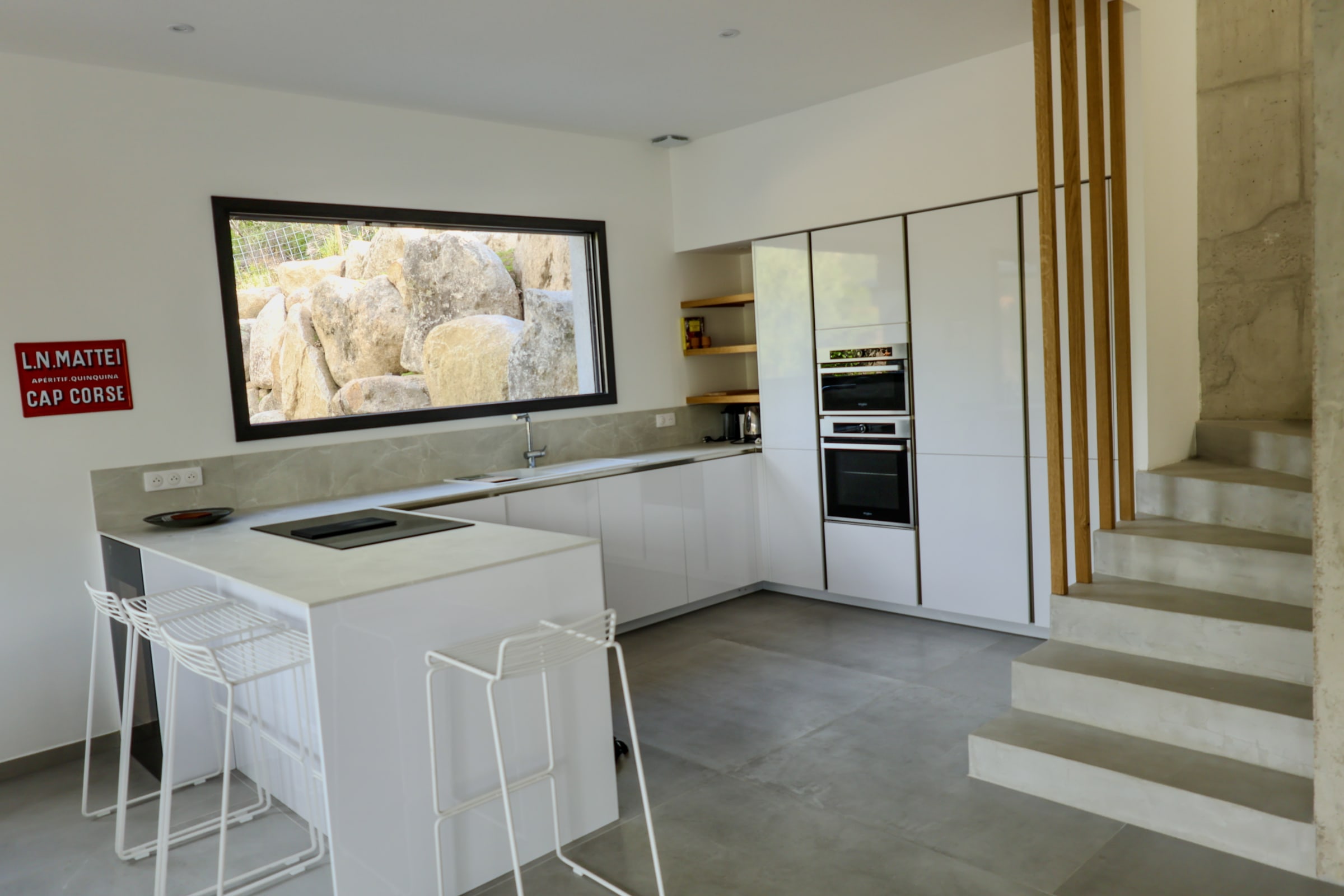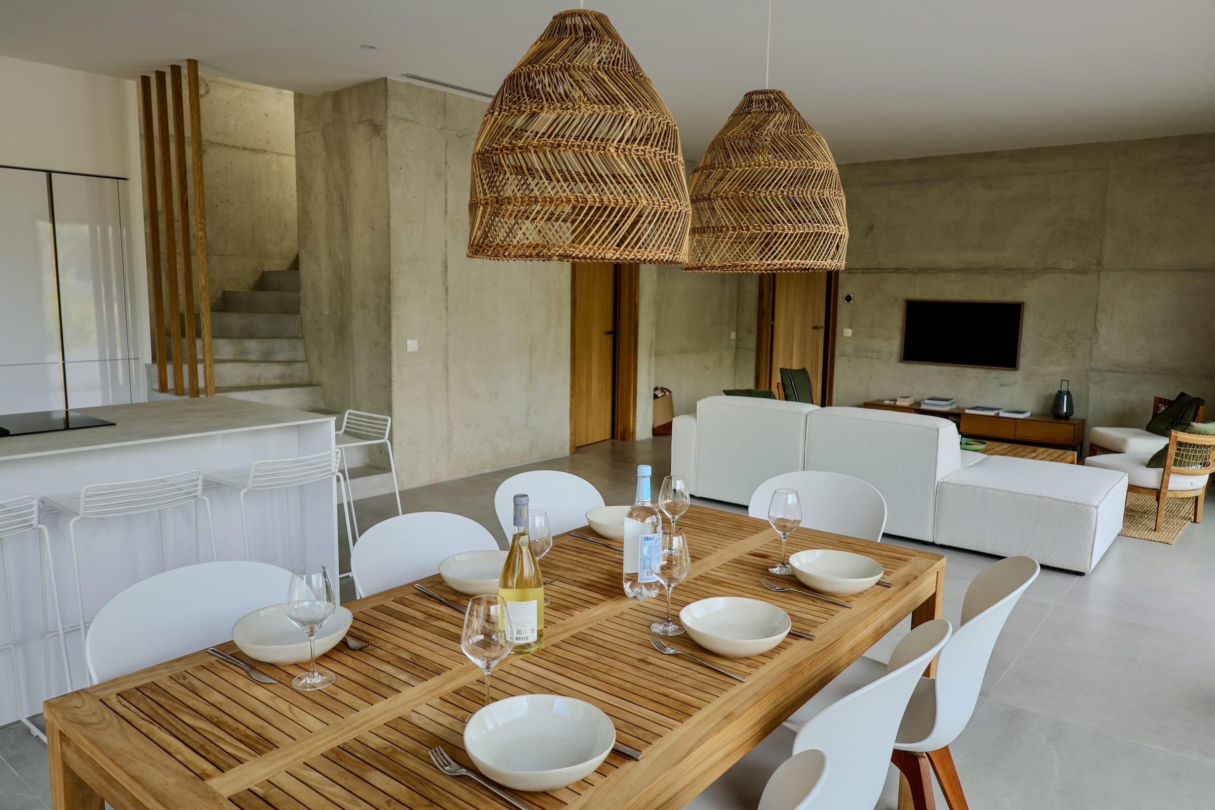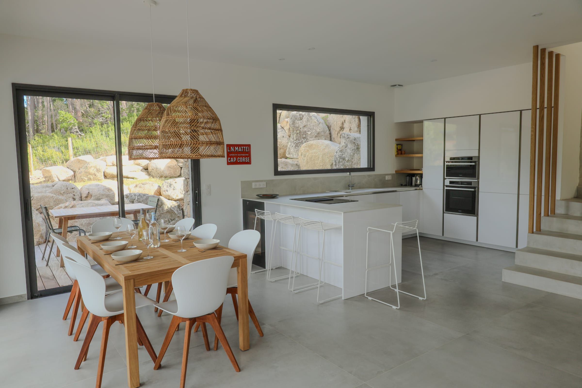 La terrasse et les espaces extérieurs invitent à la détente : 6 bains de soleil, plancha, terrain de pétanque, repas en plein air ou soirées sous les étoiles… tout y est pour savourer l’art de vivre insulaire.