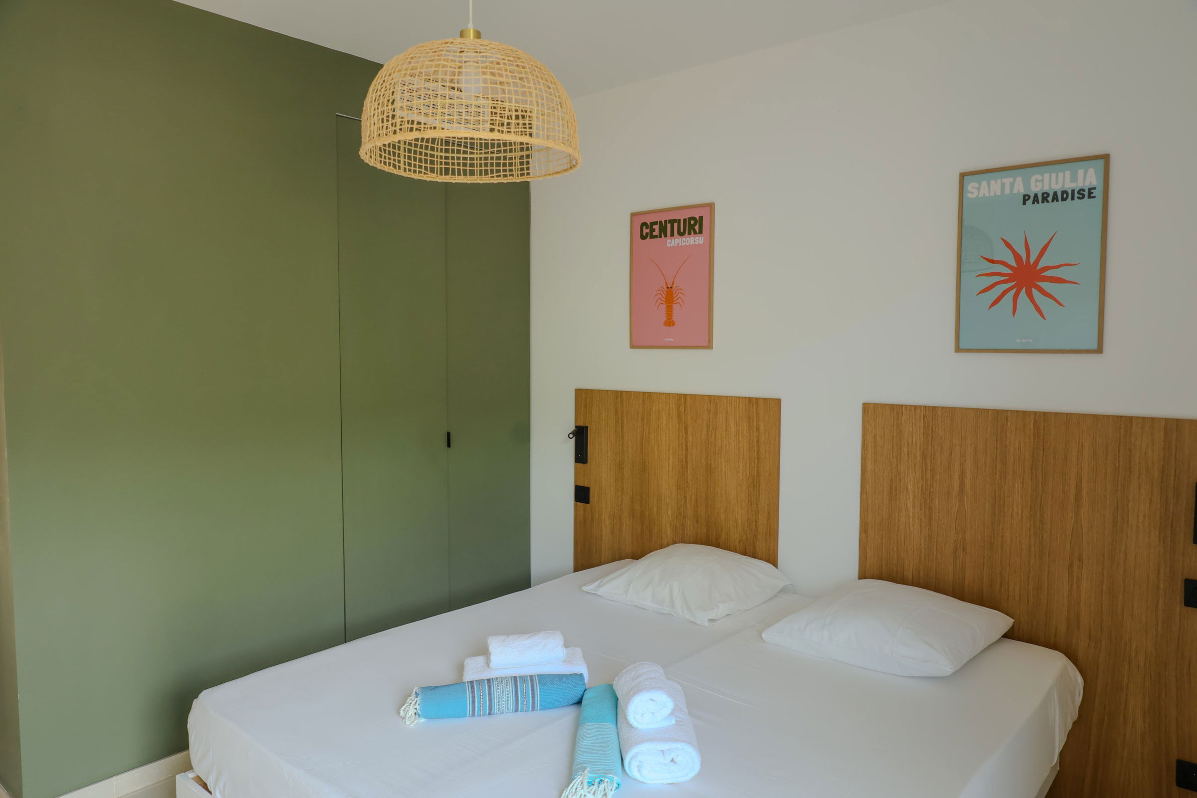 Chambre 2 : deux lits simples 90x200 avec placard et accès balcon.