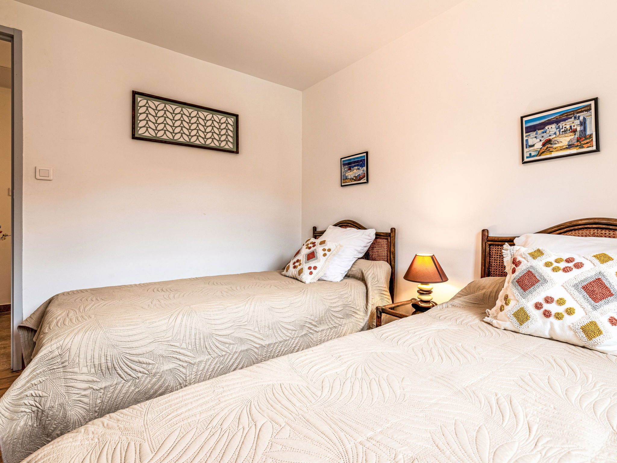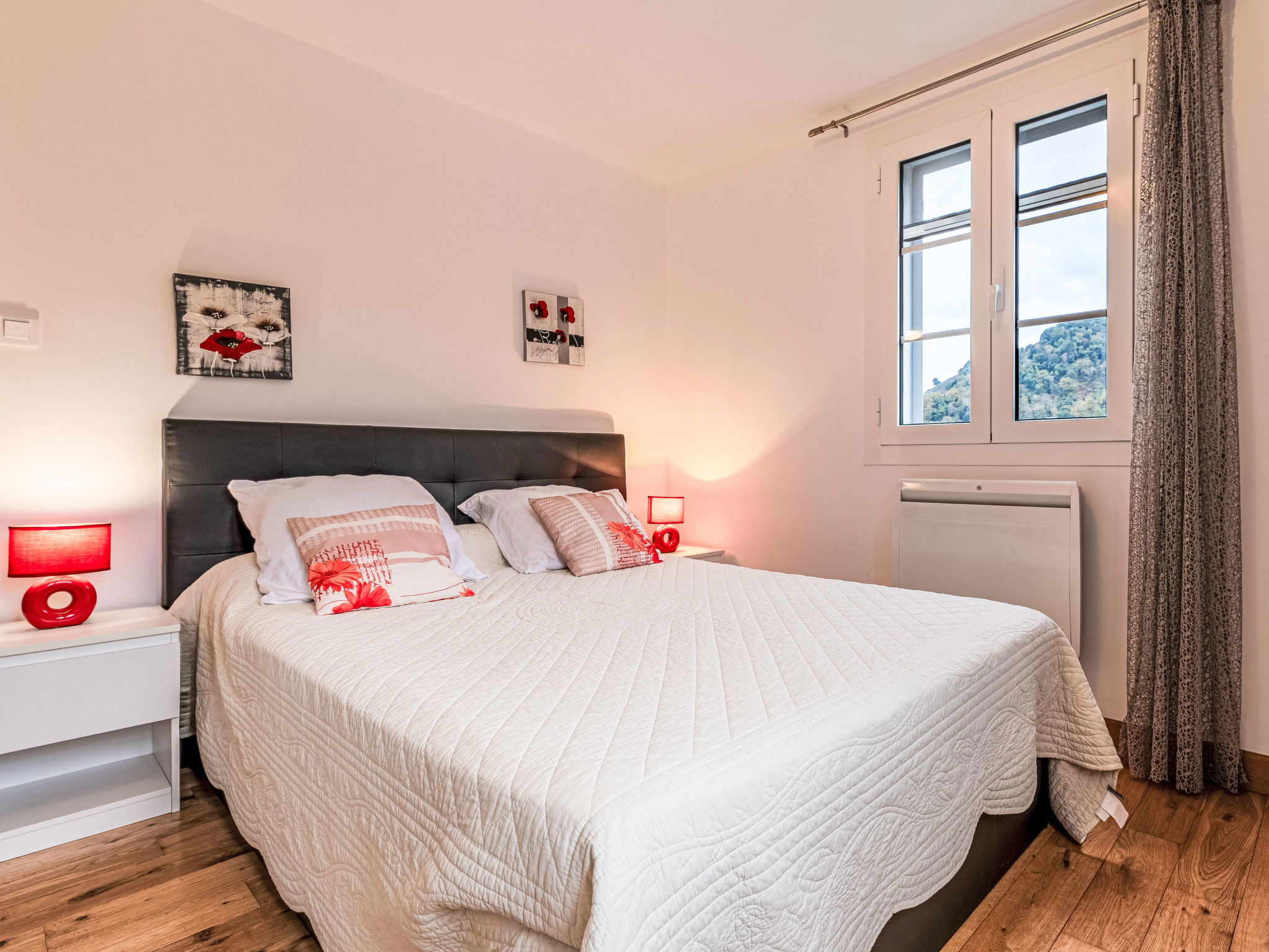 Maison mitoyenne 4 pièces 80 m2 sur 3 niveaux. Aménagement confortable: séjour/salle à manger avec table pour les repas et TV (écran plat). Sortie sur le balcon. Cuisine/séjour (four, lave-vaisselle, 4 feux, grille-pain, bouilloire électrique, micro-ondes, cafetière électrique). À l'étage inférieur: 1 chambre avec 1 grand-lit (140 cm, longueur 190 cm). Douche/WC. Chauffage électrique. À l'étage supérieur: 1 chambre avec 1 grand-lit (140 cm, longueur 190 cm). 1 chambre avec 2 lits (90 cm, longueur 190 cm). Douche/WC. Chauffage électrique. Petite terrasse couverte. Meubles de terrasse, barbecue. Belle vue sur les montagnes et les alentours. A disposition: lave-linge, moustiquaire, chaise haute pour enfant, lit bébé, sèche-cheveux. Internet (Connexion WIFI). Place de parking près de la maison. Veuillez noter: maximum 1 animal/ chien autorisé. Détecteur de fumée. Annonce d'un particulier (art 155, IV du CGI).