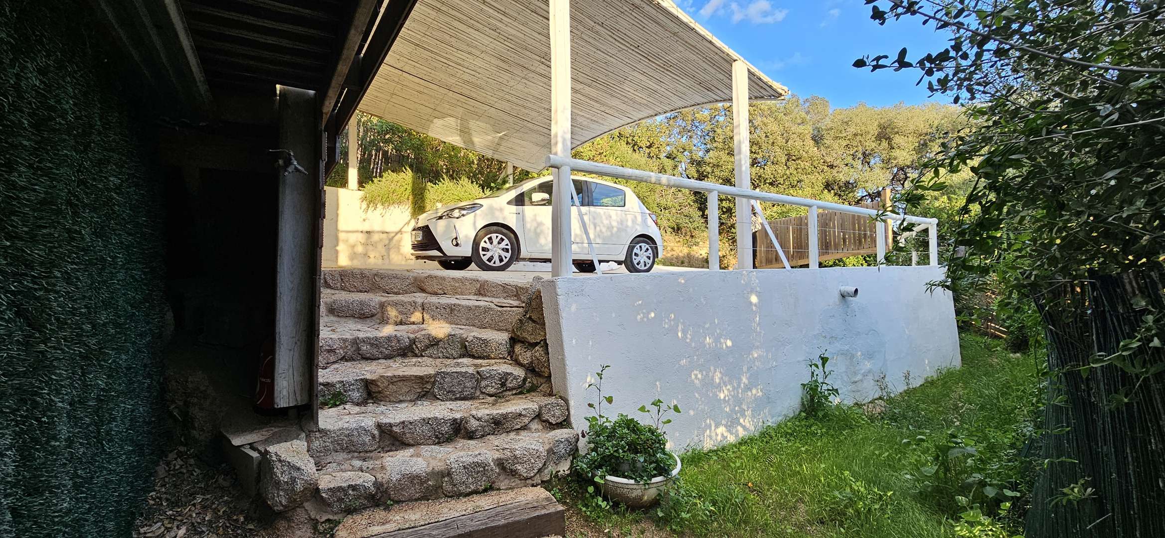 Jardin (500 m²) - parking + abri de voitures (2 voitures)