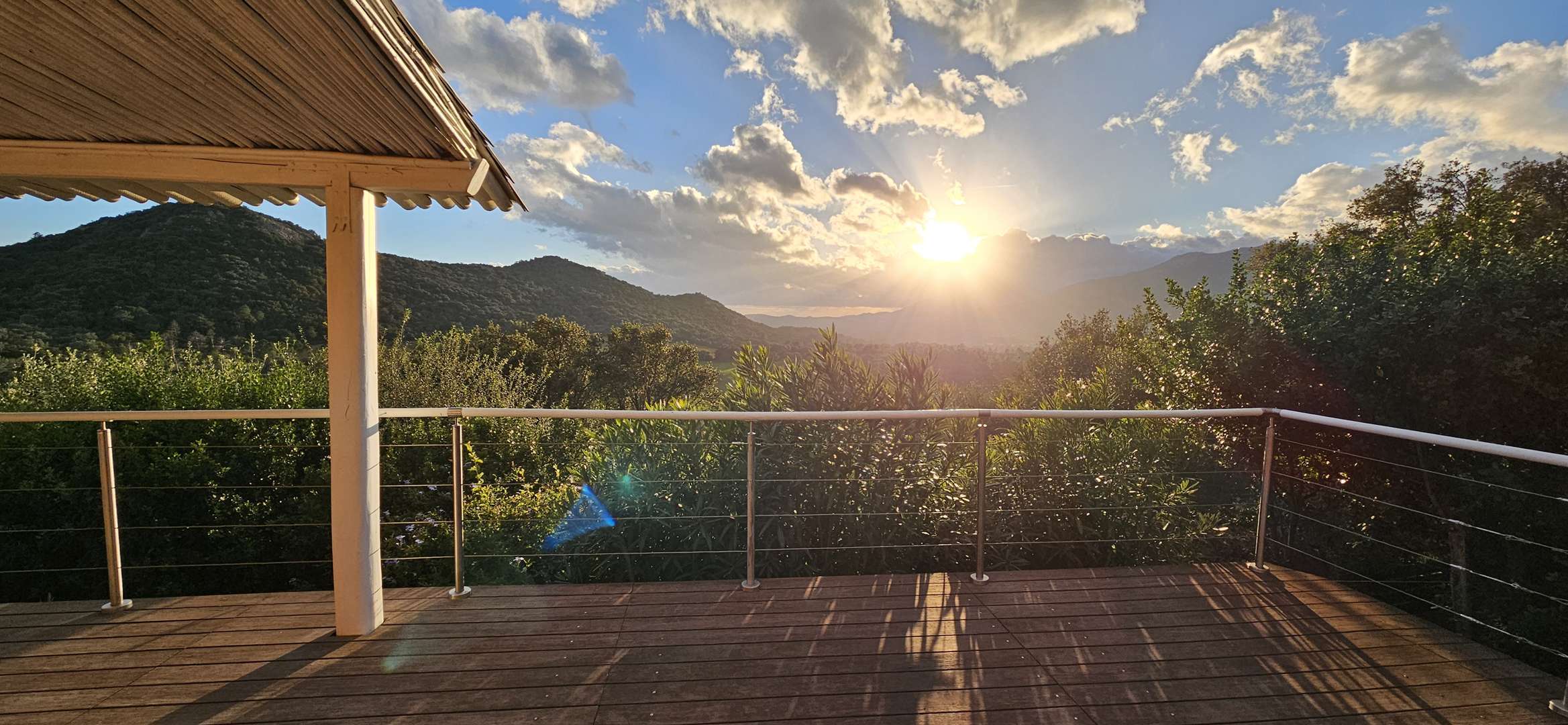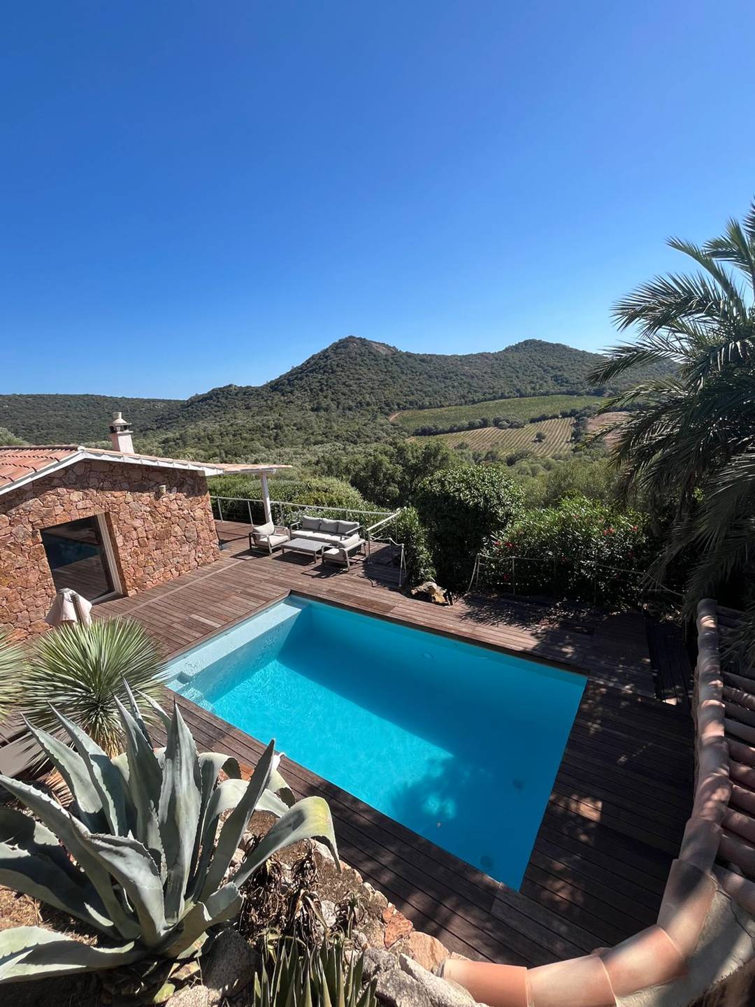 Terrasse 2 - côté piscine : salon de jardin, bains de soleil