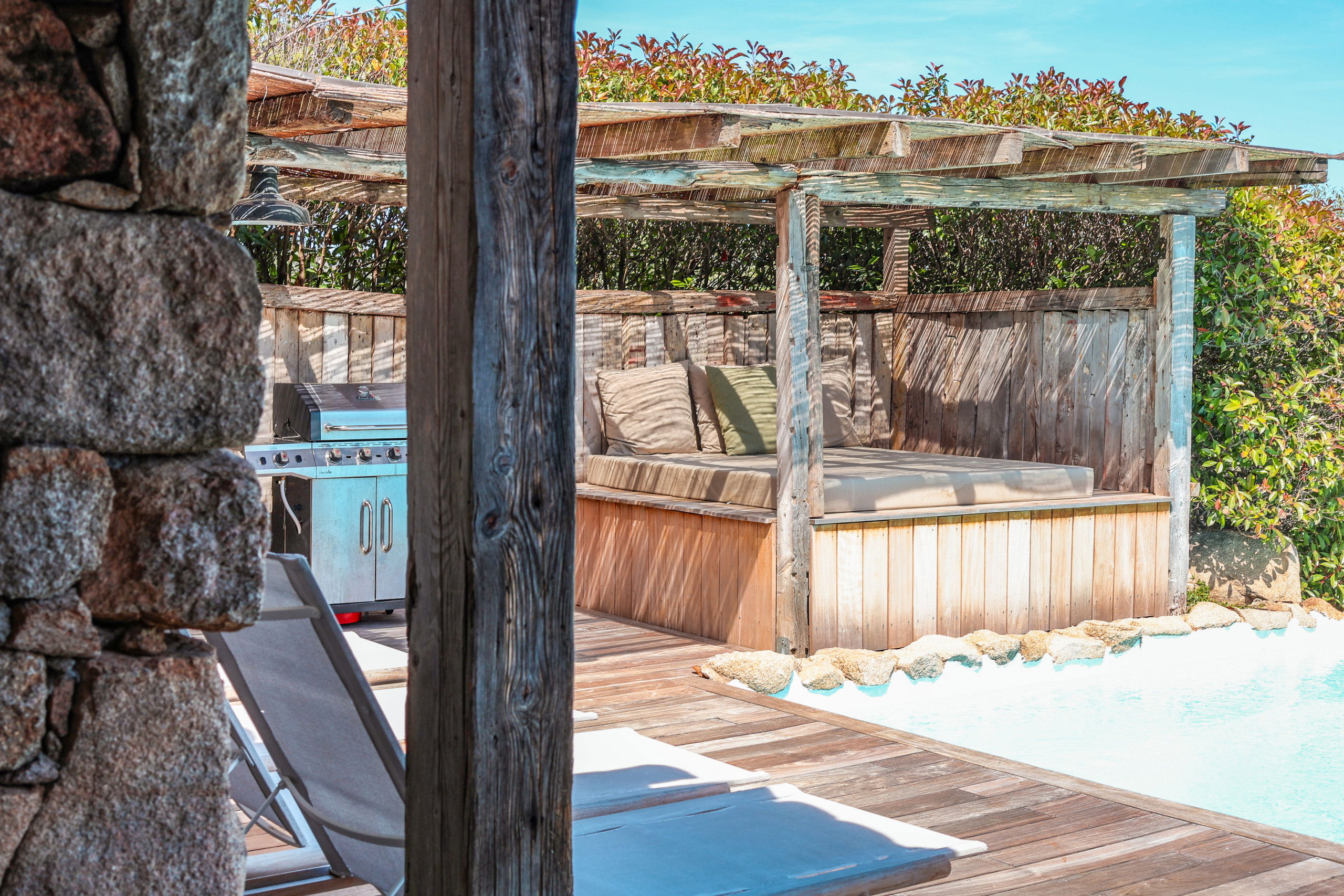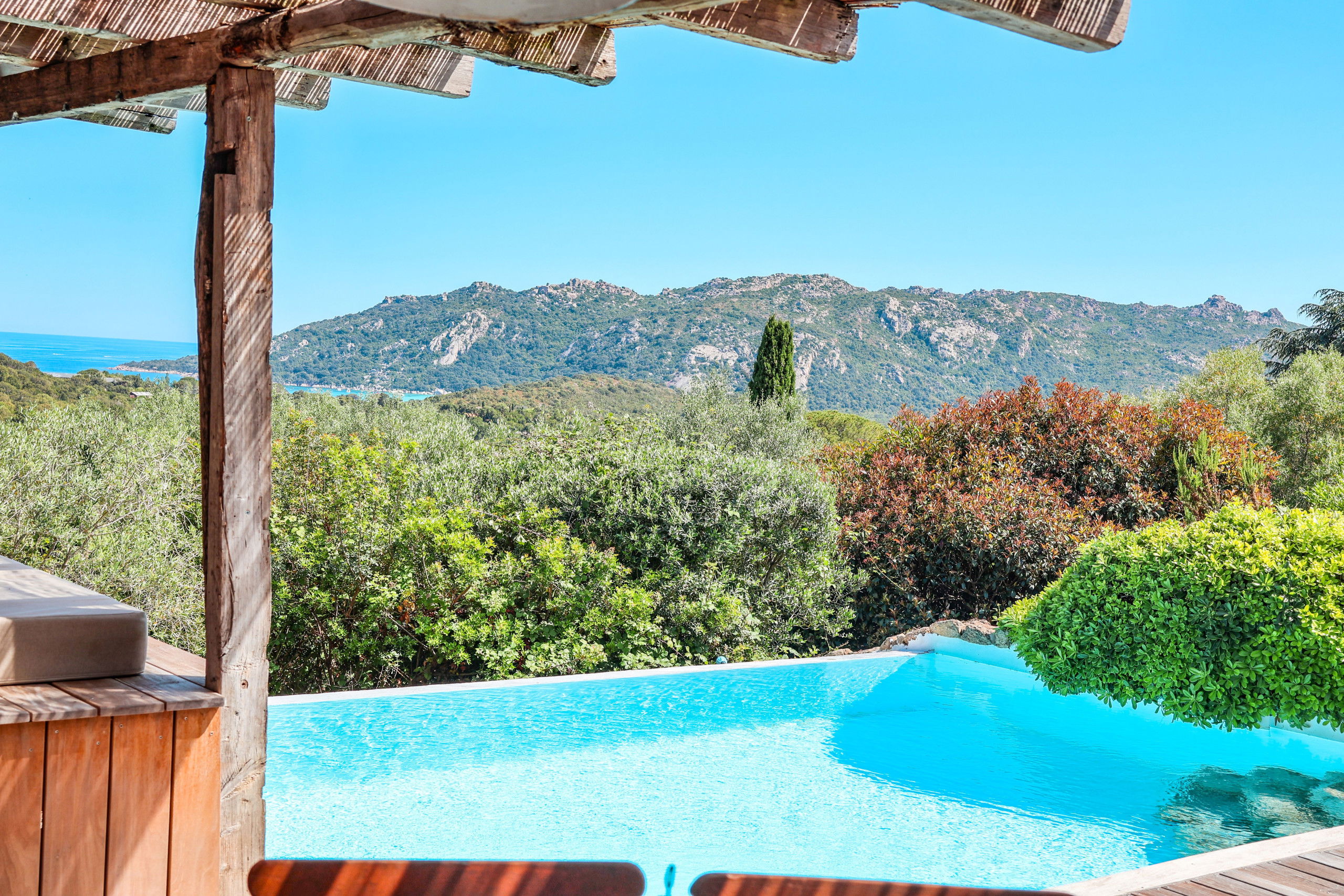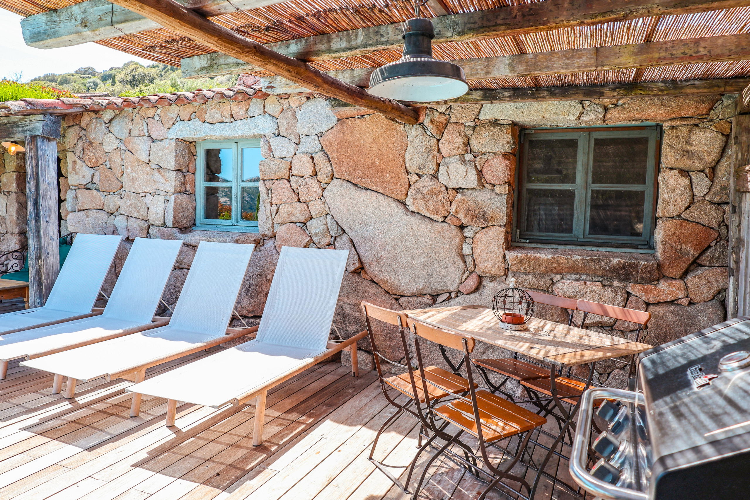 Grande terrasse avec une superbe vue sur la baie de Santa Giulia.