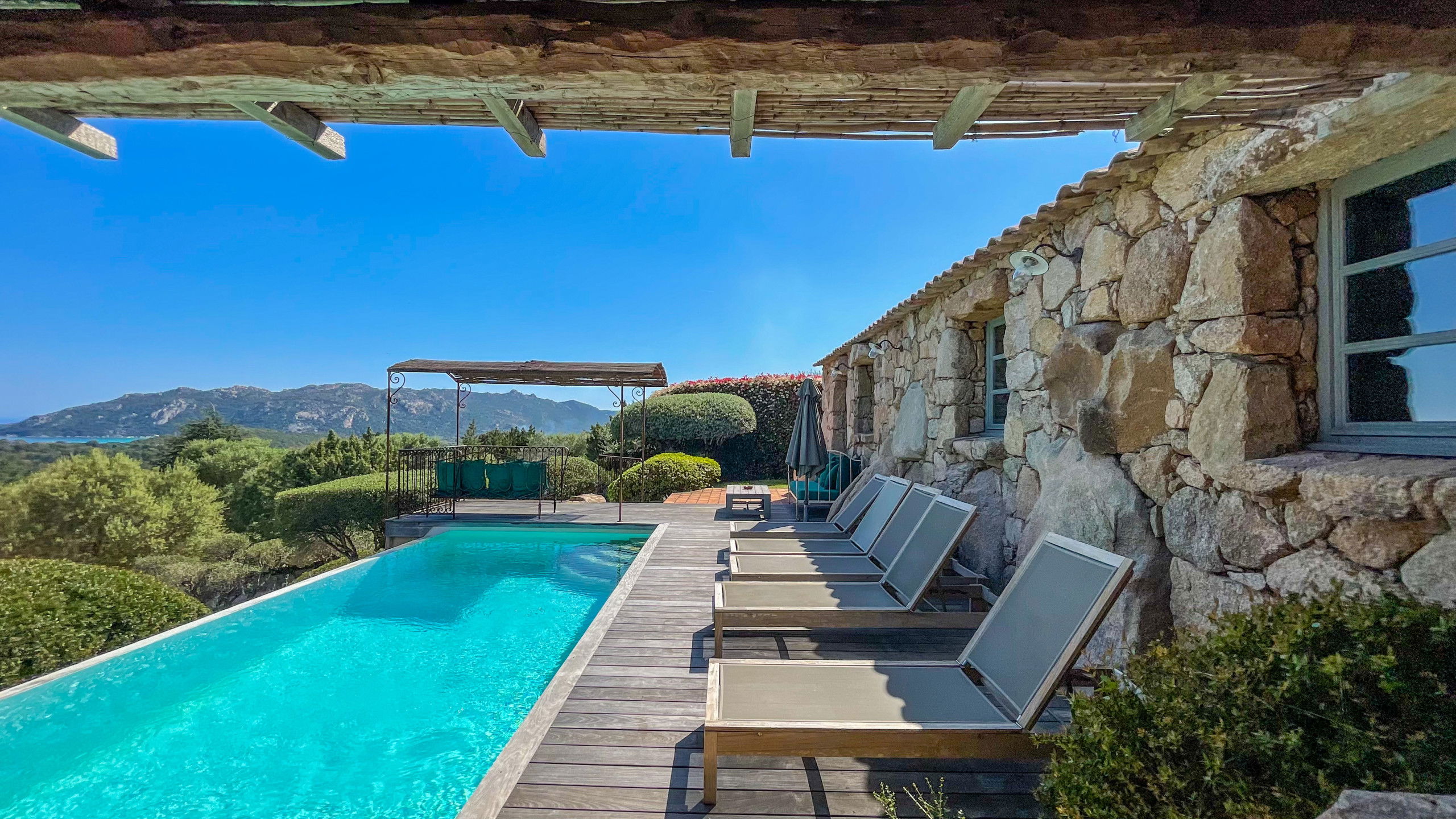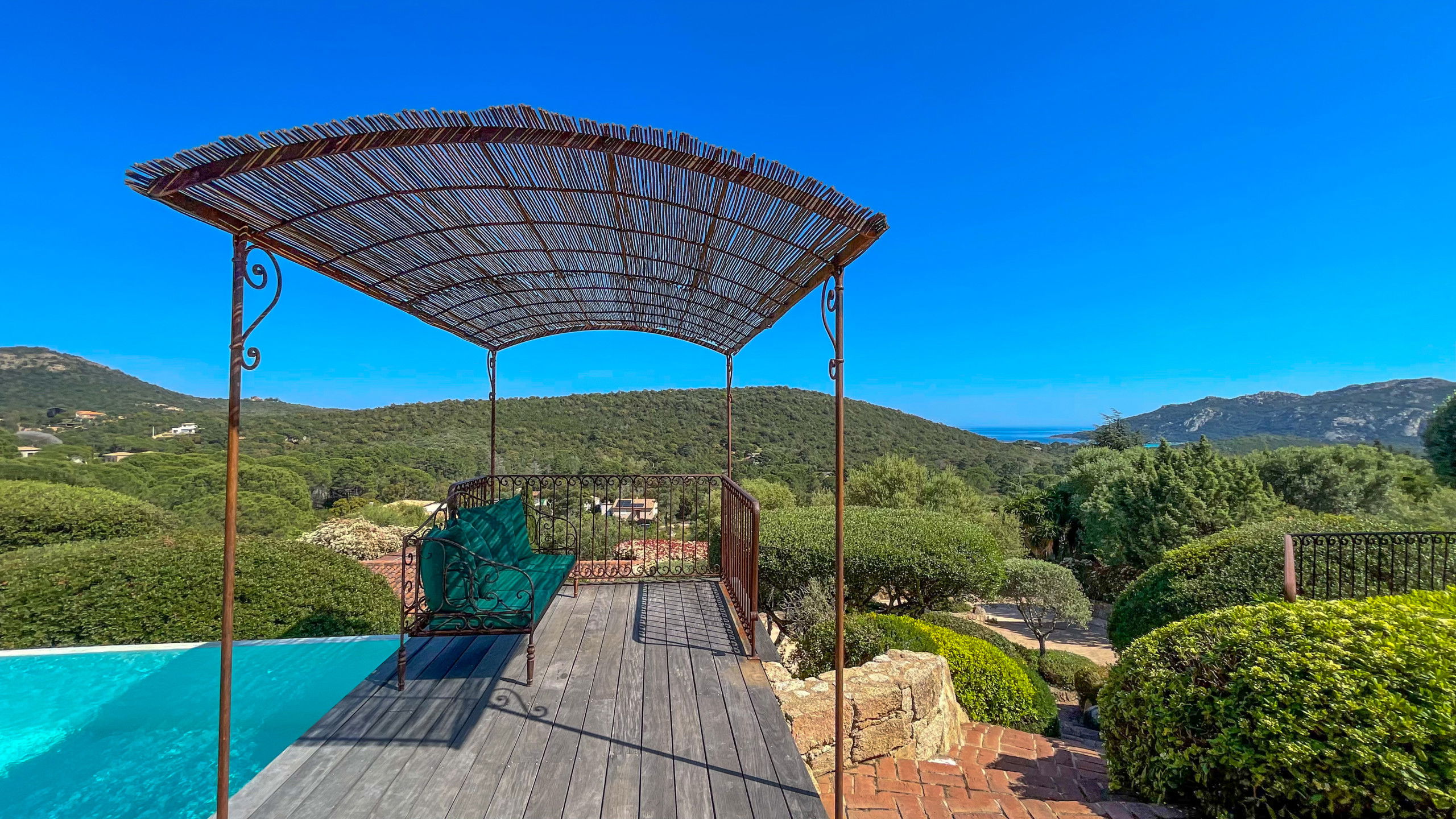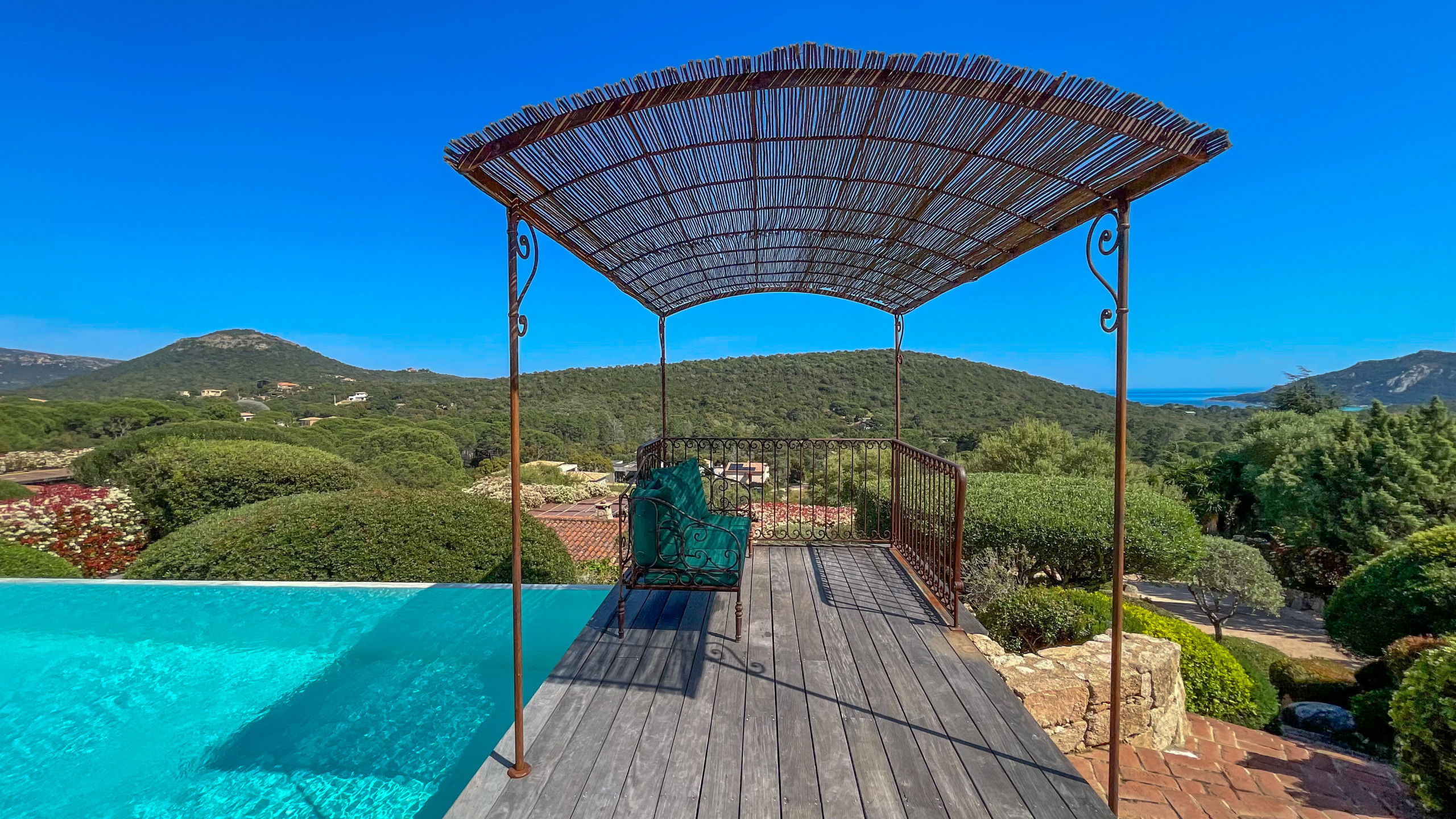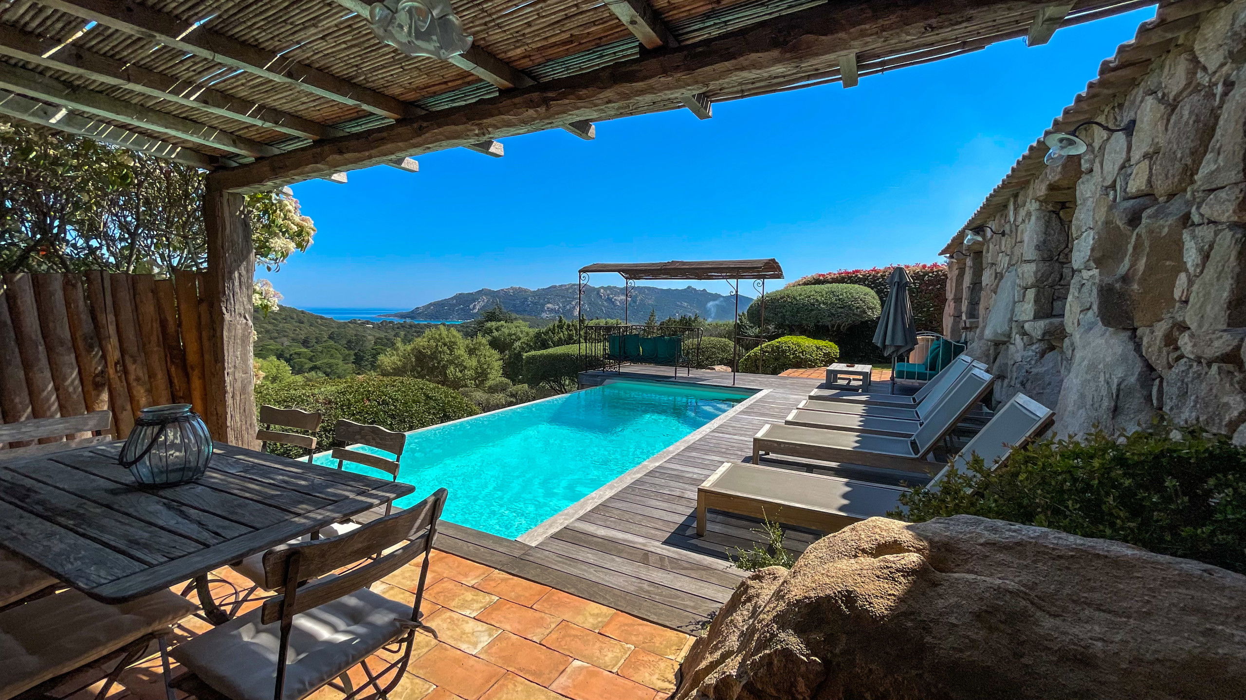 Grande terrasse avec une superbe vue sur la baie de Santa Giulia.