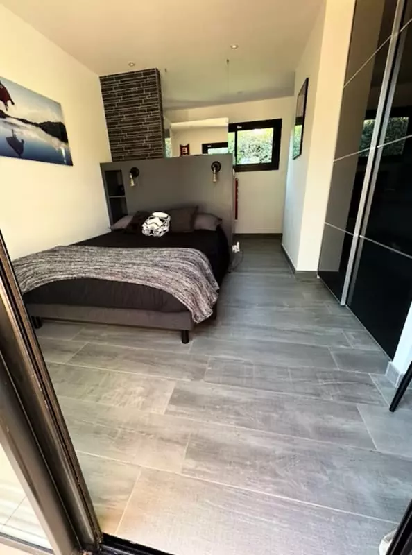 - un petit studio qui complète le logement avec un lit double de 160 cm ;