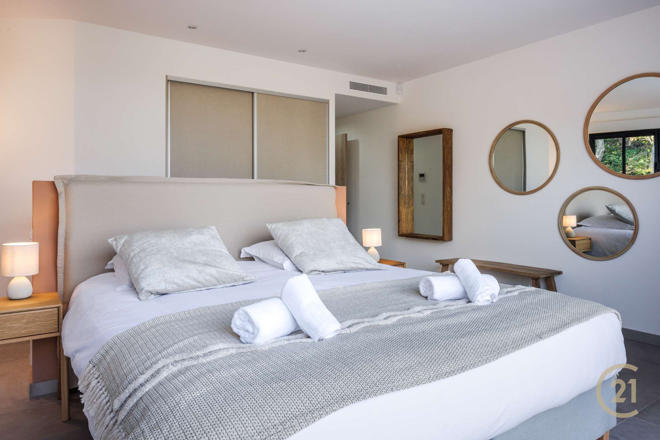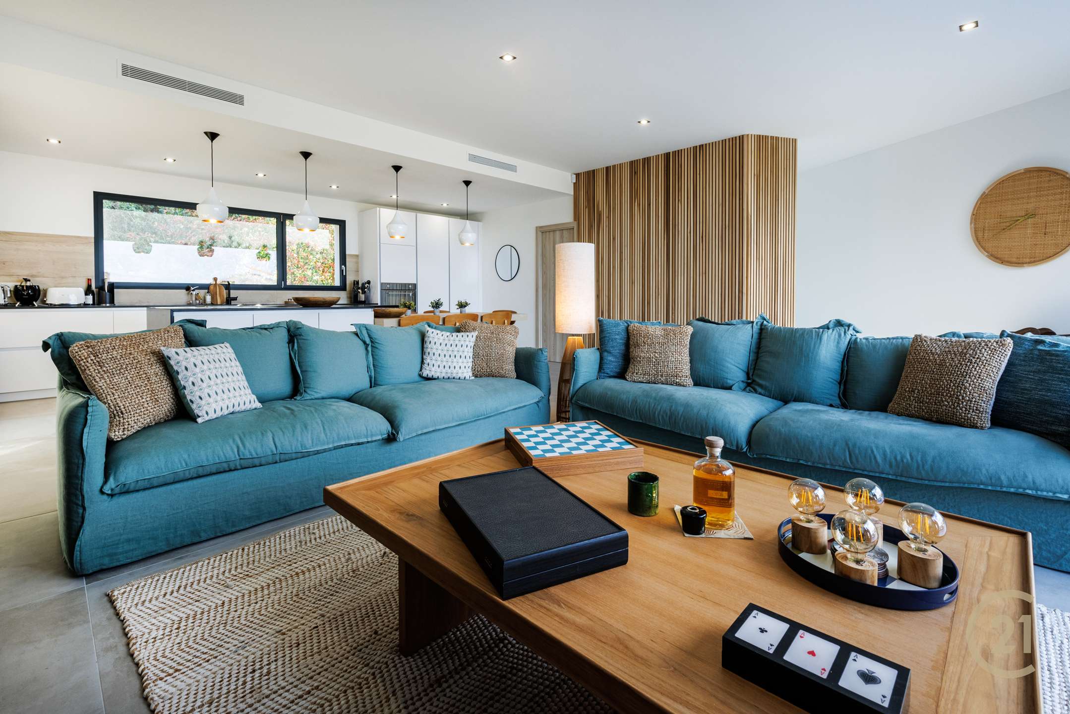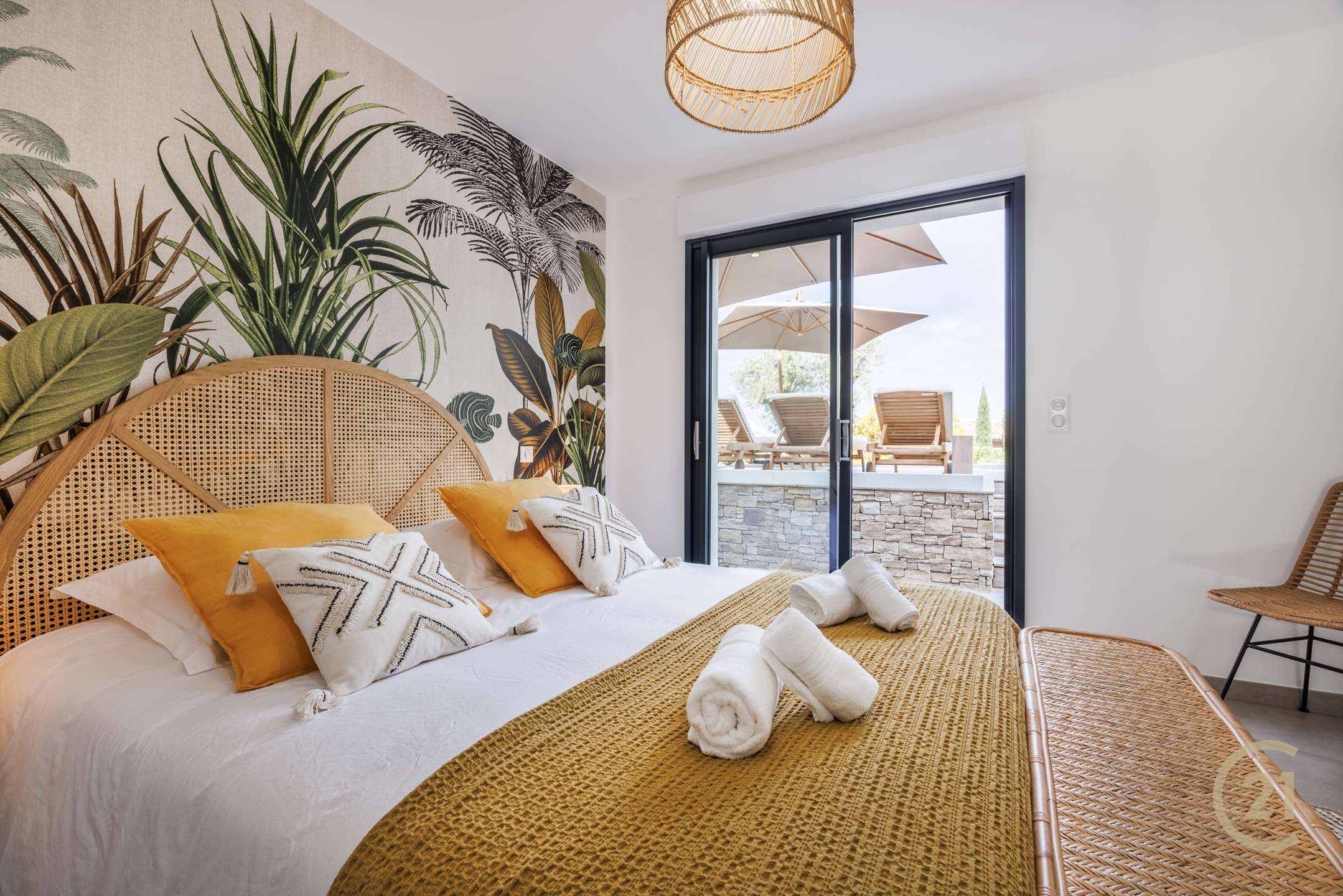 Coté nuit vous disposez de 5 chambres avec salle d’eau privative, donnant chacune sur la vue mer. Enfin pour compléter les prestations de cette jolie villa, une salle de sport ainsi qu’une salle de TV sont à votre disposition.