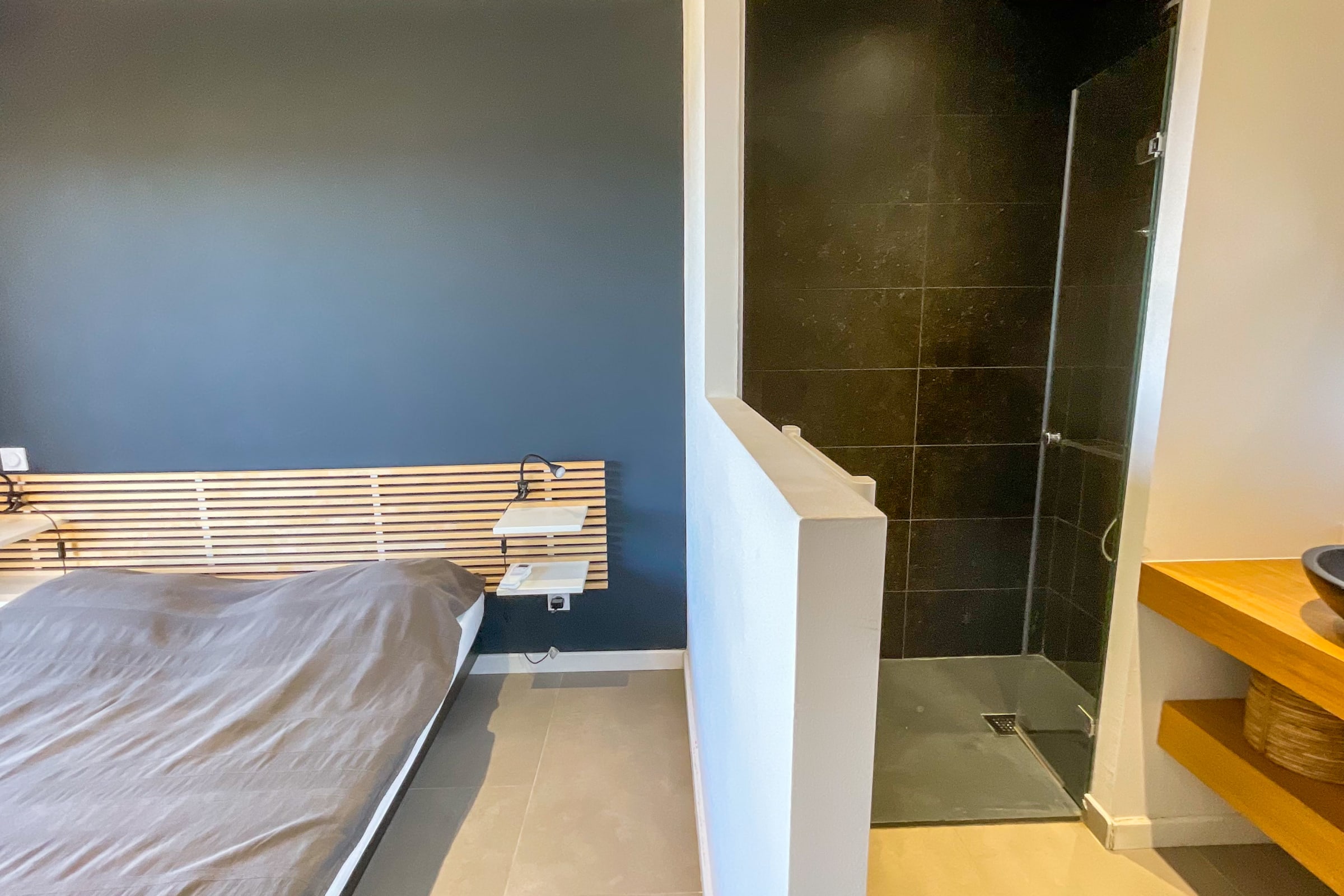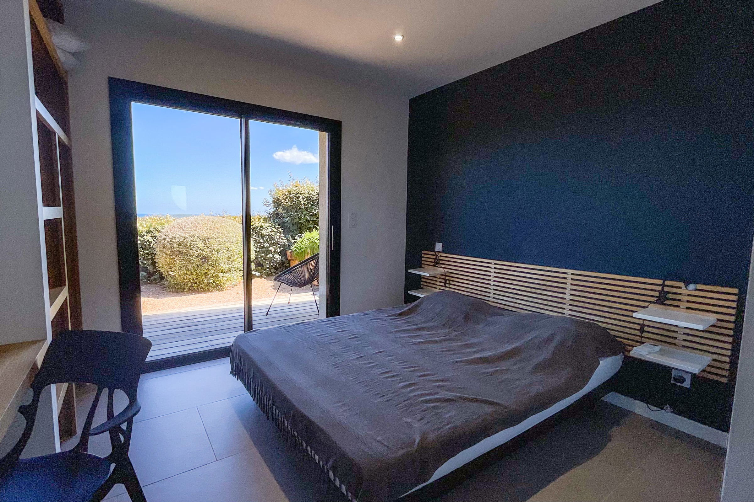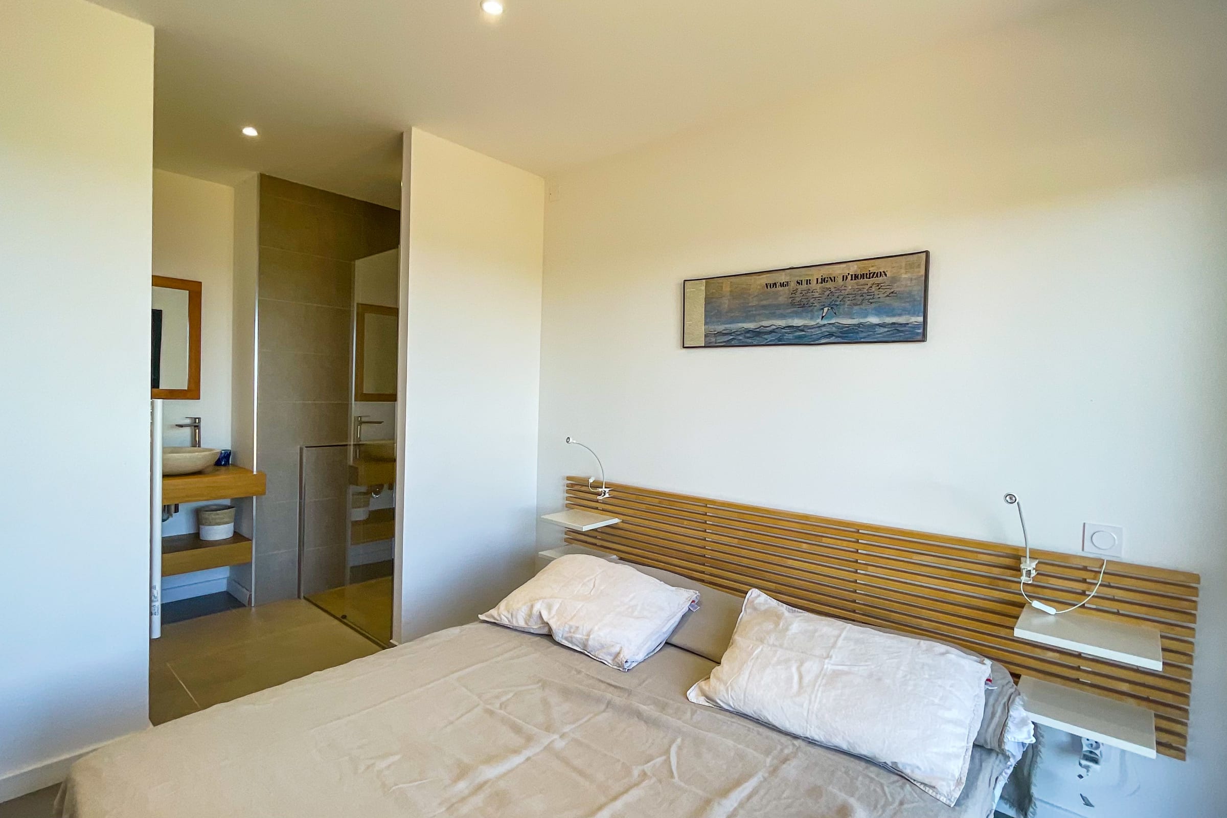Chambre 6 : Suite parentale - lit Queen Size ( 160*200) Située à l'étage supérieur avec très grande terrasse vue mer. Douche et toilette