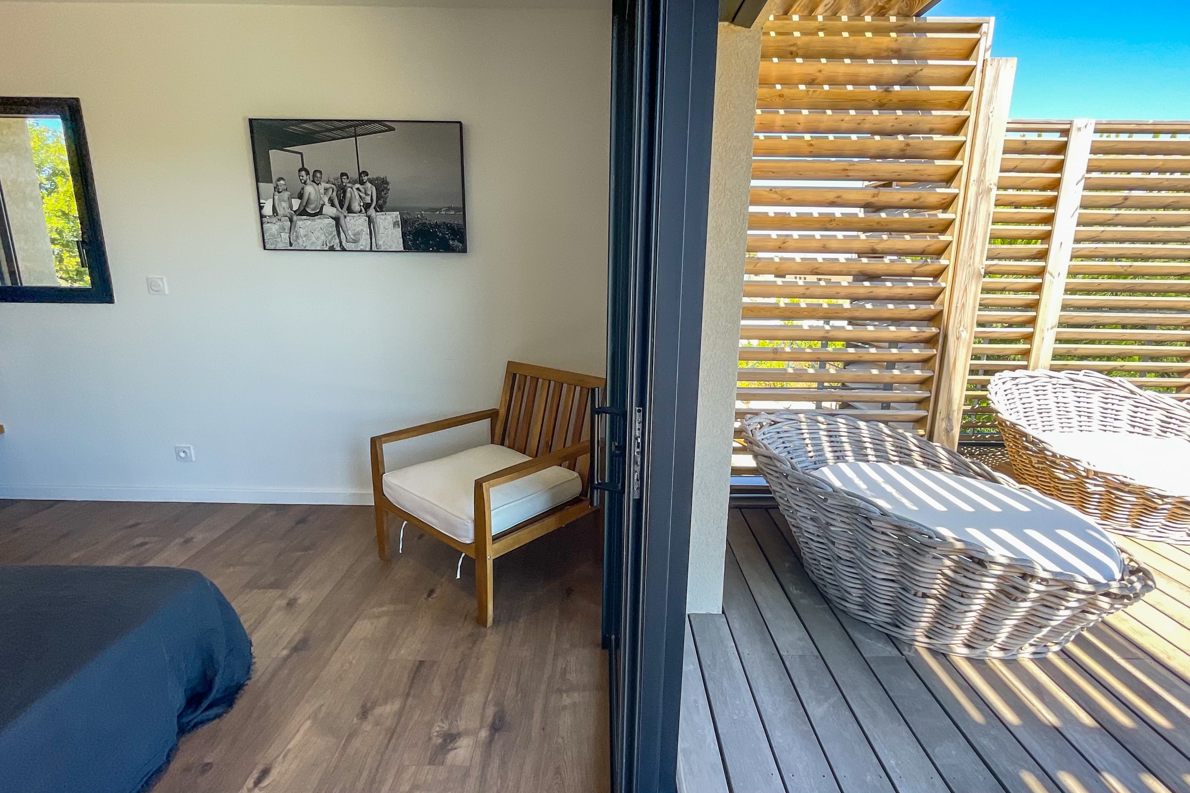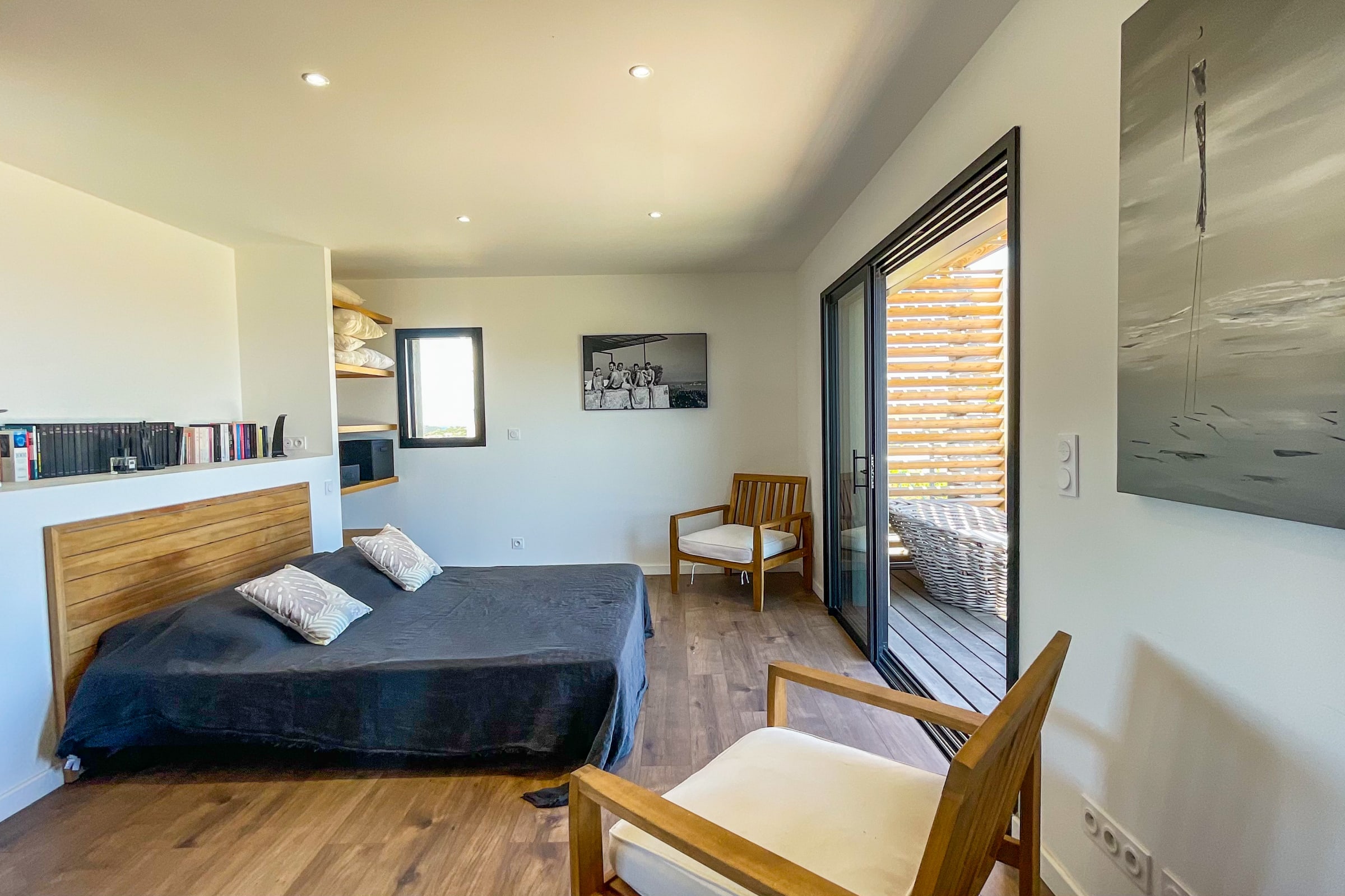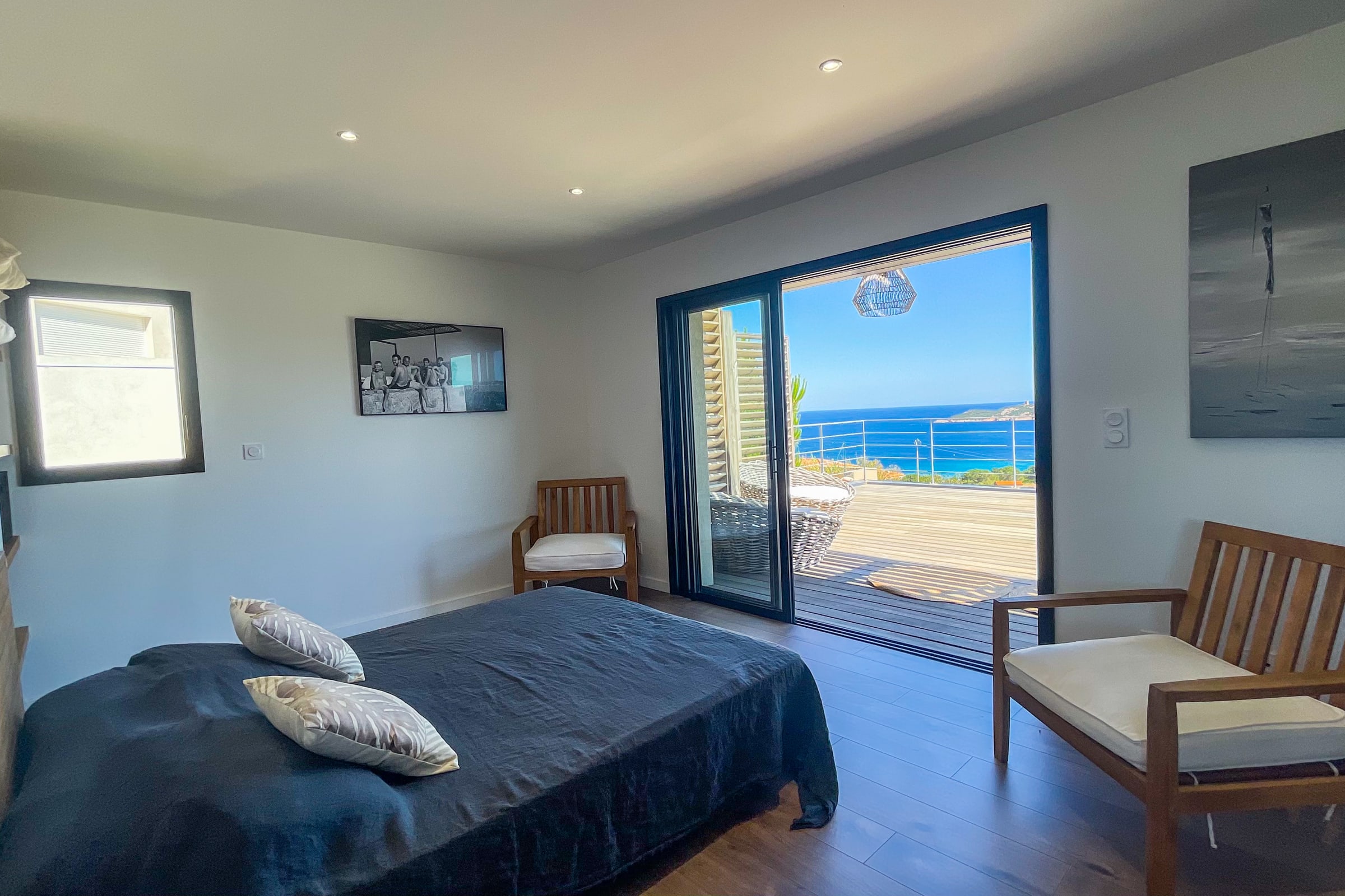 Chambre 6 : Suite parentale - lit Queen Size ( 160*200) Située à l'étage supérieur avec très grande terrasse vue mer. Douche et toilette