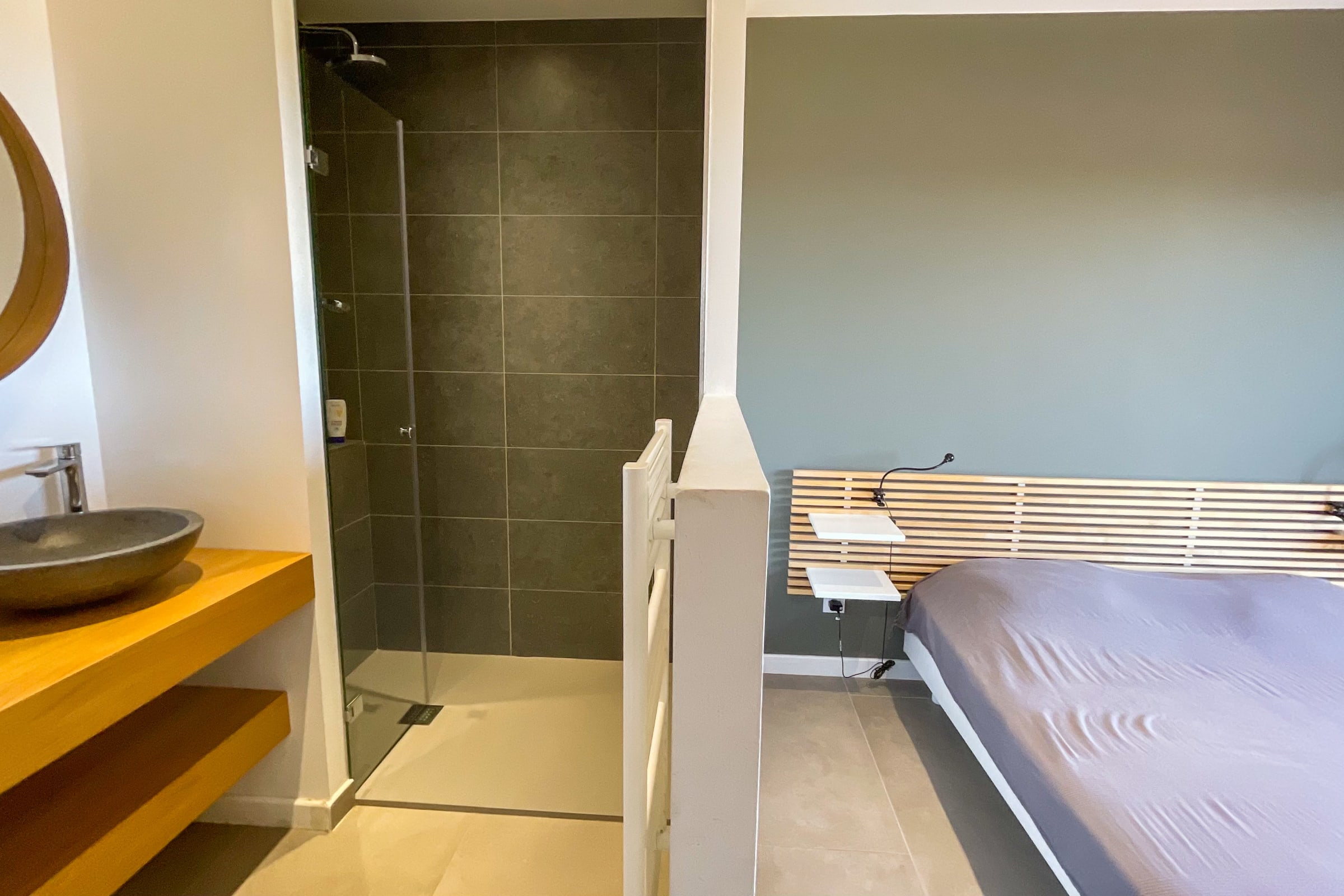 Chambre 1 - vue mer : lit Queen Size ( 160*200) avec salle de douche