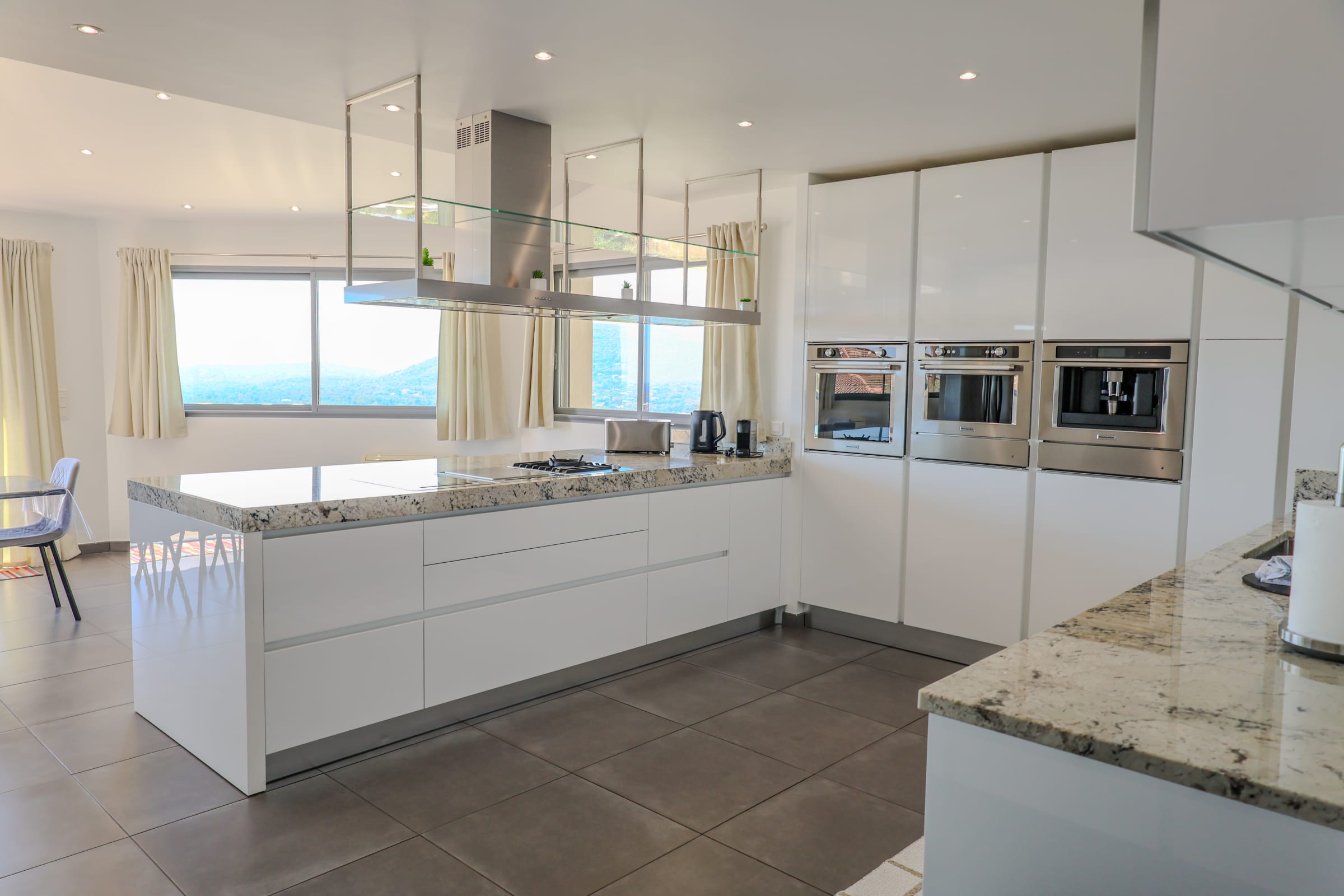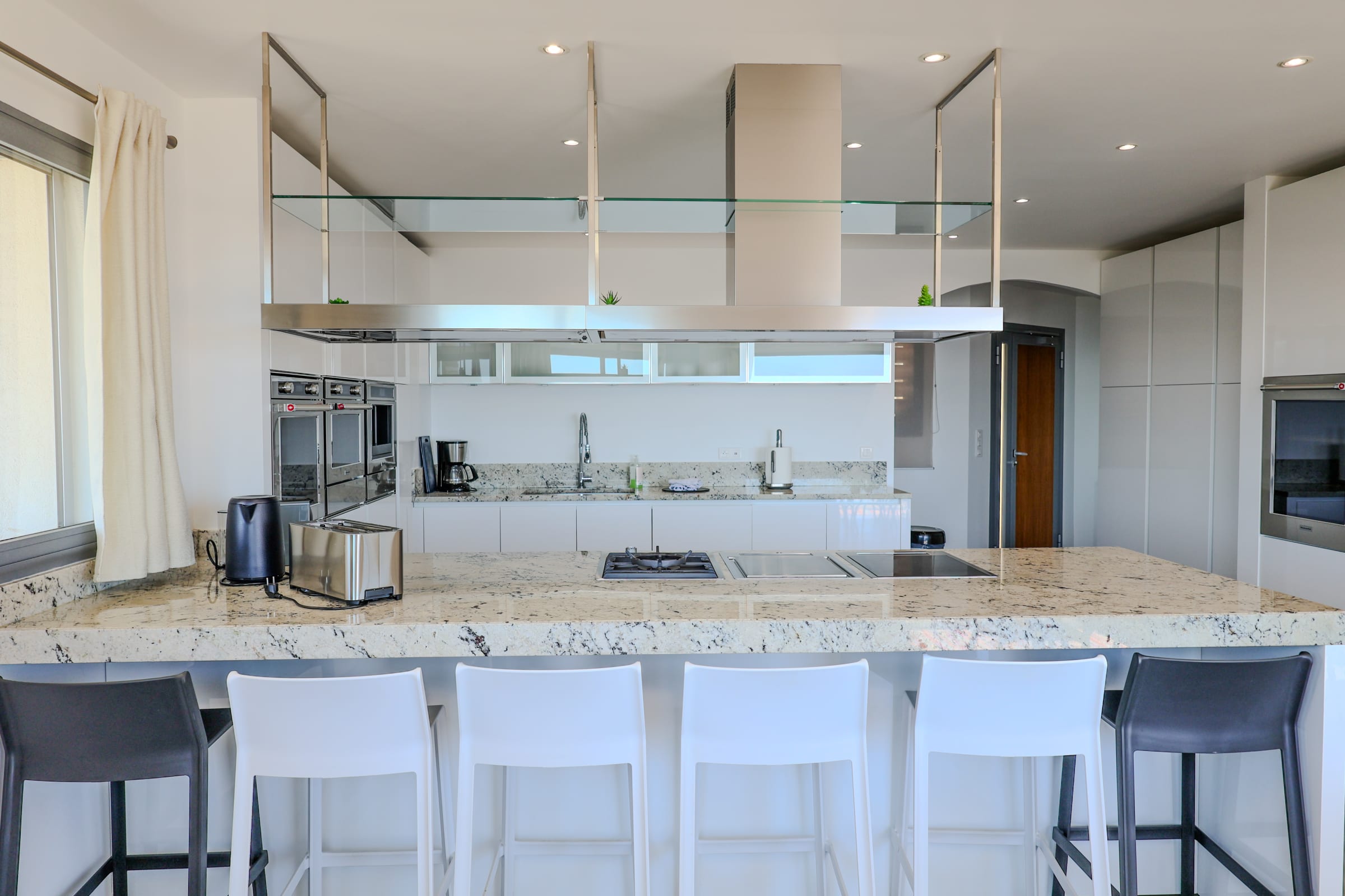 Vous serez accueilli par un grand salon/salle à manger avec télévision et une cuisine américaine tout équipée faisant face à la mer. La cuisine comprend un four, un micro-onde, réfrigérateur, congélateur, bouilloire, grille-pain, presse agrume, machine à café a grain.
