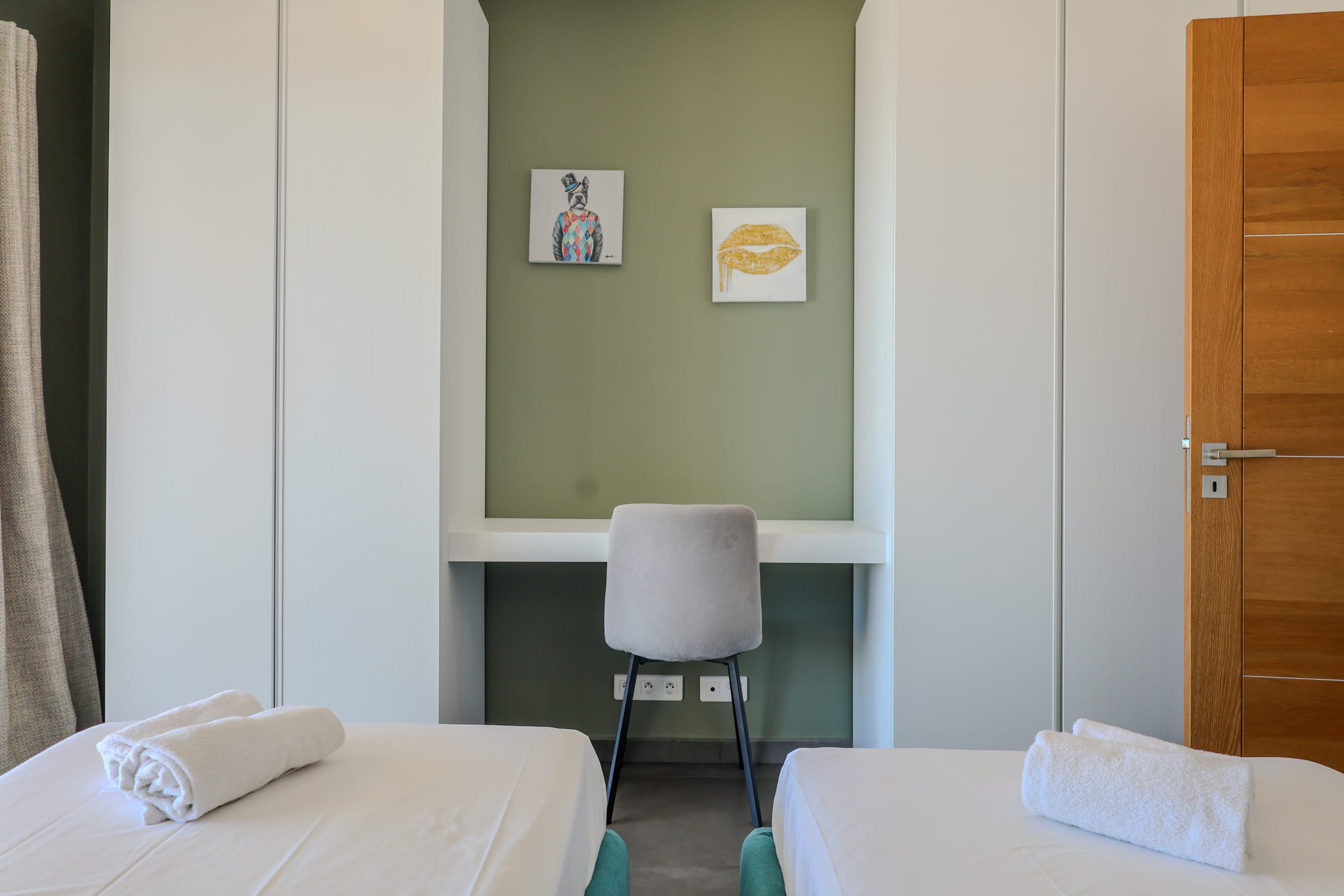 Chambre 3 : 2 lits simple en 90*190 et accès terrasse. Idéal pour des enfants.