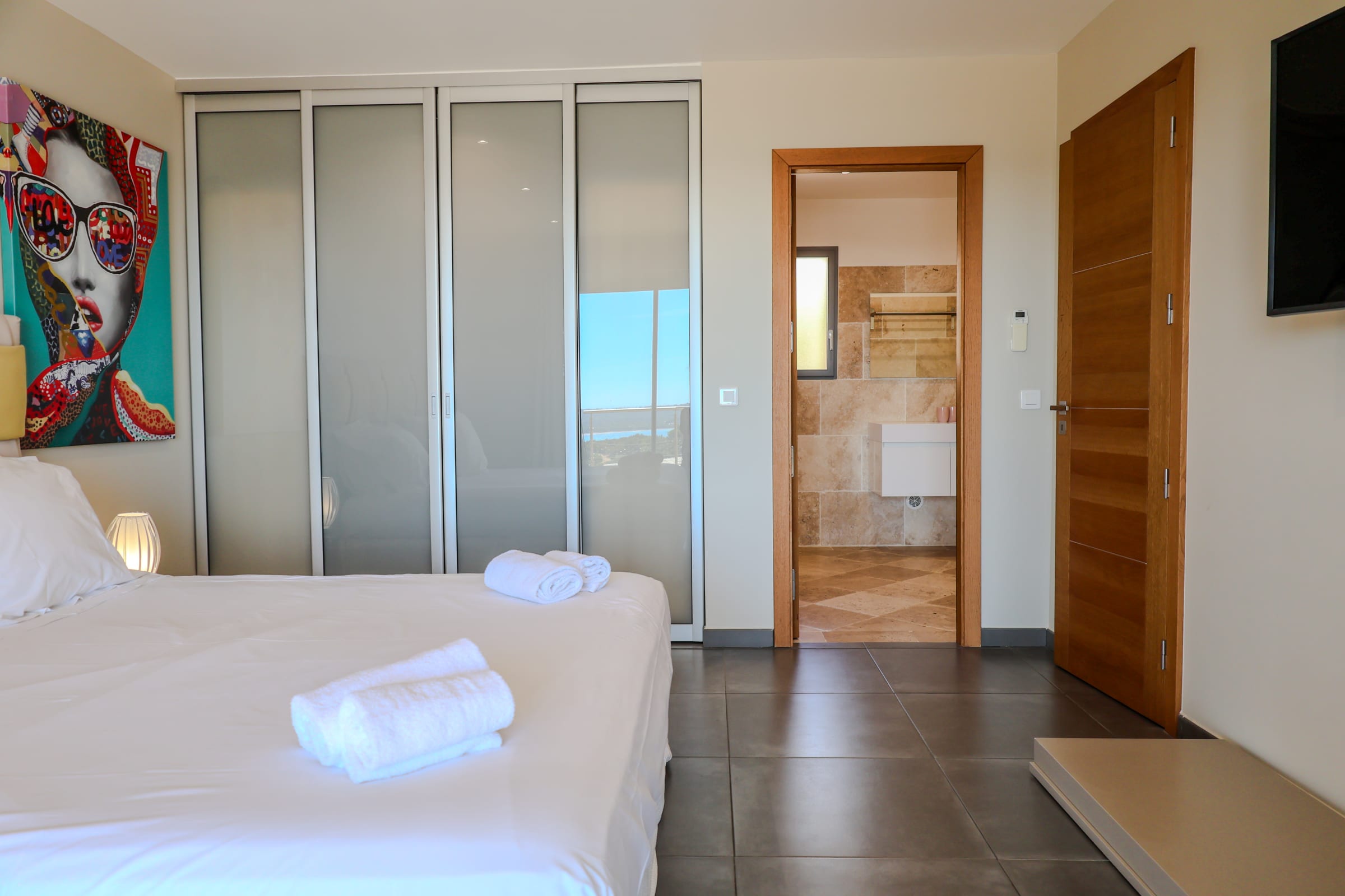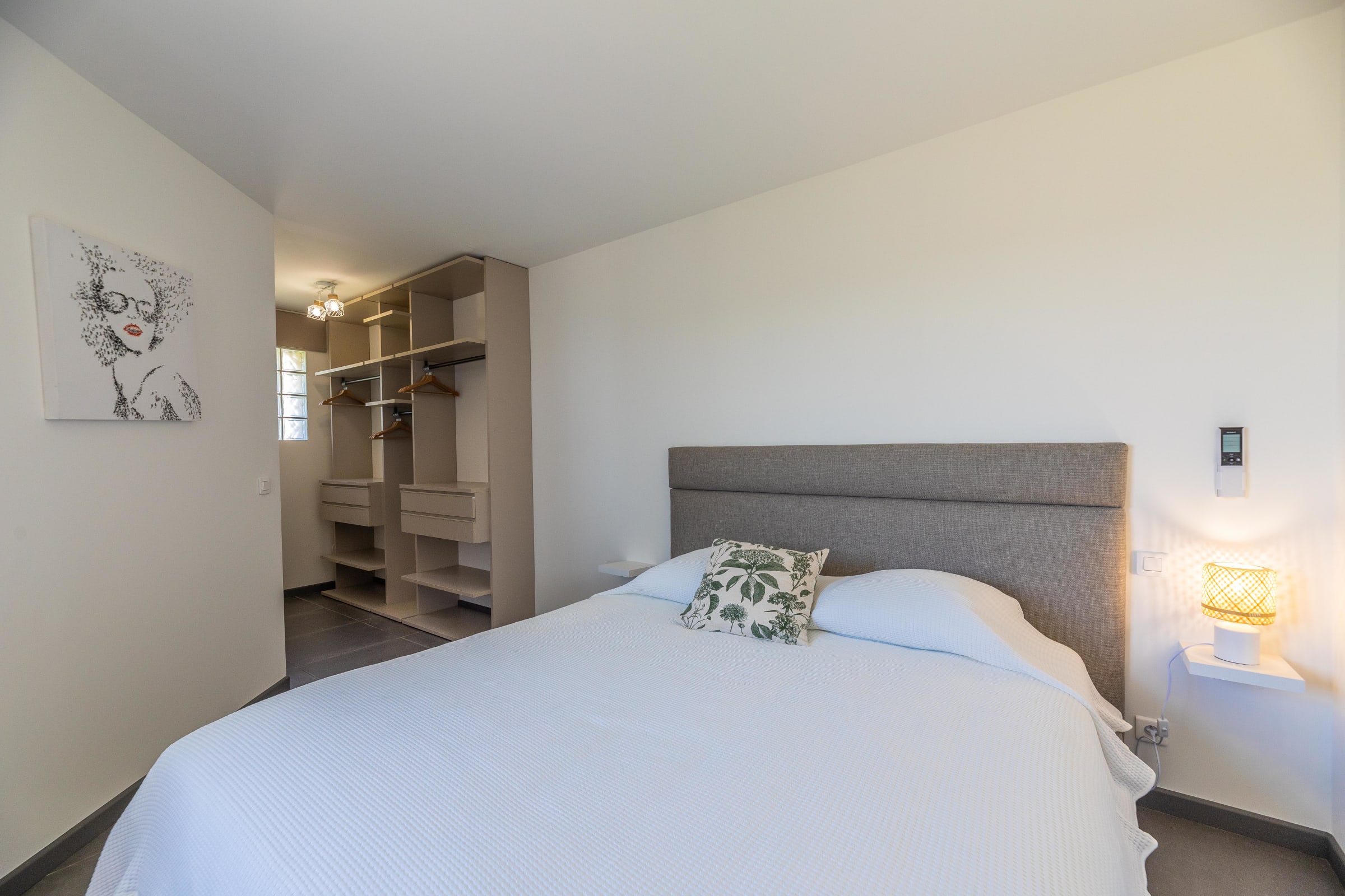 Chambre 4 : lit en 160*200 avec placard, salle de douche et accès piscine.