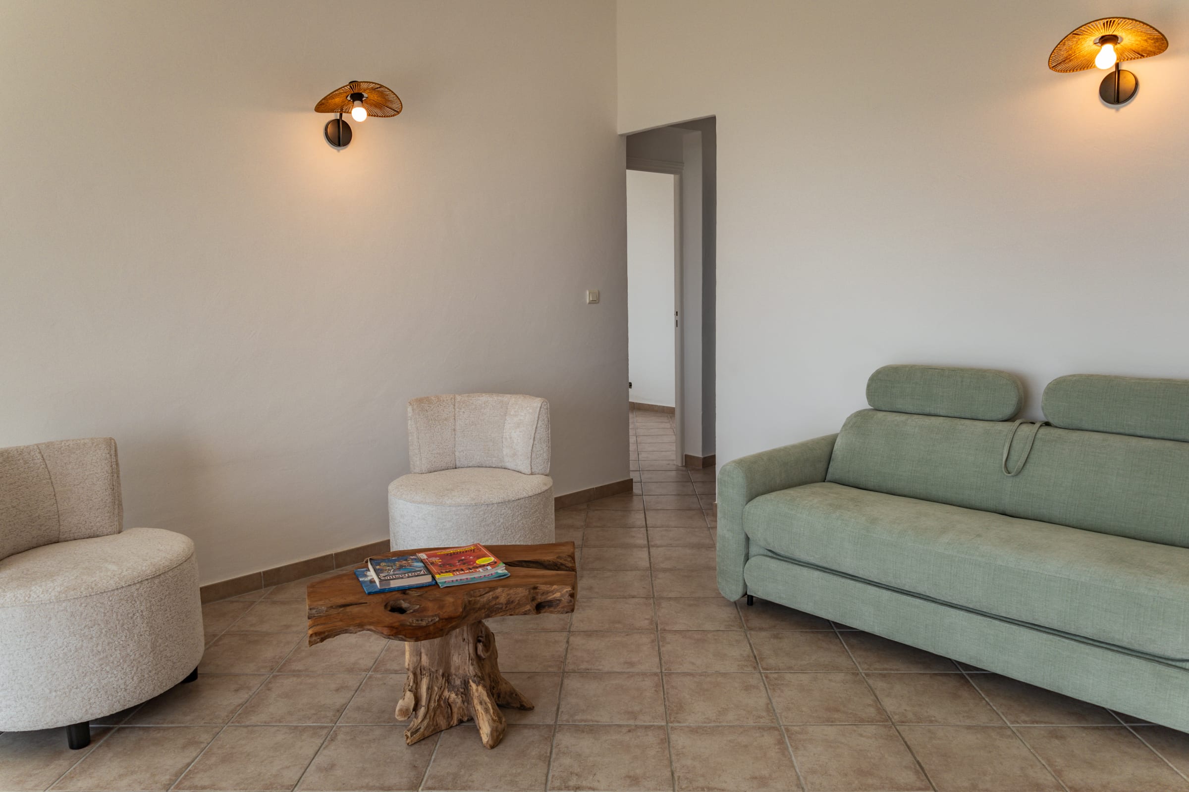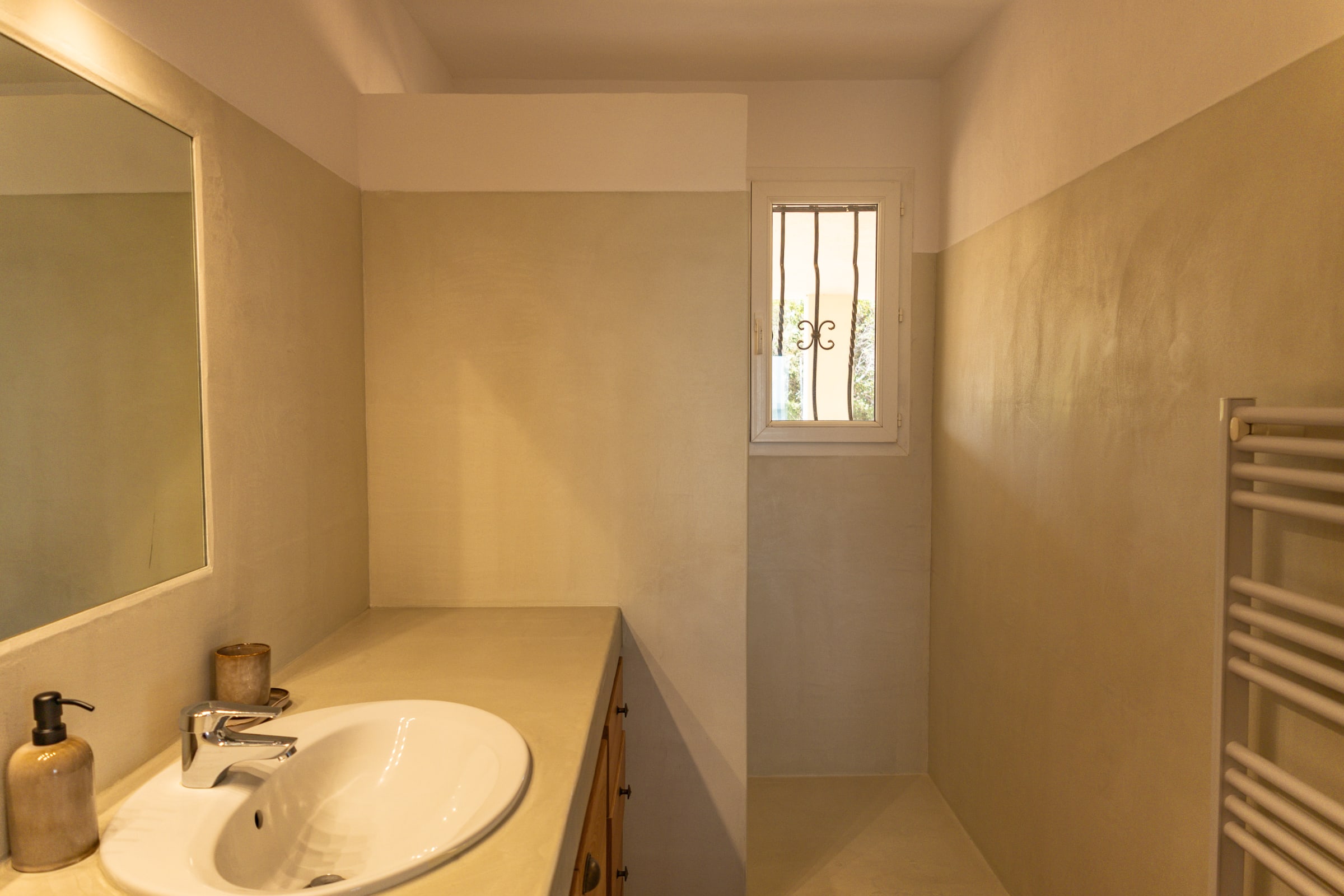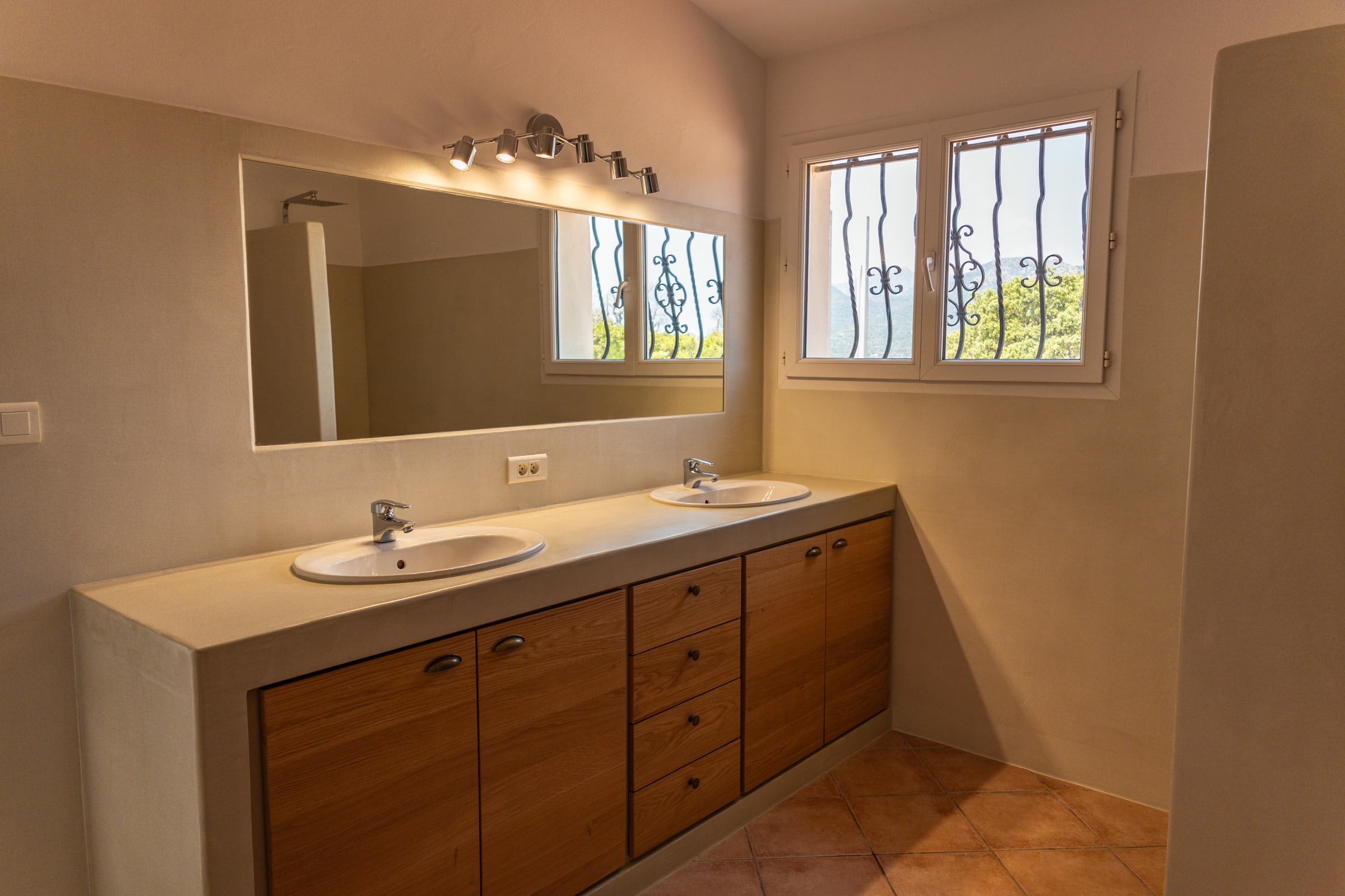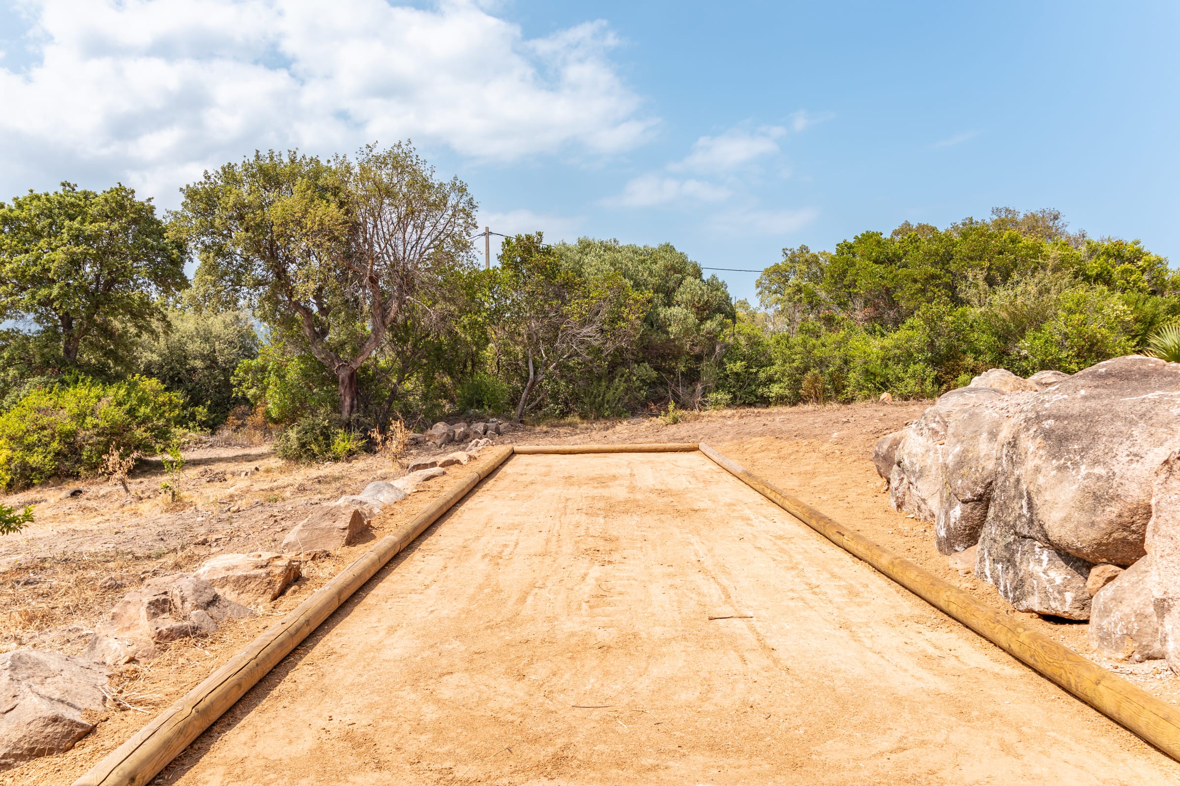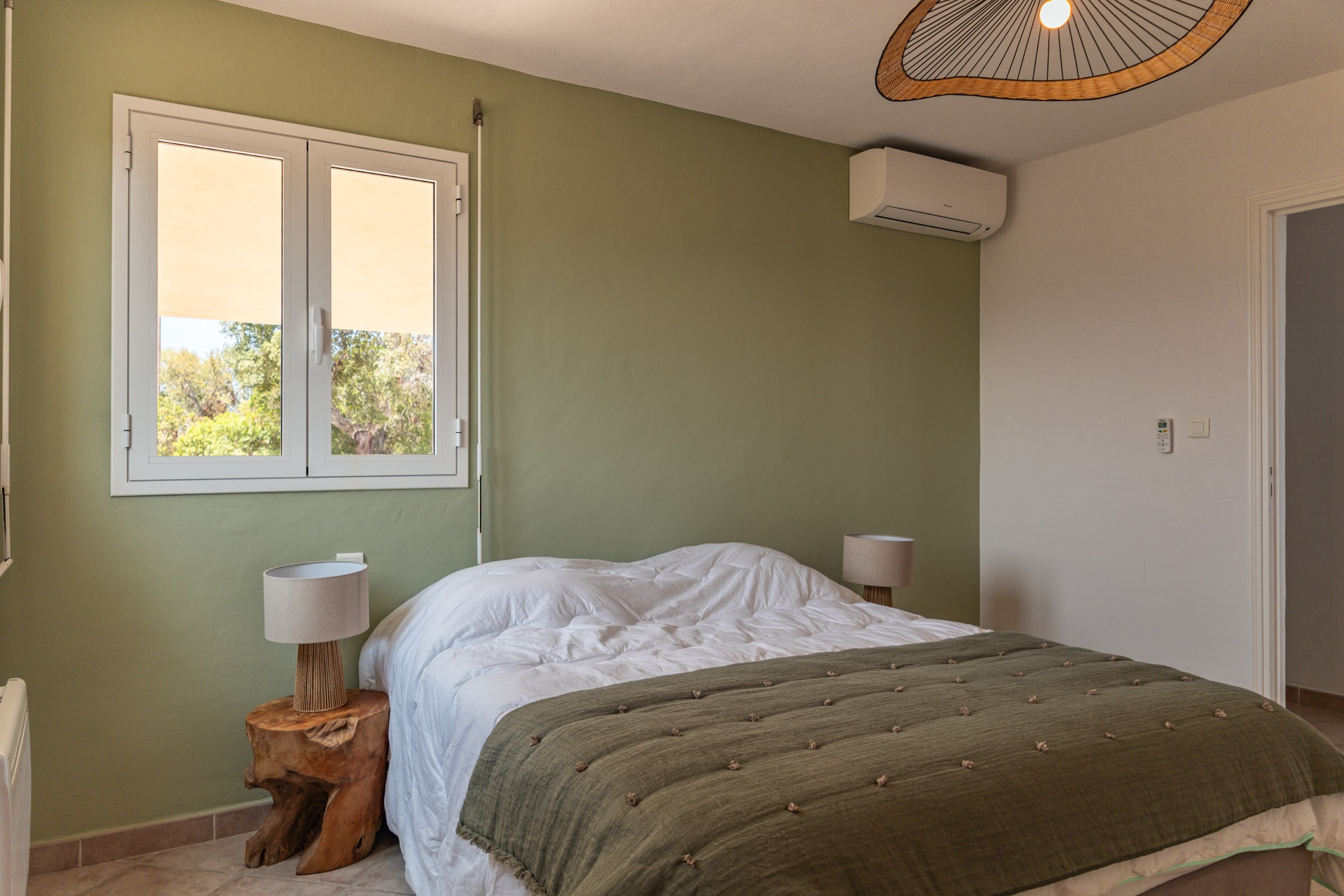 La villa offre une vue imprenable sur la mer et la tour génoise de Pinarello. Les espaces de vie, baignés de lumière, sont tous orientés vers ce panorama exceptionnel.