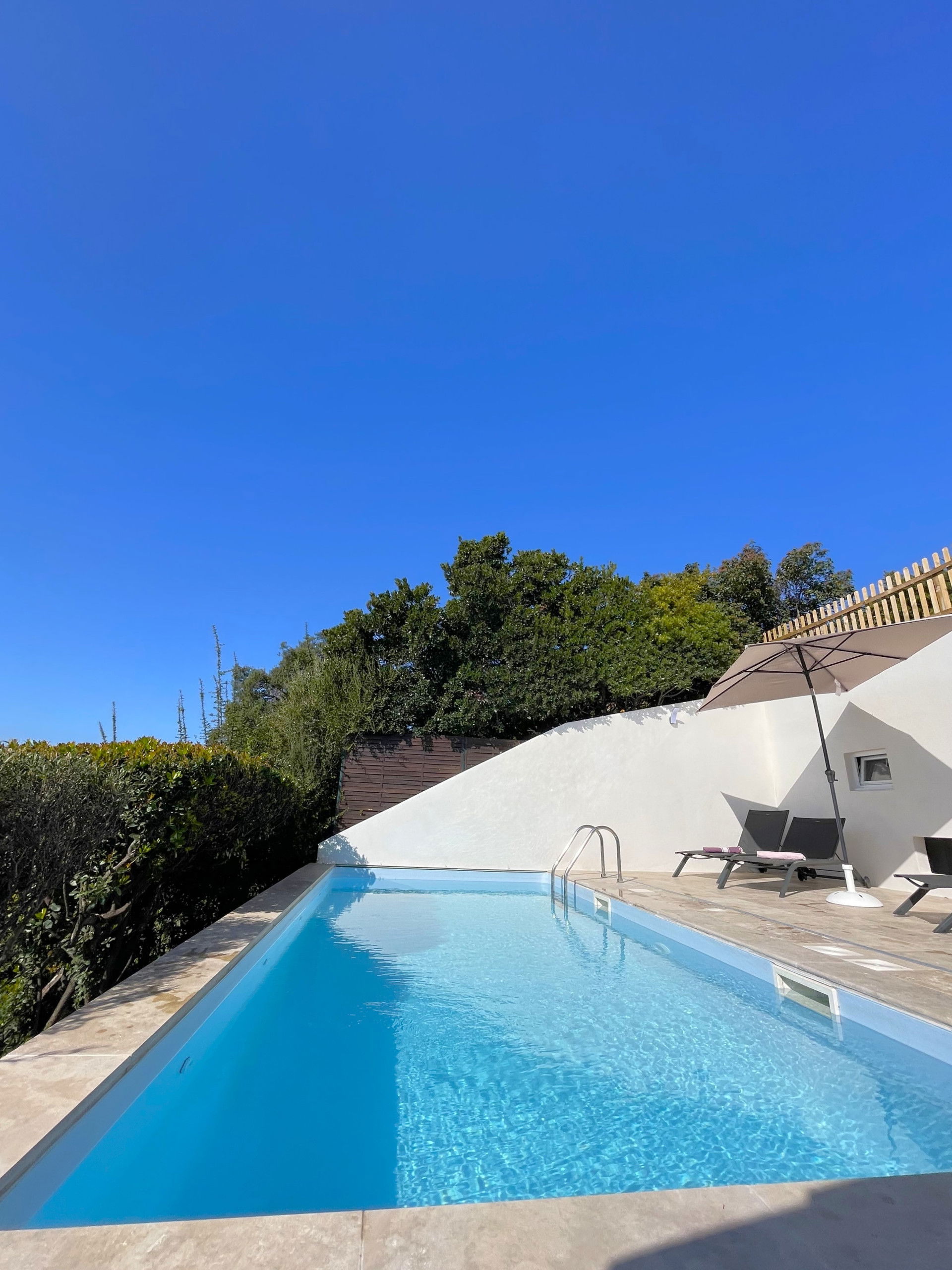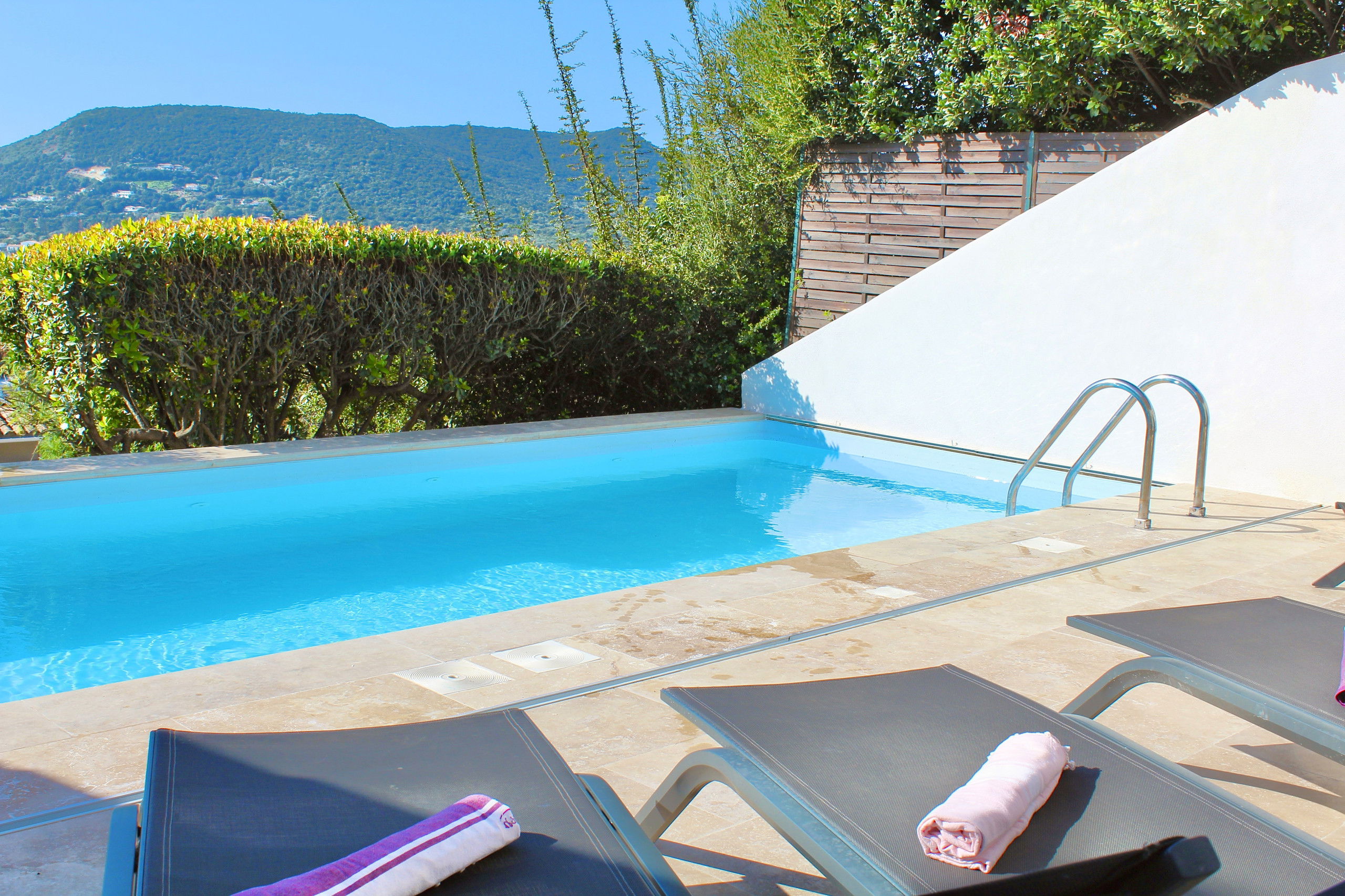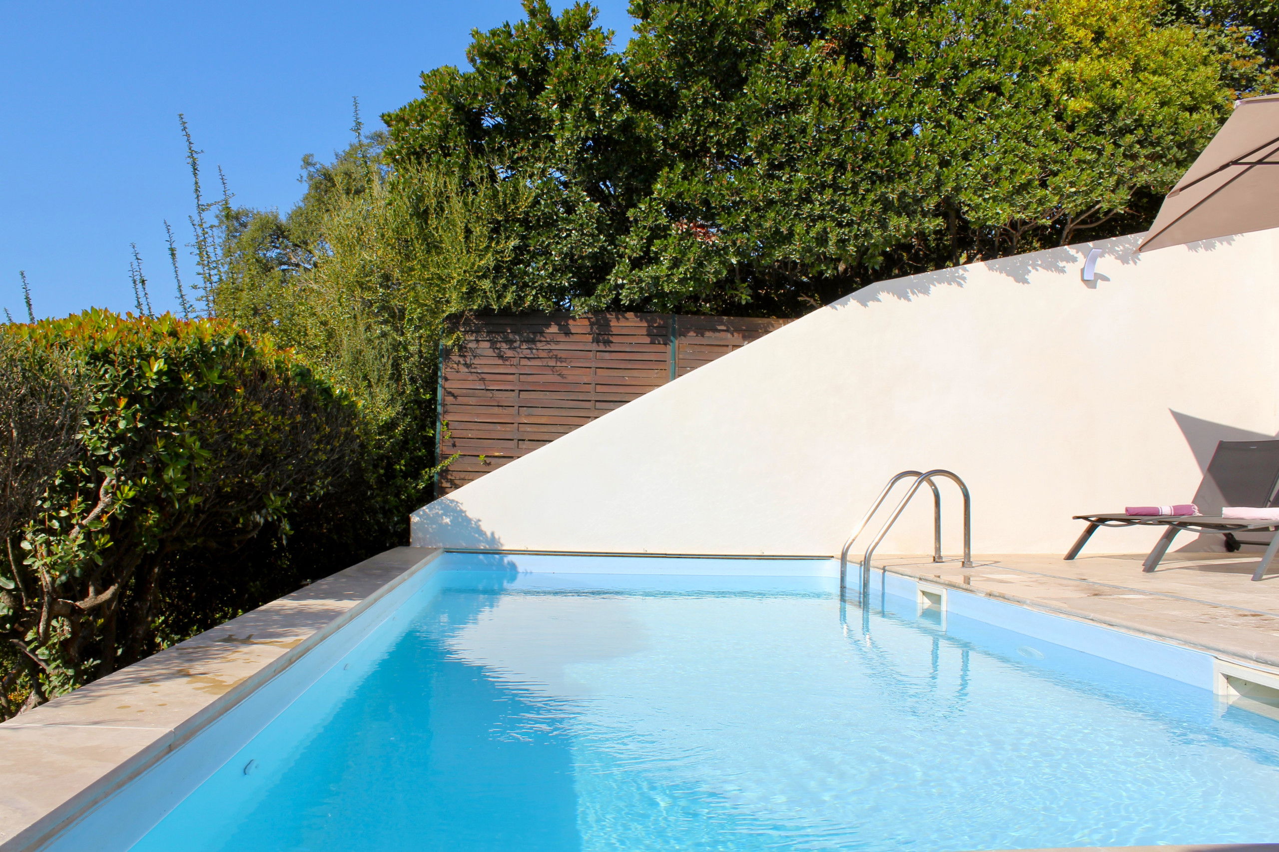 La villa, recemment rénovée, offre une belle piscine chauffée à l'abri des regards et face a la mer.